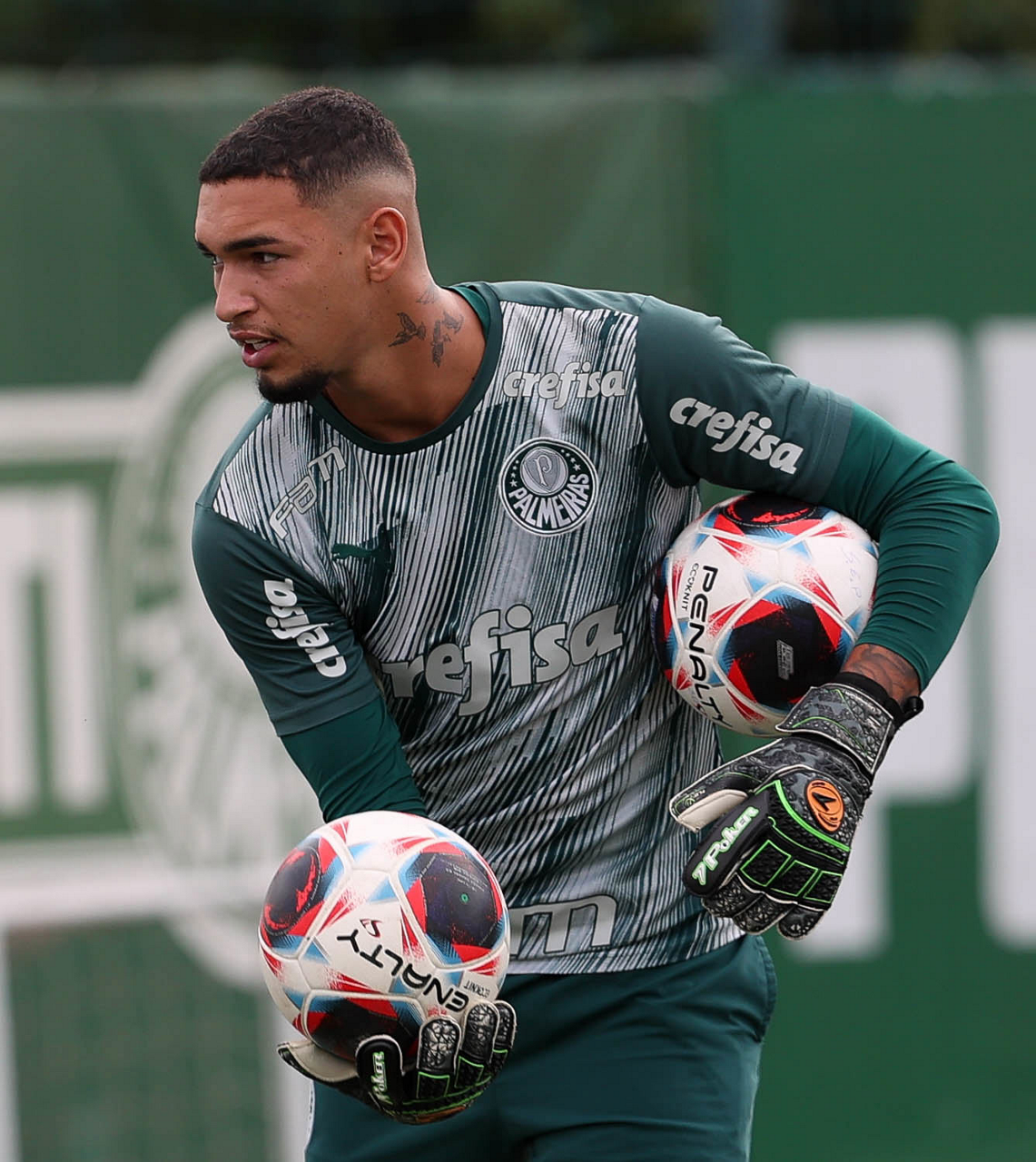 O goleiro Vinicius, da SE Palmeiras, durante treinamento, na Academia de Futebol. (Foto: Cesar Greco/Palmeiras/by Canon)