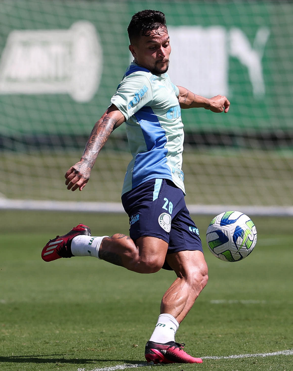 O jogador Joaquín Piquerez, da SE Palmeiras, durante treinamento, na Academia de Futebol. (Foto: Cesar Greco/Palmeiras/by Canon)