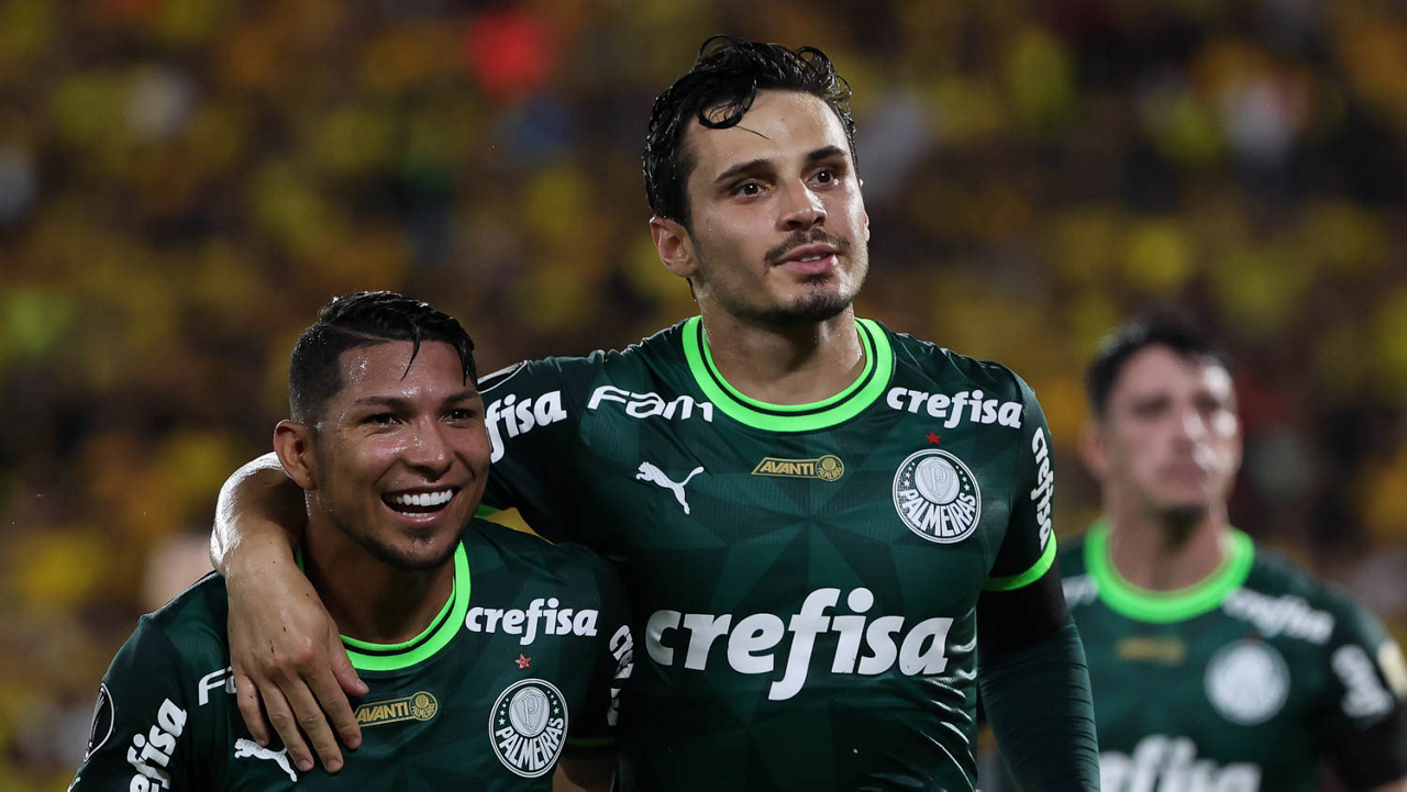 O fisioterapeuta Gustavo Kaschel, o jogador Murilo e o médico Pedro Pontin (E/D), da SE Palmeiras, em jogo contra a equipe do Barcelona SC, durante partida válida pela fase de grupos, da Copa Libertadores, no Estádio Monumental. (Foto: Cesar Greco/Palmeiras/by Canon)