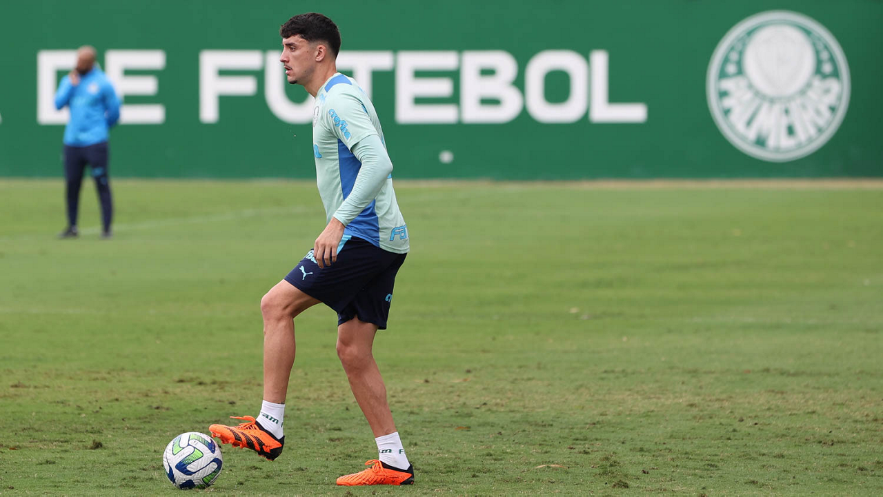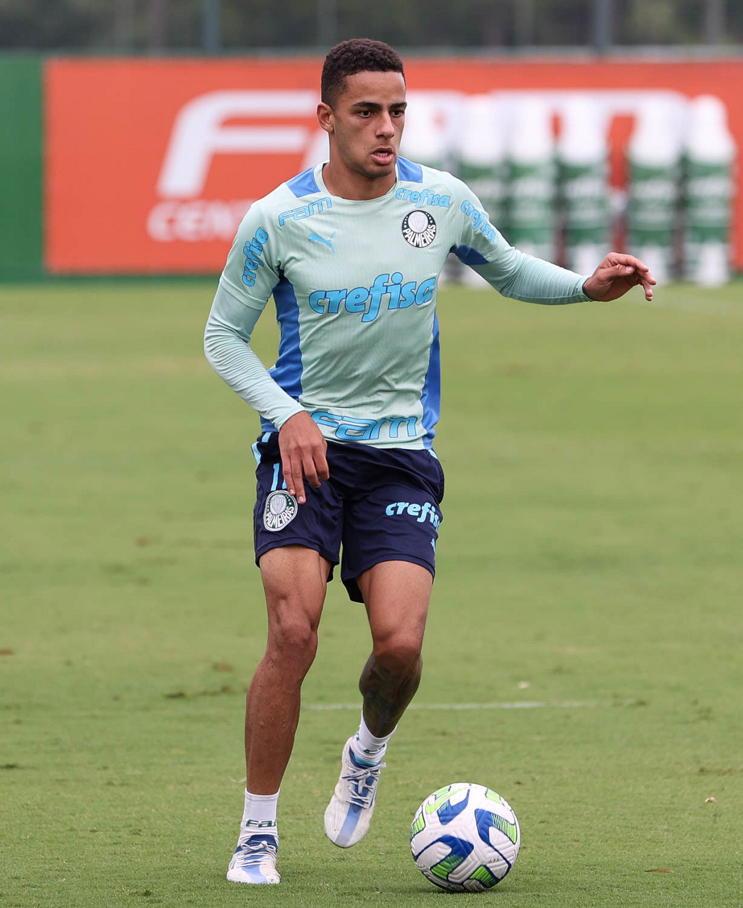 O jogador Gabriel Menino, da SE Palmeiras, durante treinamento, na Academia de Futebol. (Foto: Cesar Greco/Palmeiras/by Canon)