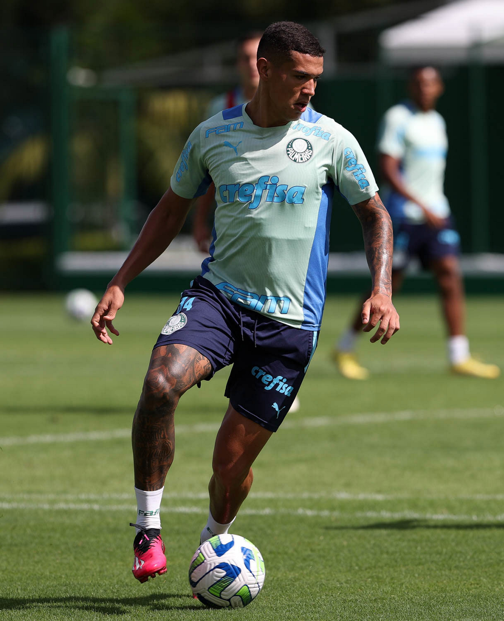 O jogador Richard Ríos, da SE Palmeiras, durante treinamento, na Academia de Futebol. (Foto: Cesar Greco/Palmeiras/by Canon)