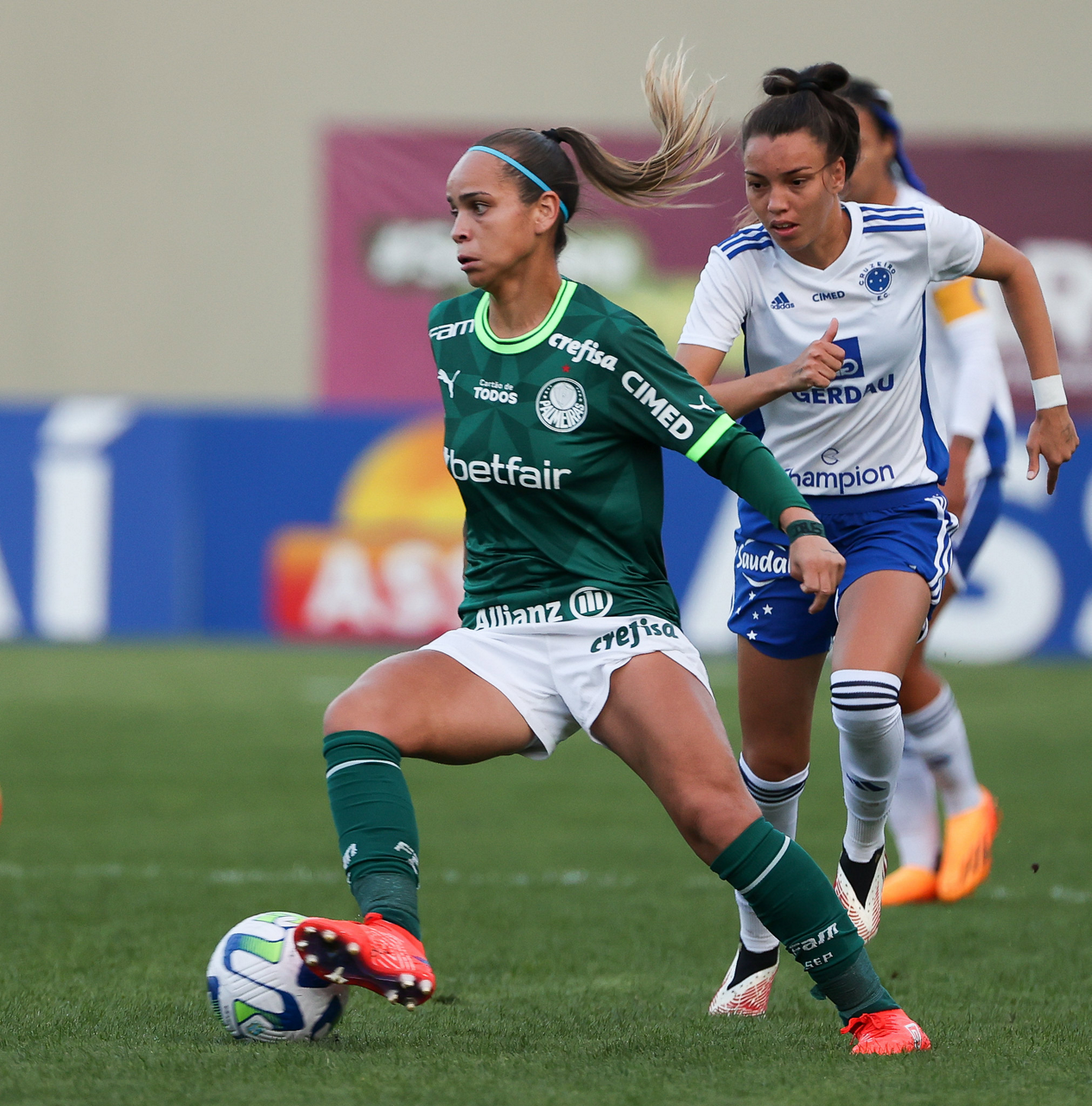 Partida entre Palmeiras e Cruzeiro, válida pela décima primeira rodada do Campeonato Brasileiro Feminino, na Arena Barueri, em Barueri-SP. (Foto: Fabio Menotti/Palmeiras/by Canon)
