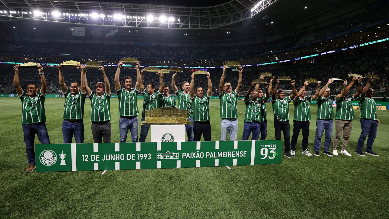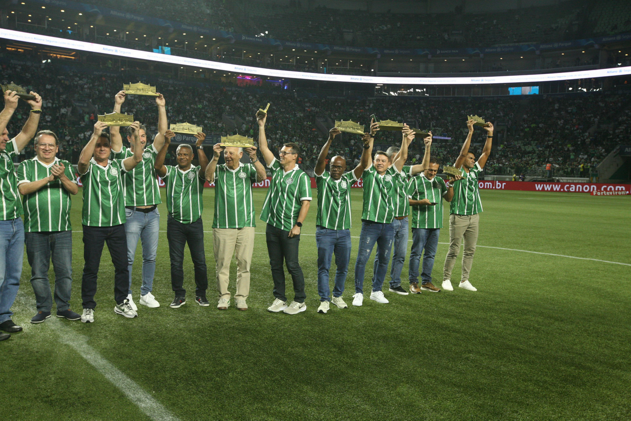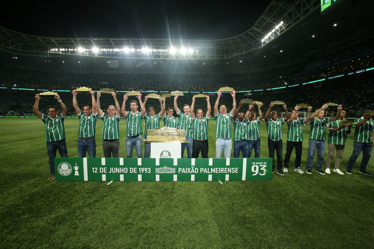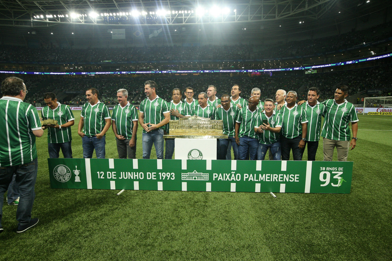 Homenagem aos campeões do Campeonato Paulista de 1993 no intervalo do jogo contra a equipe do Coritiba FC, durante partida válida pela nona rodada do Campeonato Brasileiro no Allianz Parque. (Foto: Mauricio Rito/Palmeiras/by Canon)