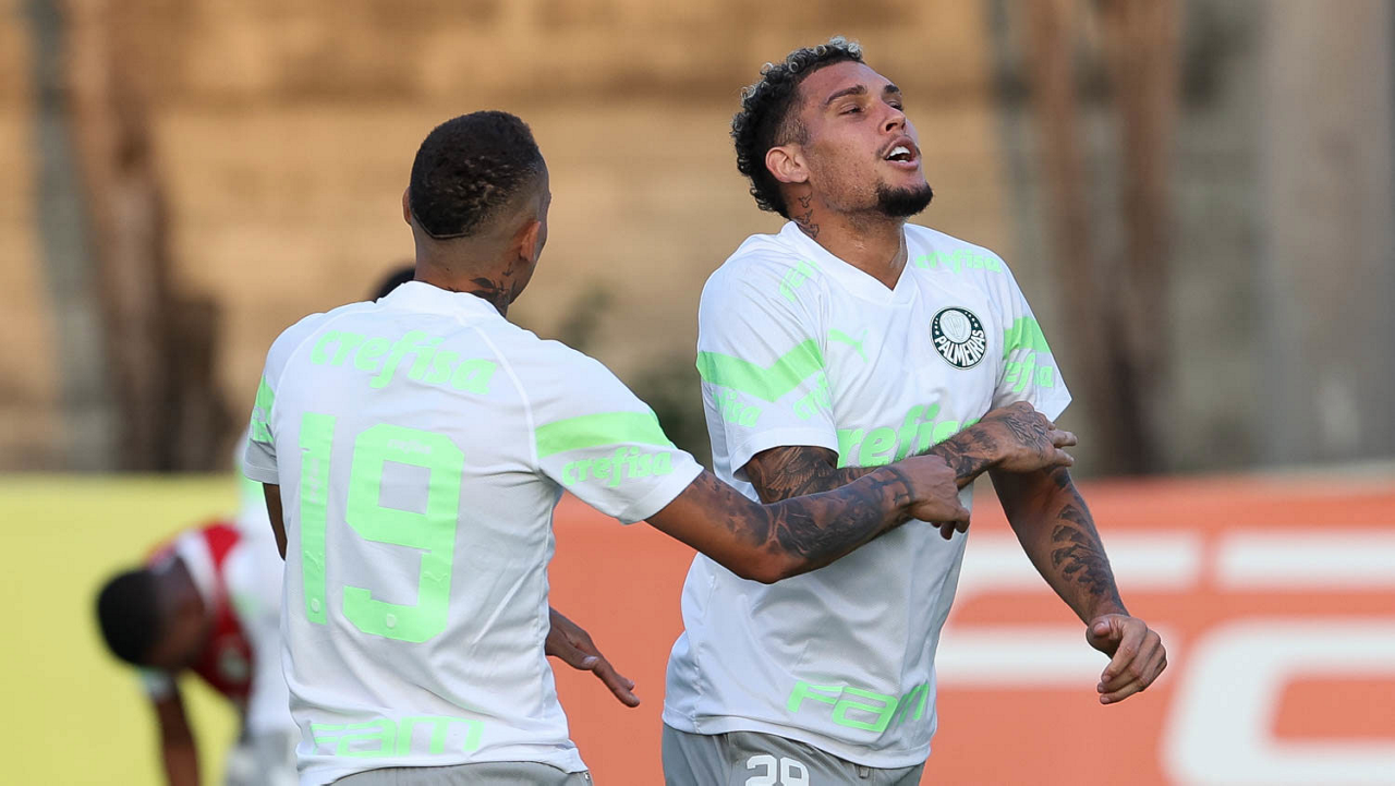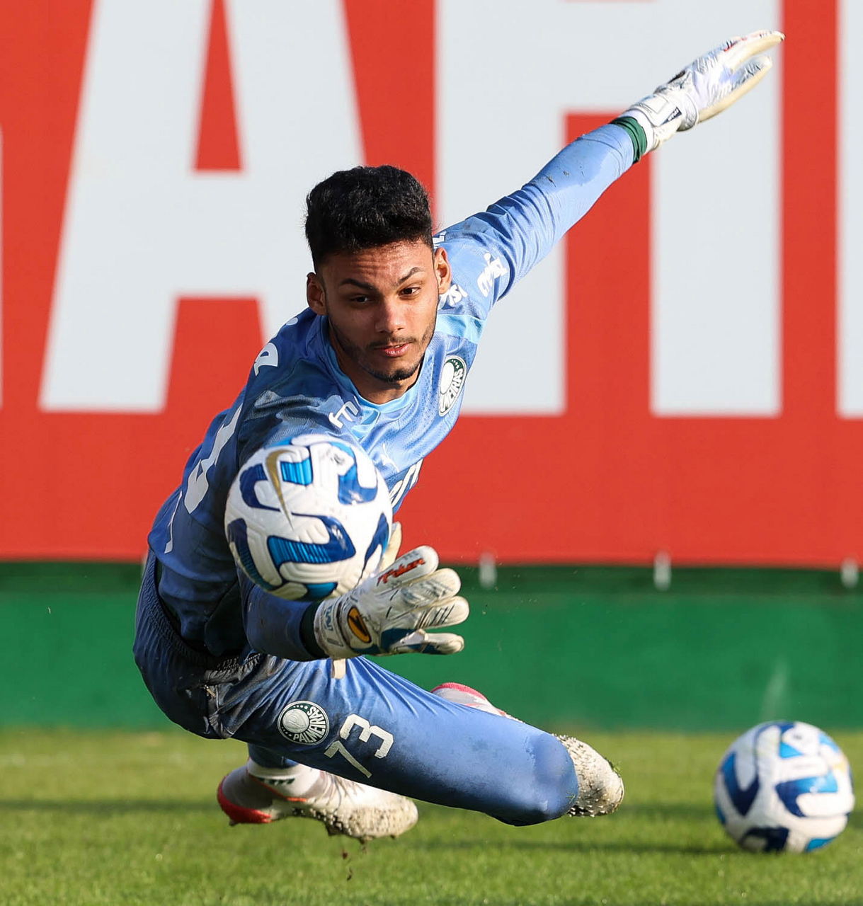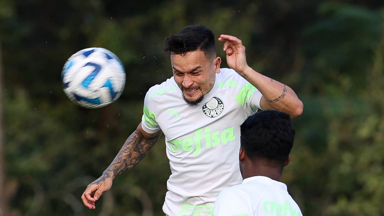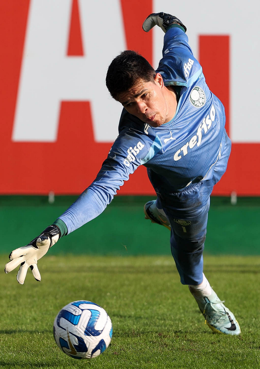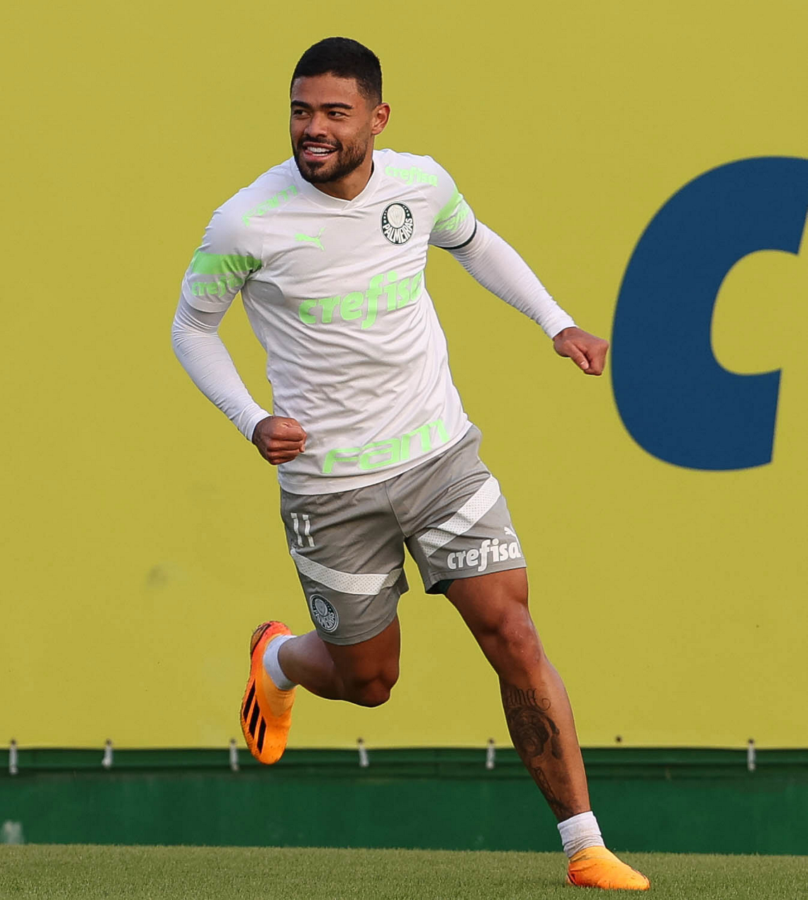 Os jogadores Raphael Veiga, Rony, Zé Rafael, Flaco López e Artur (E/D em pé) e Jhonatan, Kevin, Bruno Tabata, Breno Lopes, Dudu, Giovani, Vinicius, Endrick e Rafael Navarro (E/D agachados), da SE Palmeiras, durante treinamento, na Academia de Futebol. (Foto: Cesar Greco/Palmeiras/by Canon)