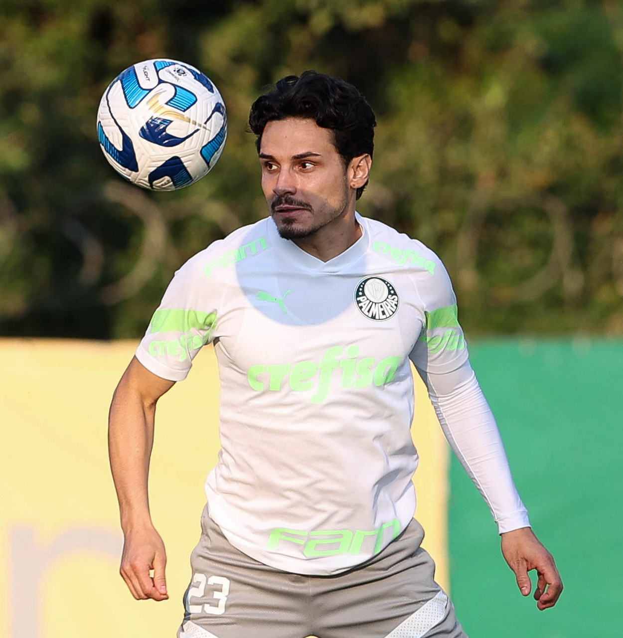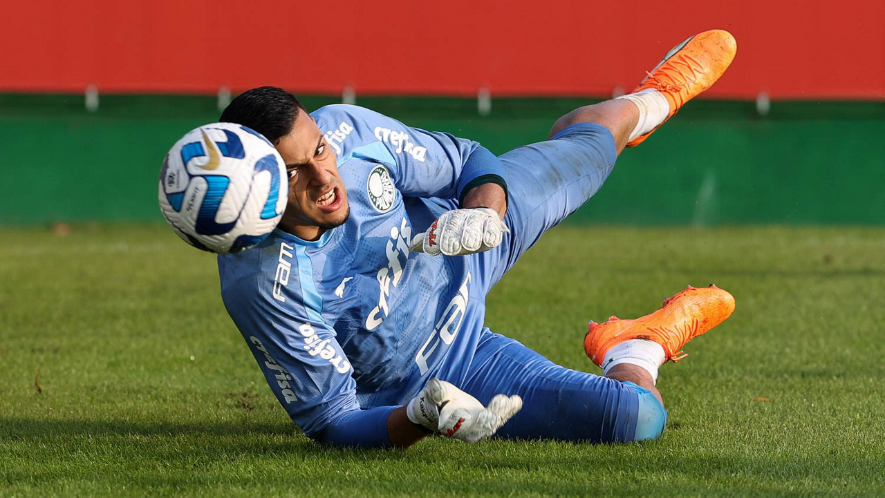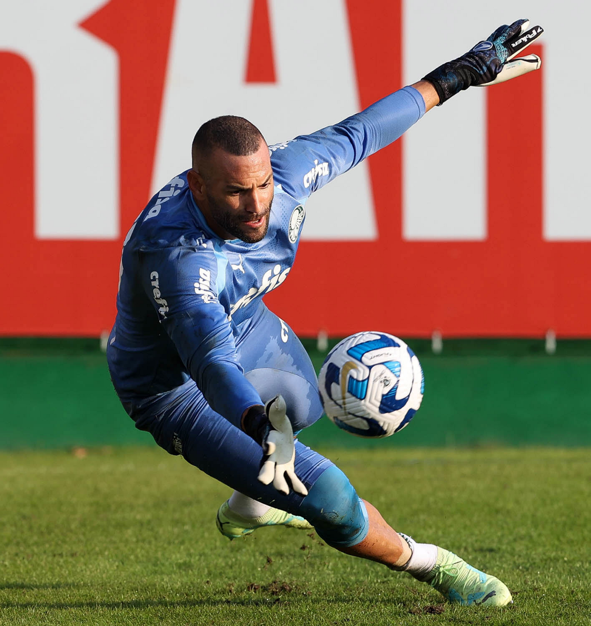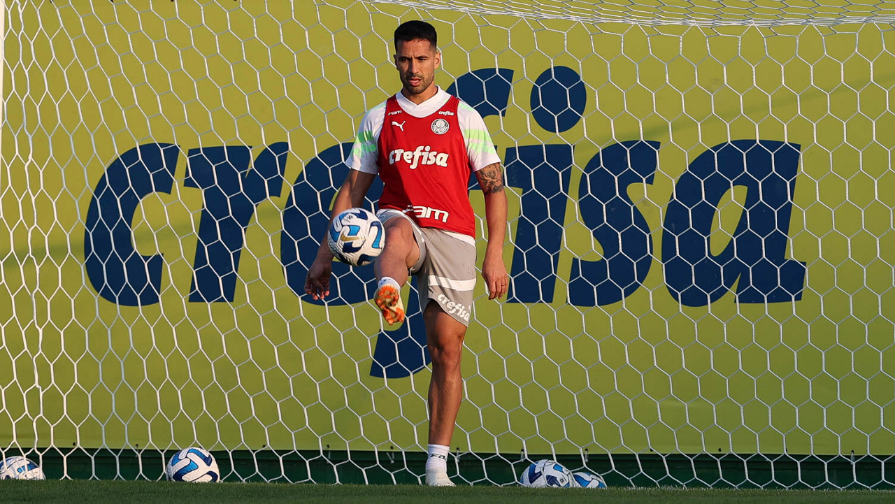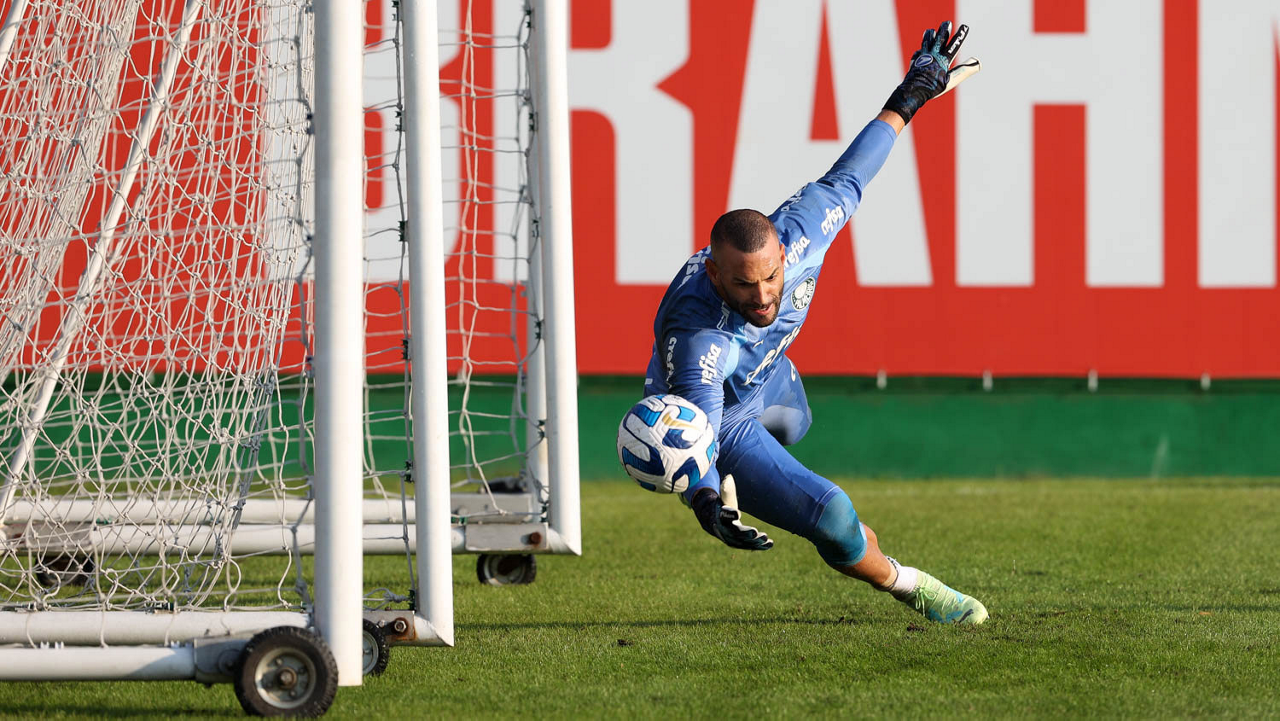 Os jogadores Raphael Veiga, Rony, Zé Rafael, Flaco López e Artur (E/D em pé) e Jhonatan, Kevin, Bruno Tabata, Breno Lopes, Dudu, Giovani, Vinicius, Endrick e Rafael Navarro (E/D agachados), da SE Palmeiras, durante treinamento, na Academia de Futebol. (Foto: Cesar Greco/Palmeiras/by Canon)