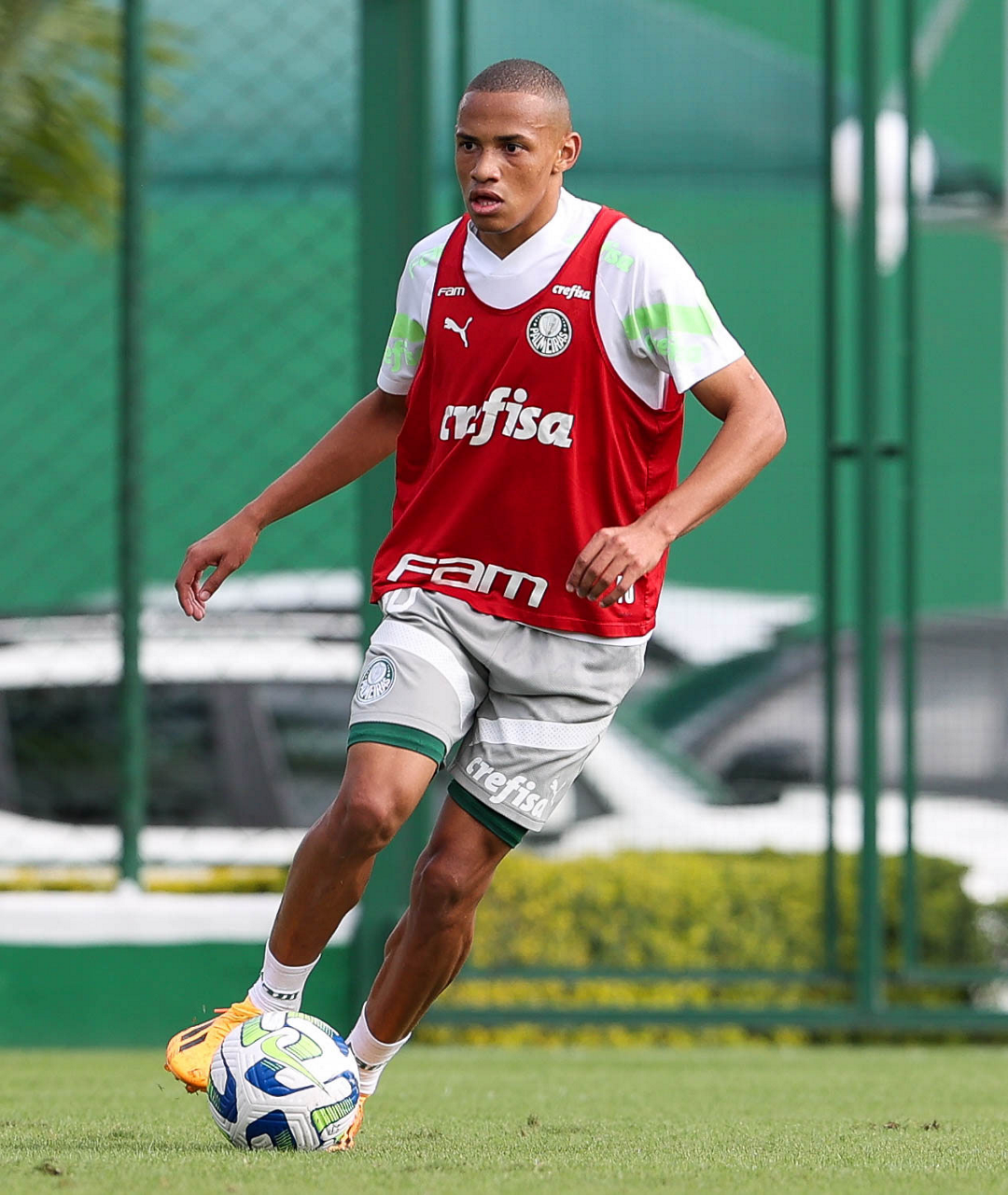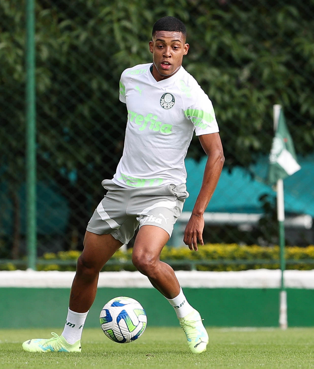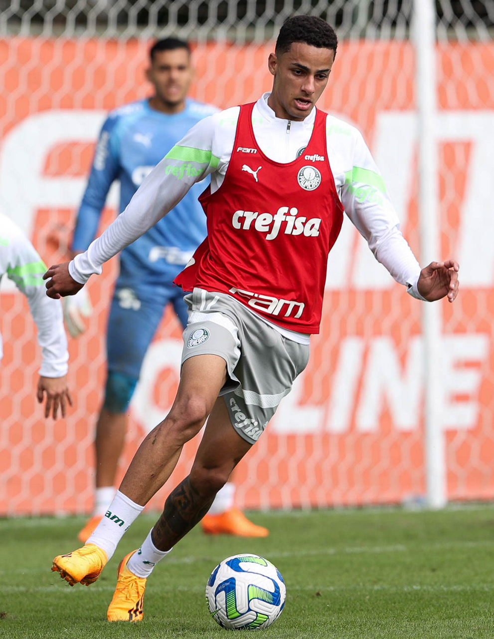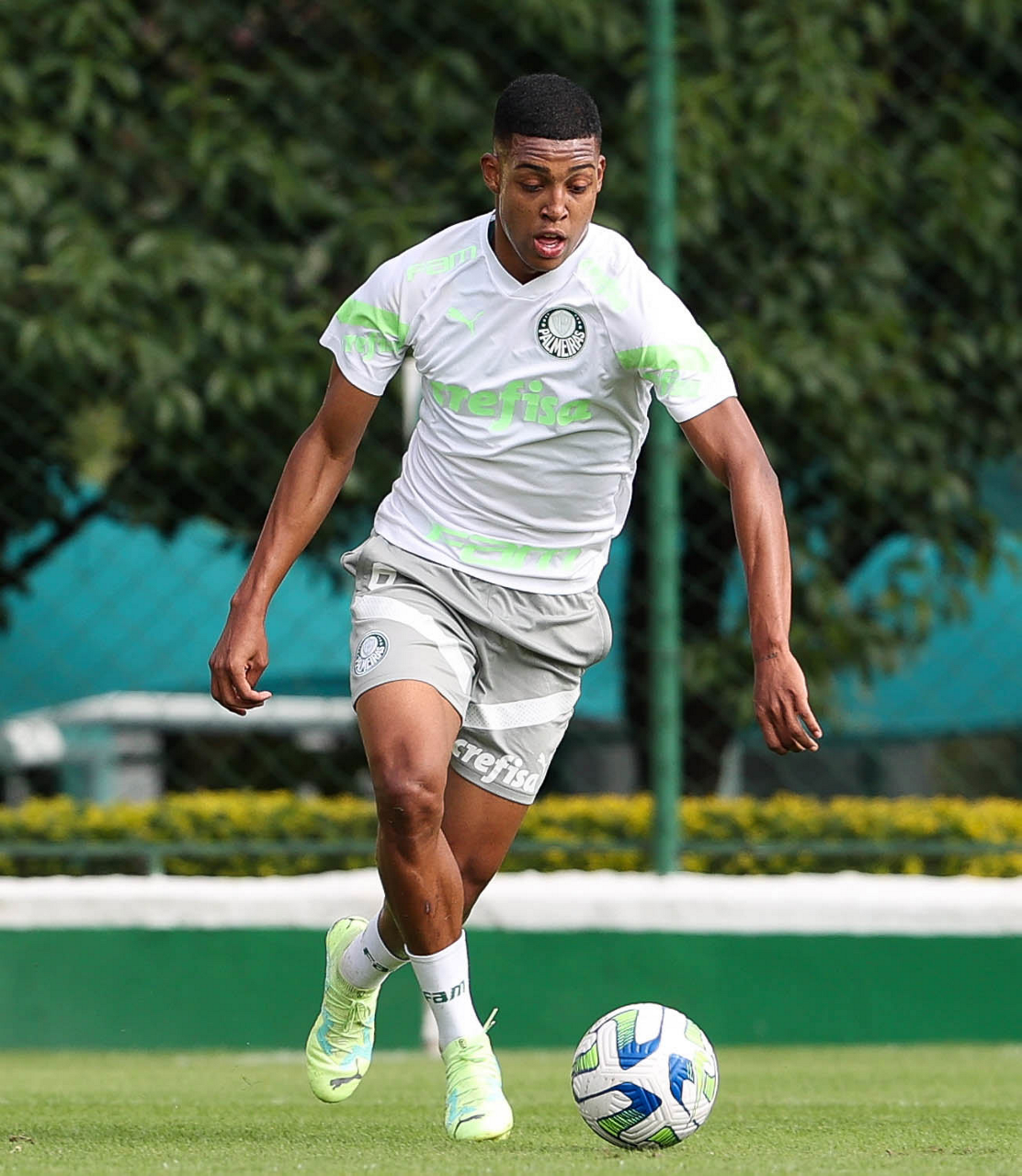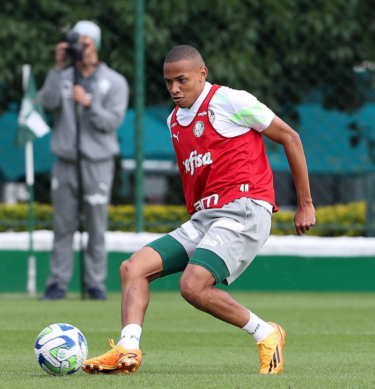 O jogador Gabriel Menino, da SE Palmeiras, durante treinamento, na Academia de Futebol. (Foto: Cesar Greco/Palmeiras/by Canon)