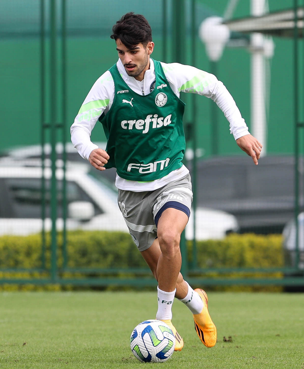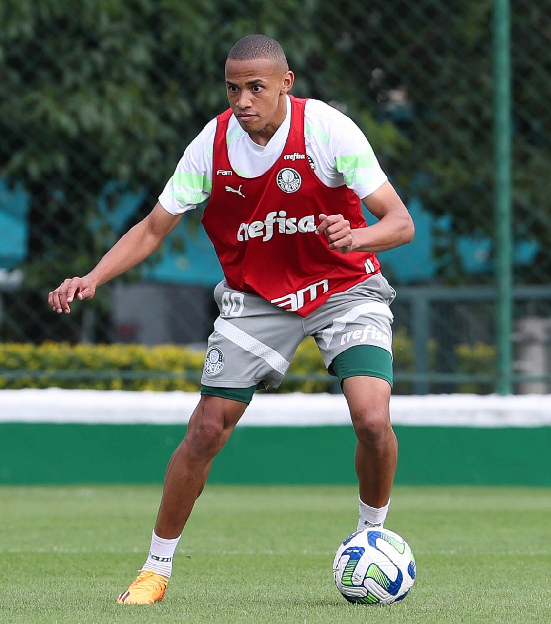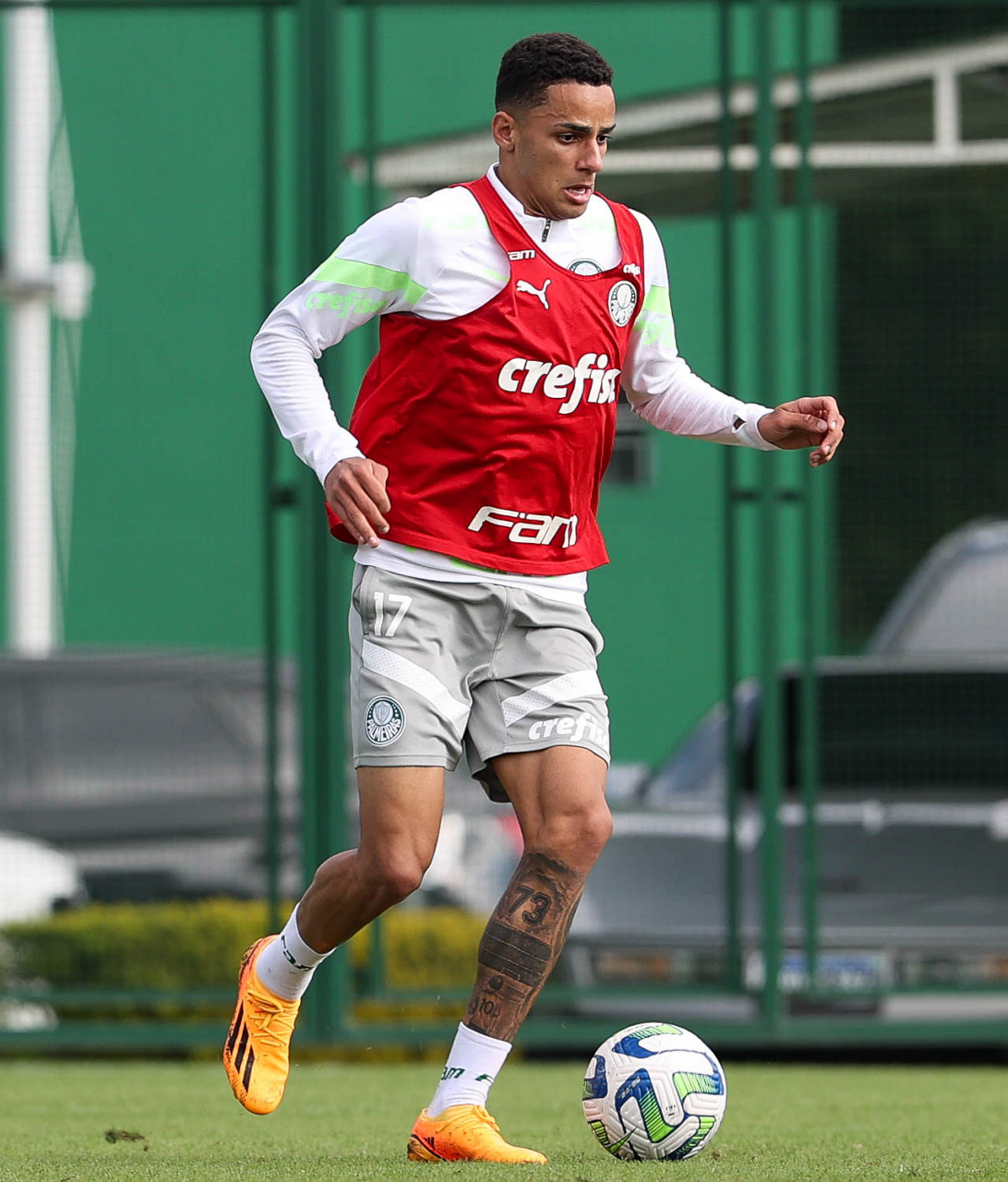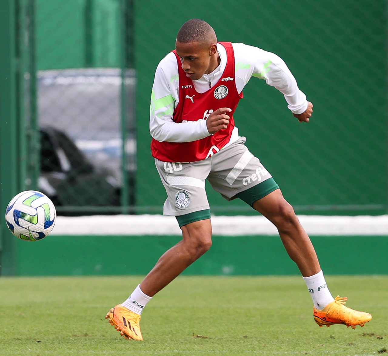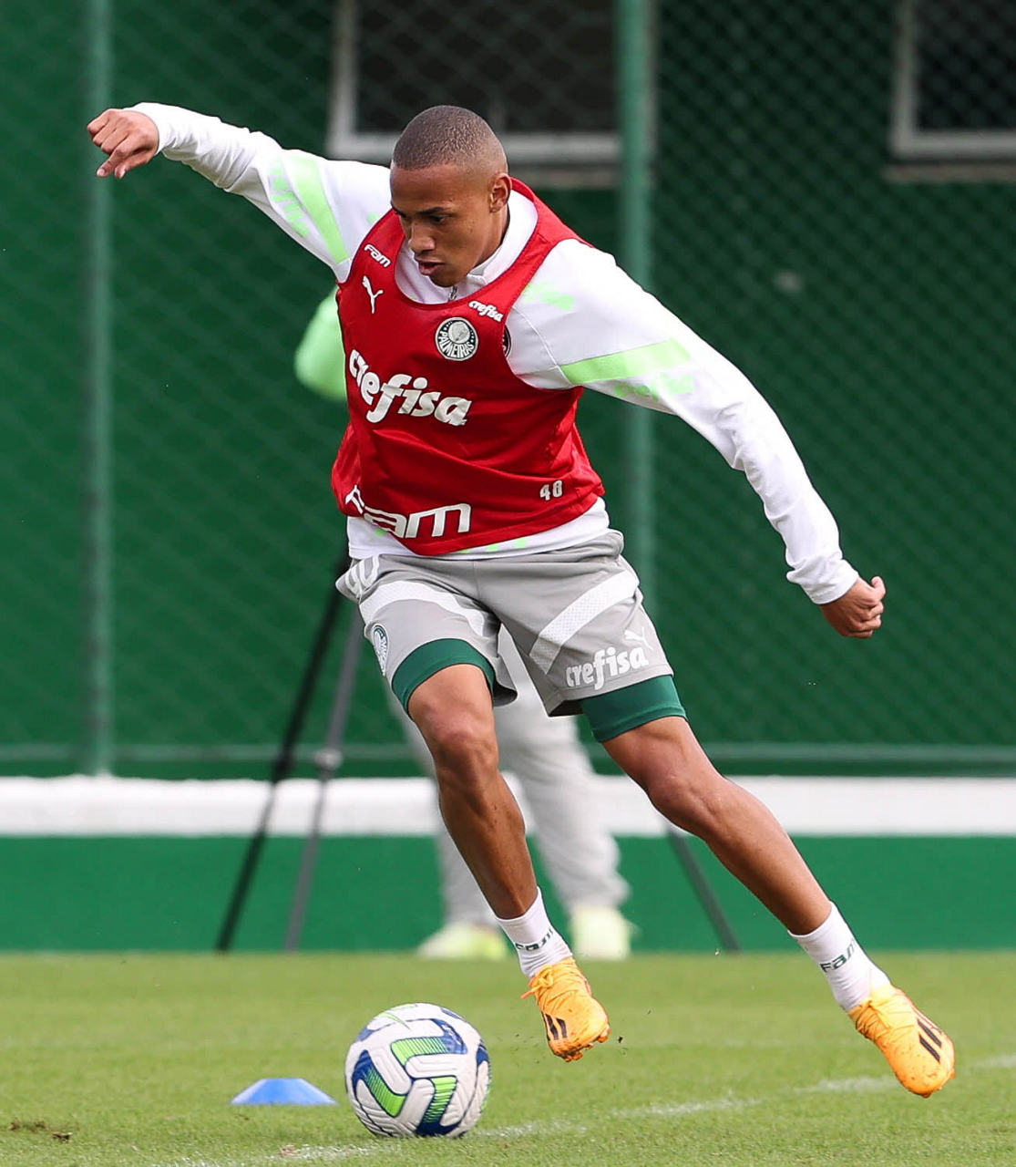 O jogador Gabriel Menino, da SE Palmeiras, durante treinamento, na Academia de Futebol. (Foto: Cesar Greco/Palmeiras/by Canon)