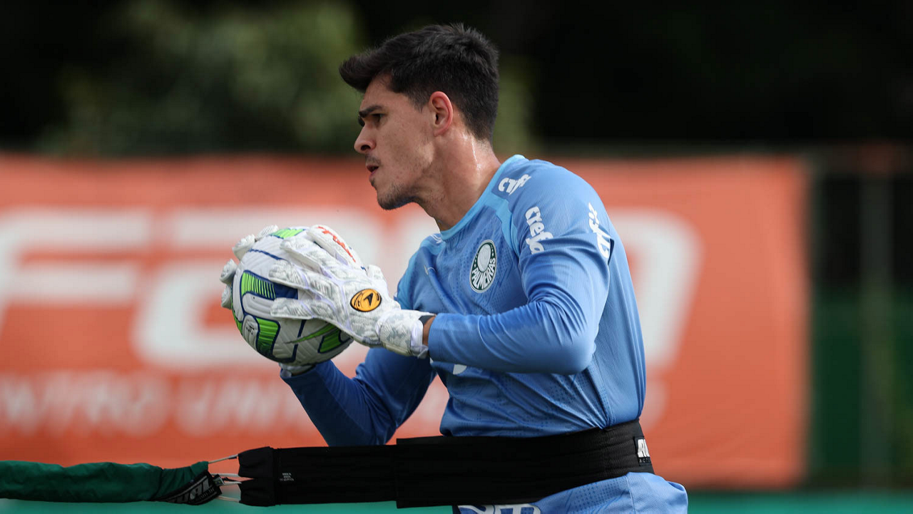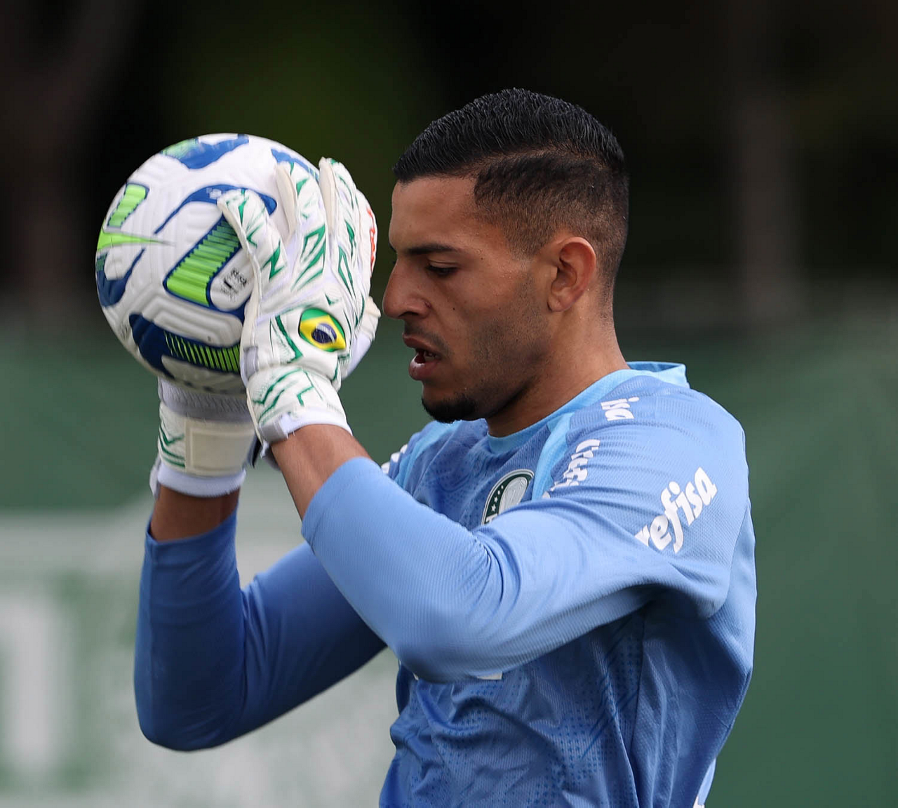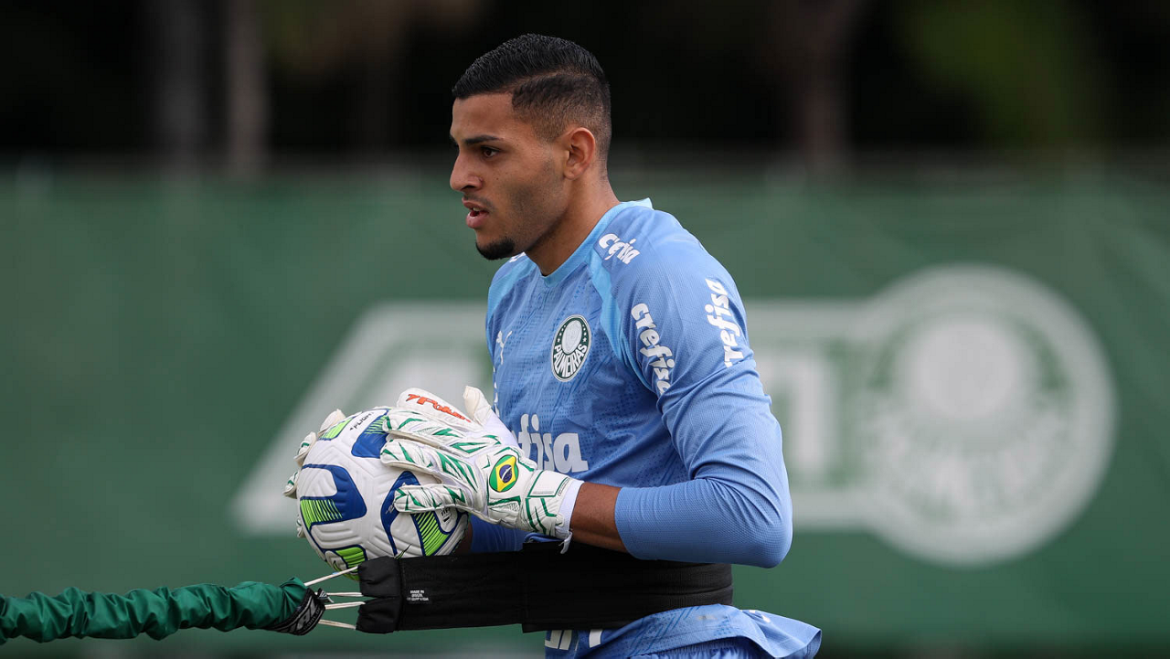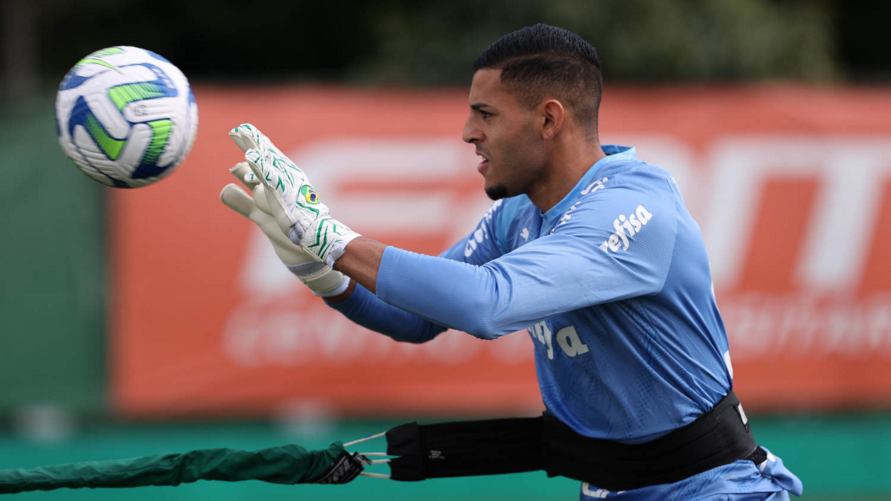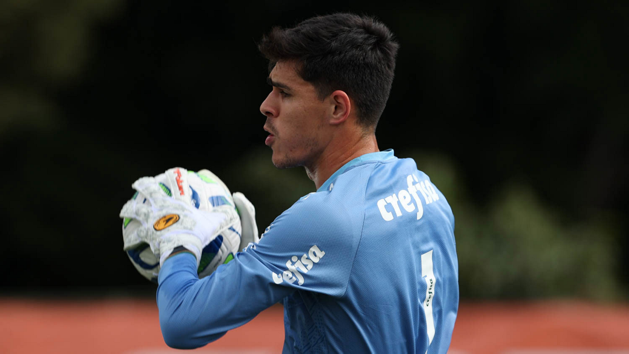 O goleiro Vinicius, da SE Palmeiras, durante treinamento, na Academia de Futebol. (Foto: Cesar Greco/Palmeiras/by Canon)