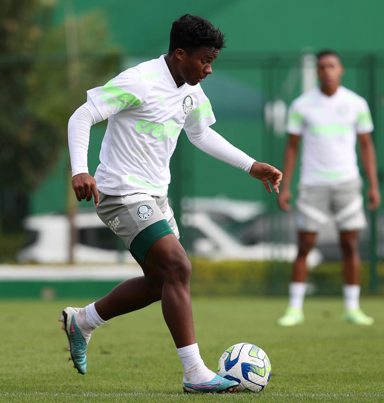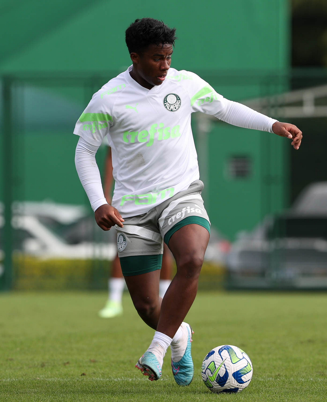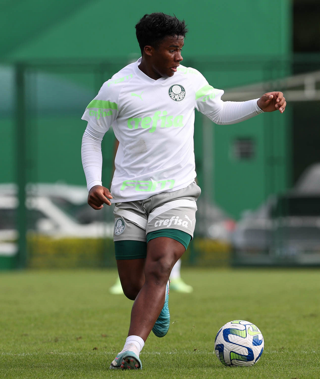 O jogador Endrick, da SE Palmeiras, durante treinamento, na Academia de Futebol. (Foto: Cesar Greco/Palmeiras/by Canon)