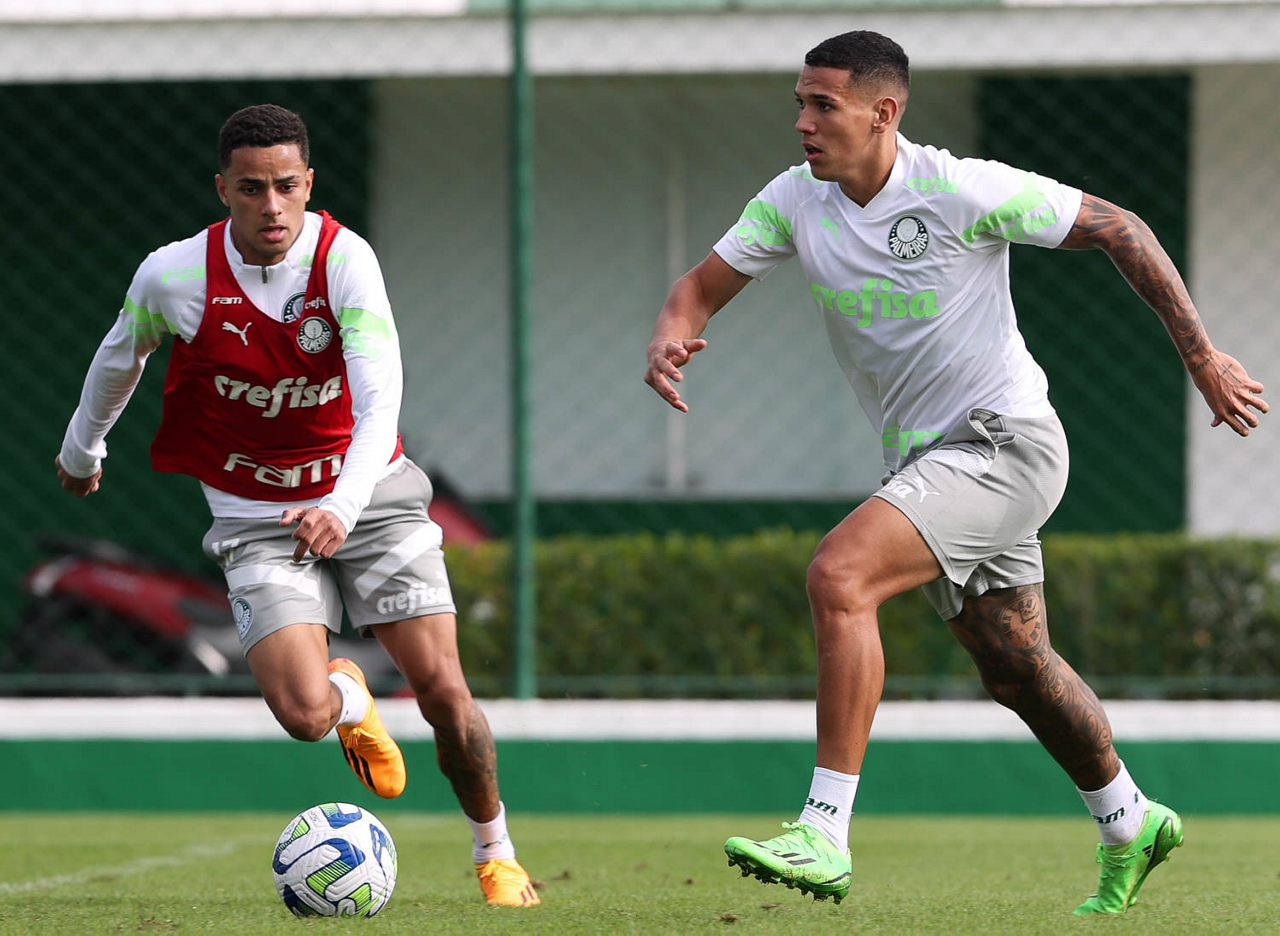 Os jogadores Murilo e Breno Lopes (D), da SE Palmeiras, durante treinamento, na Academia de Futebol. (Foto: Cesar Greco/Palmeiras/by Canon)