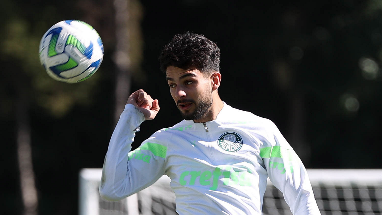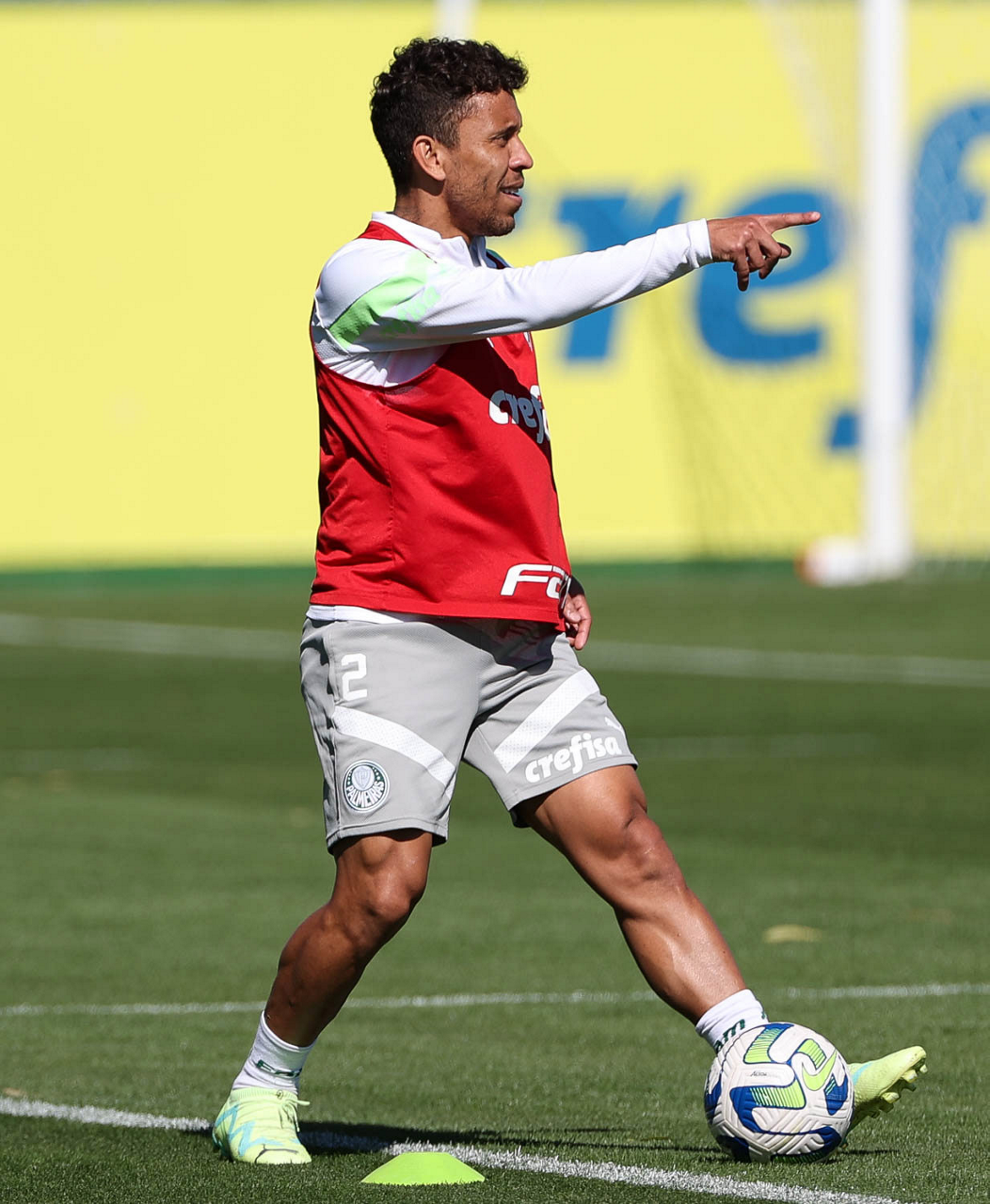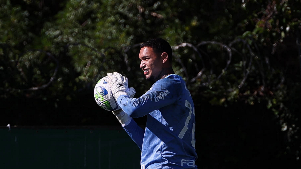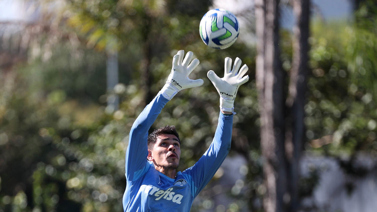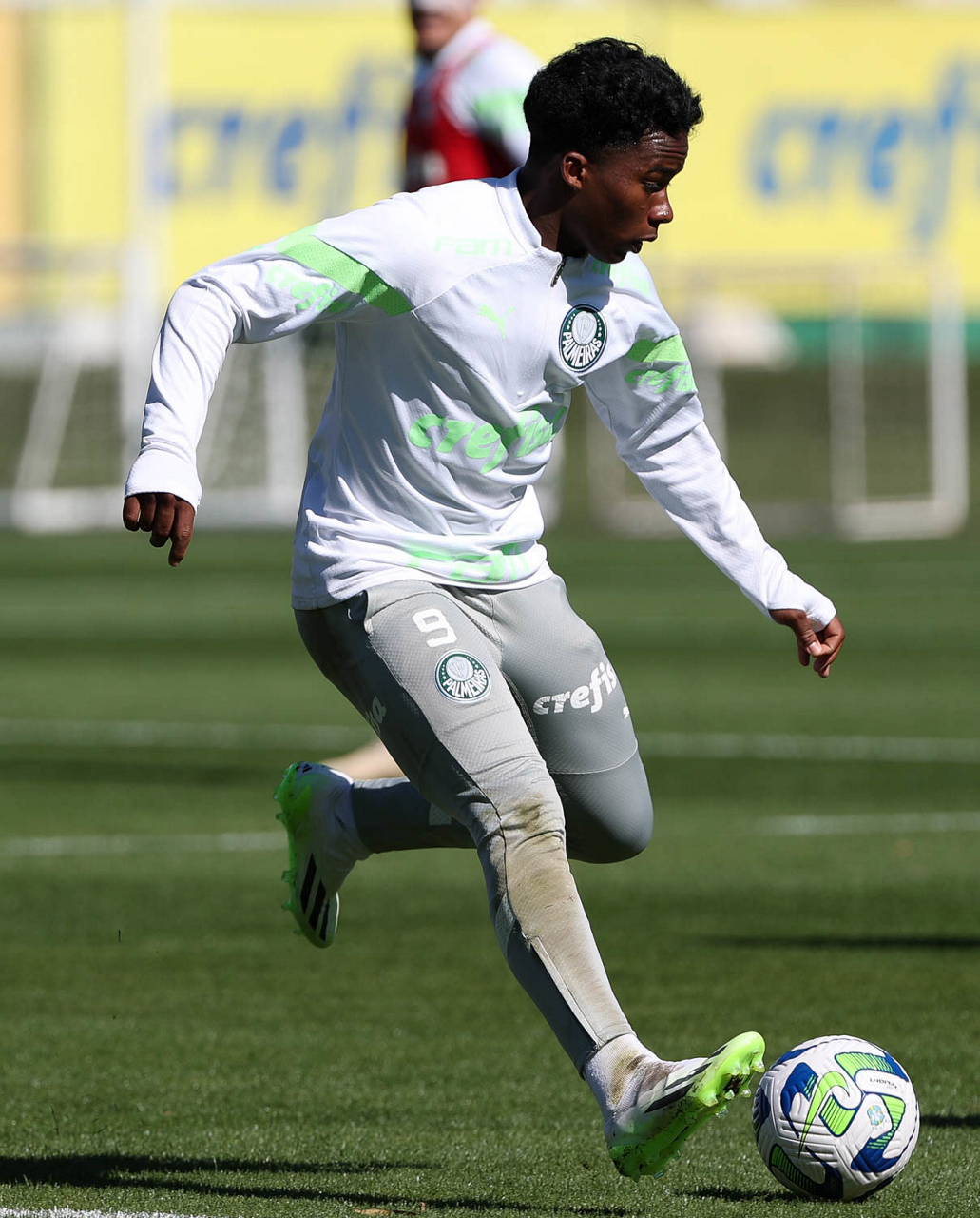 Os jogadores Naves, Garcia, Luan, Fabinho, Joaquín Piquerez, Marcos Rocha e Murilo (E/D em pé) e Vanderlan, Mayke, Gabriel Menino, Gustavo Gómez e Marcelo Lomba (E/D agachados), da SE Palmeiras, durante treinamento, na Academia de Futebol. (Foto: Cesar Greco/Palmeiras/by Canon)