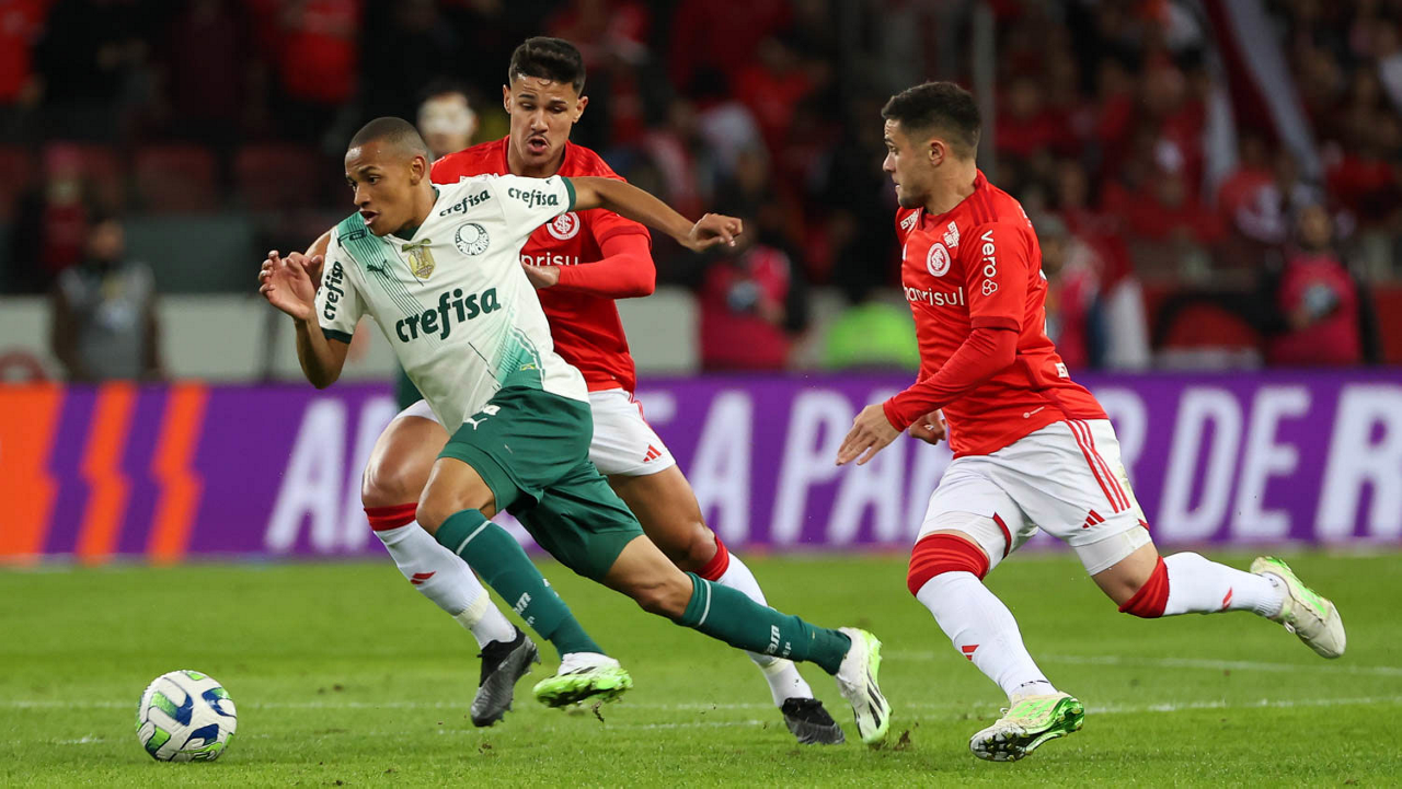 O técnico Abel Ferreira e o preparador físico João Martins (D), da SE Palmeiras, em jogo contra a equipe do SC Internacional, durante partida válida pela déciima quinta rodada, do Campeonato Brasileiro, Série A, no Beira-Rio. (Foto: Cesar Greco/Palmeiras/by Canon)
