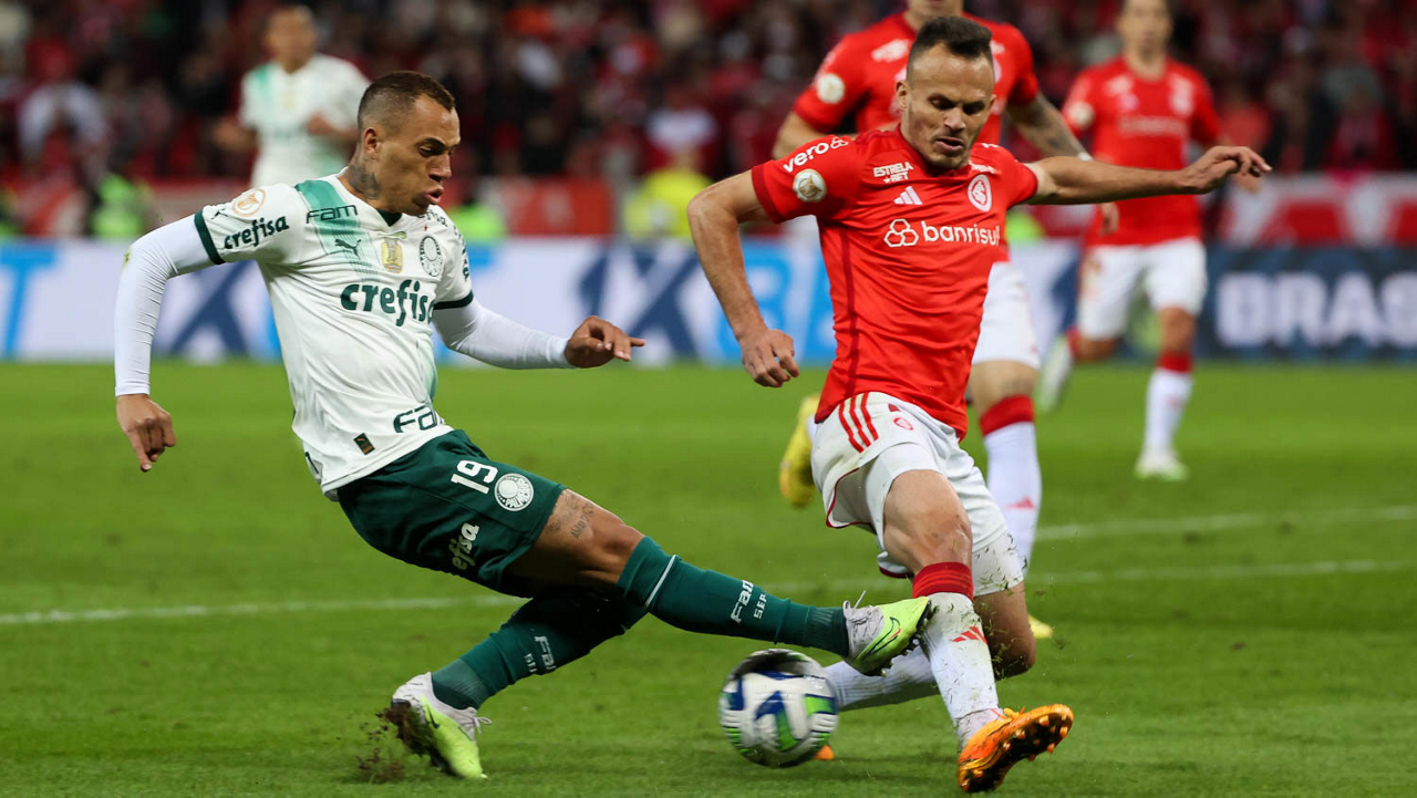 O técnico Abel Ferreira e o preparador físico João Martins (D), da SE Palmeiras, em jogo contra a equipe do SC Internacional, durante partida válida pela déciima quinta rodada, do Campeonato Brasileiro, Série A, no Beira-Rio. (Foto: Cesar Greco/Palmeiras/by Canon)