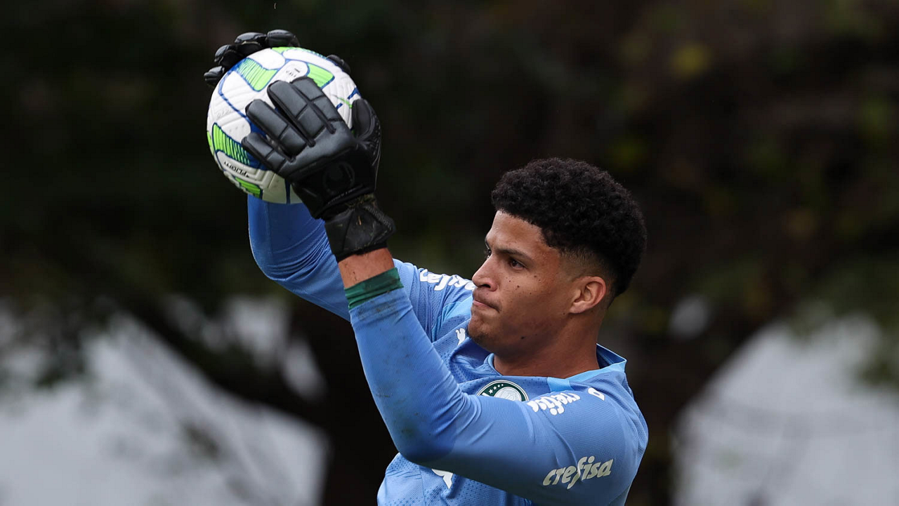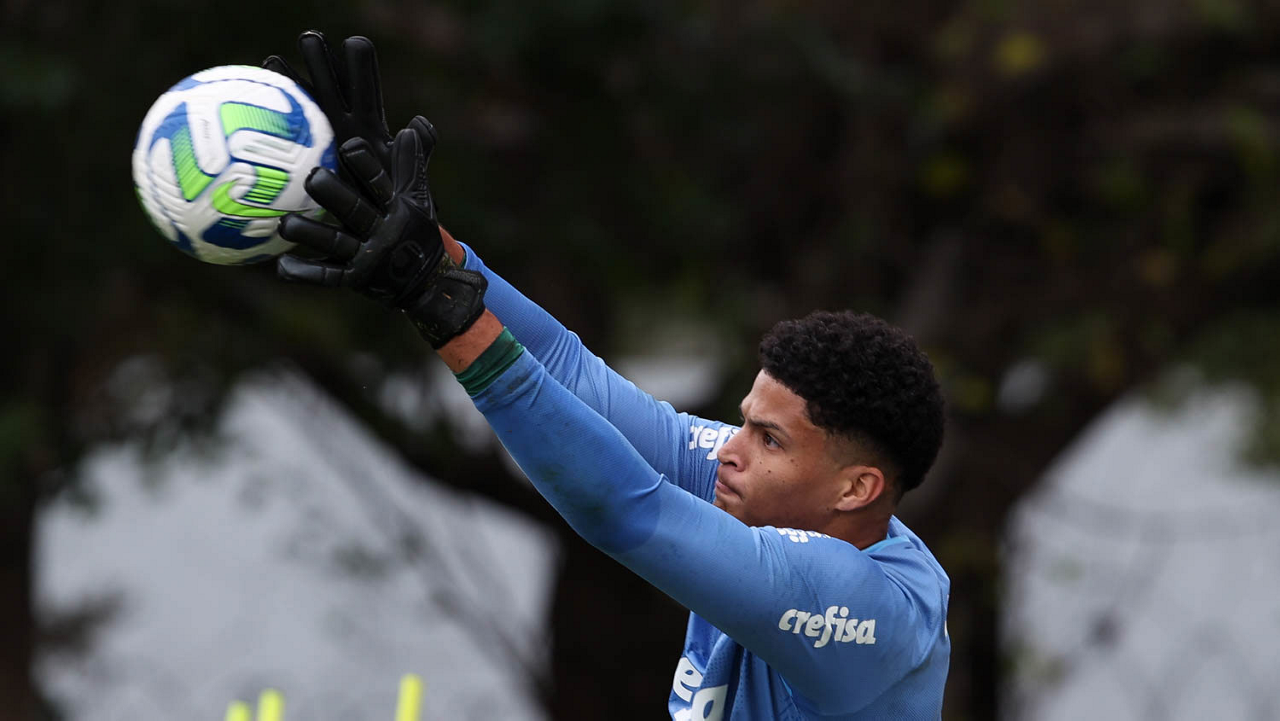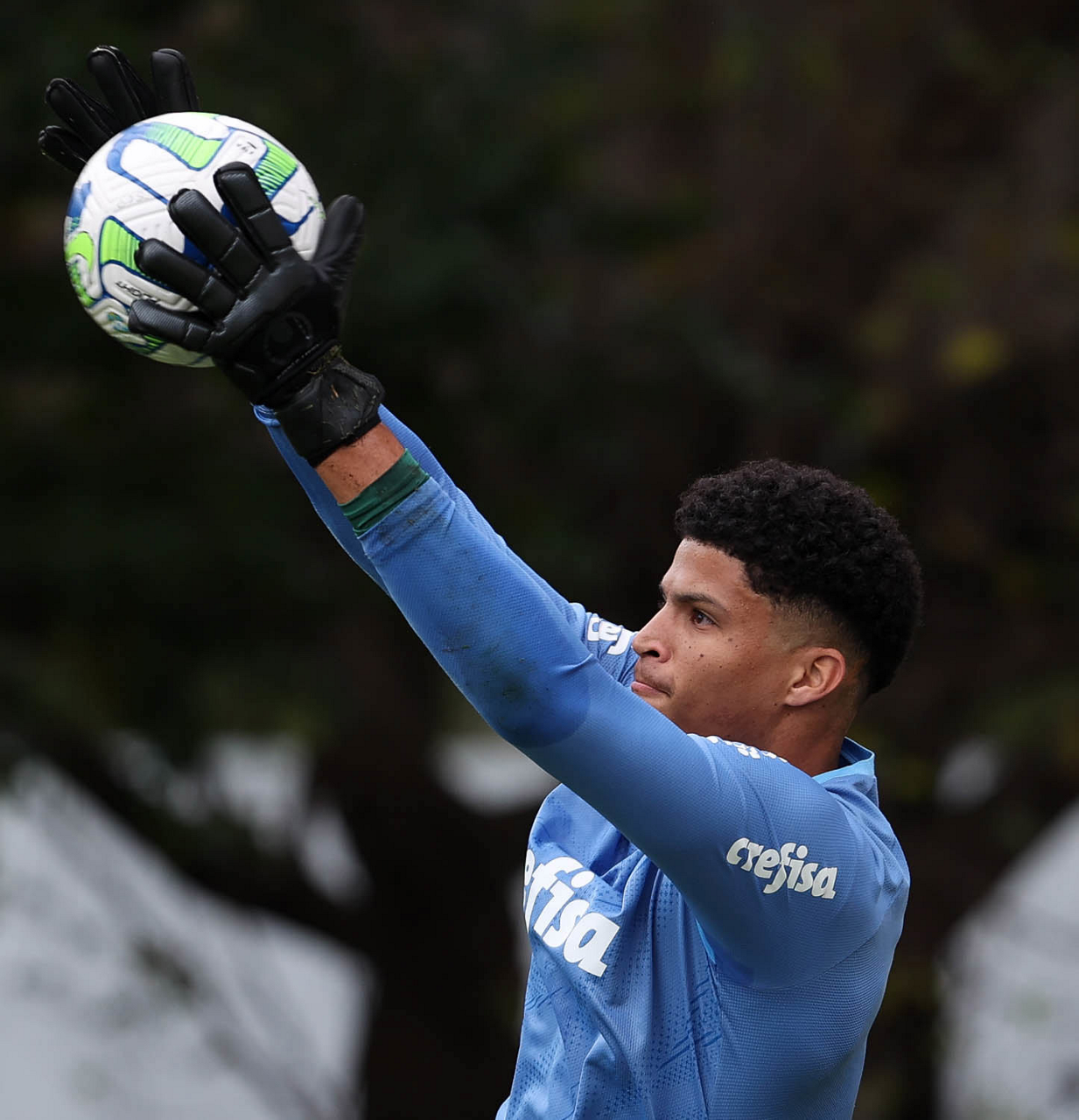 O goleiro Kaique, da SE Palmeiras, durante treinamento, na Academia de Futebol. (Foto: Cesar Greco/Palmeiras/by Canon)