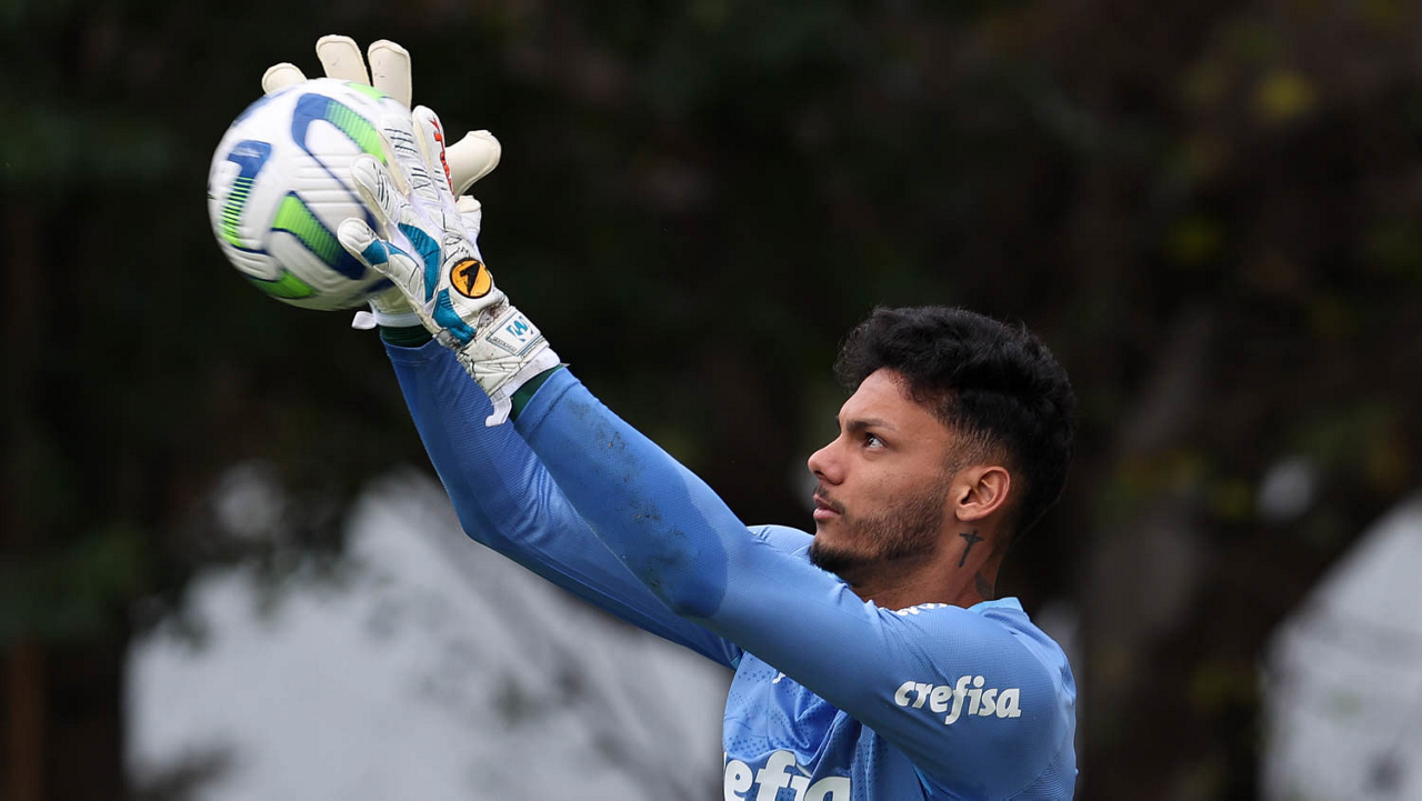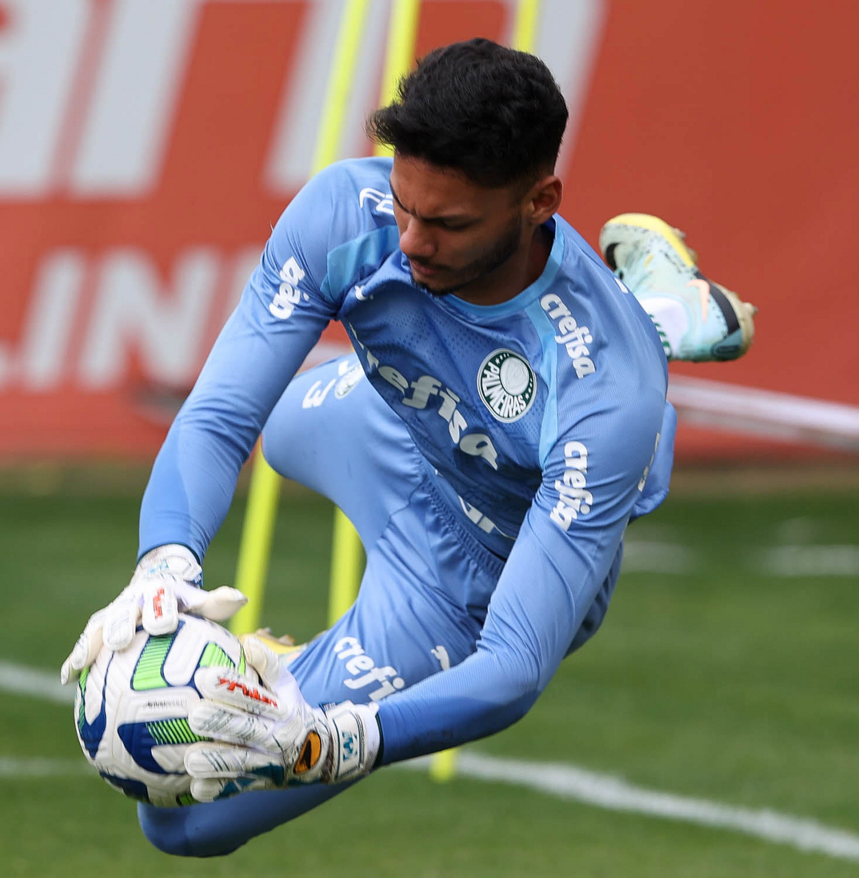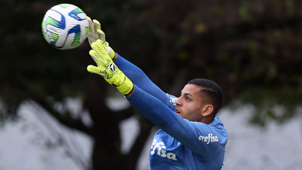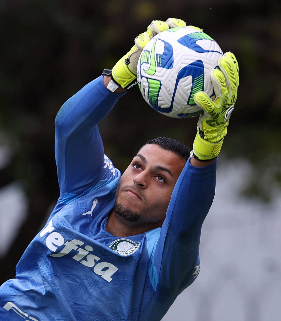 O goleiro Mateus, da SE Palmeiras, durante treinamento, na Academia de Futebol. (Foto: Cesar Greco/Palmeiras/by Canon)