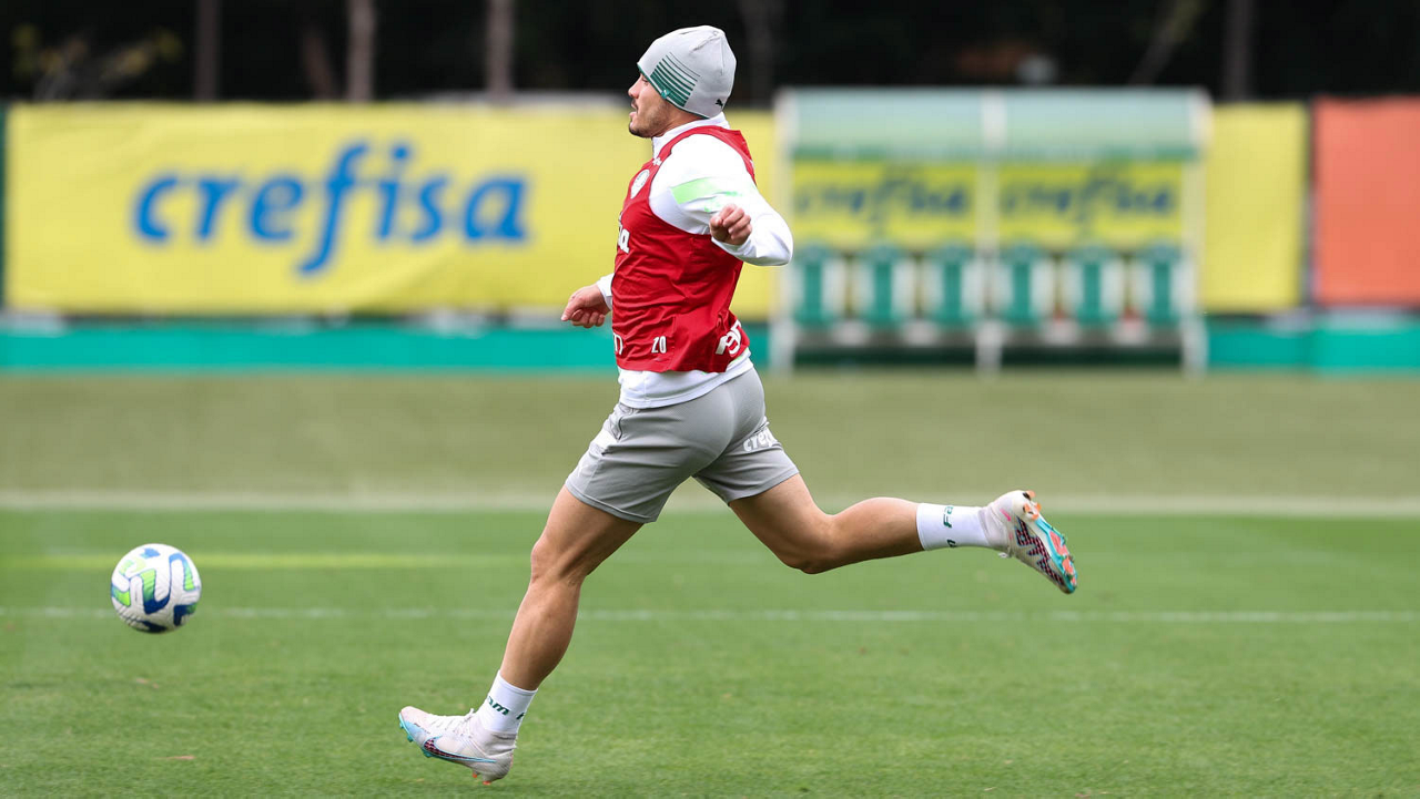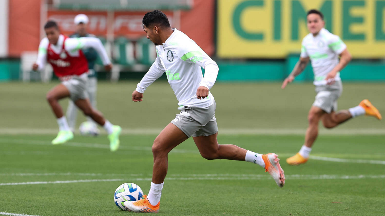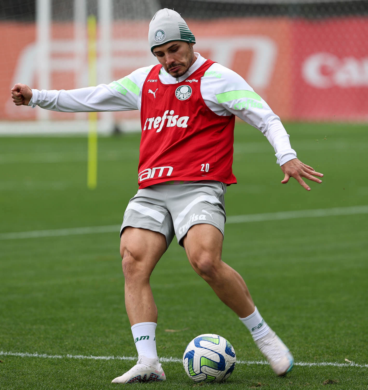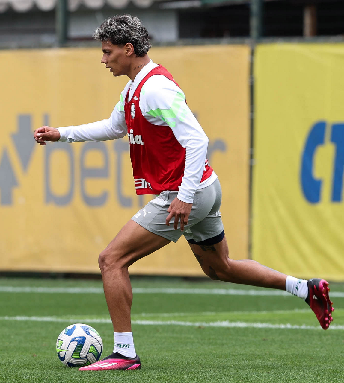 O jogador Richard Ríos, da SE Palmeiras, durante treinamento, na Academia de Futebol. (Foto: Cesar Greco/Palmeiras/by Canon)