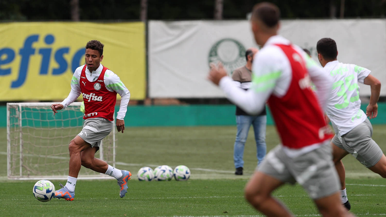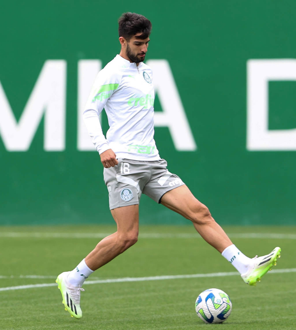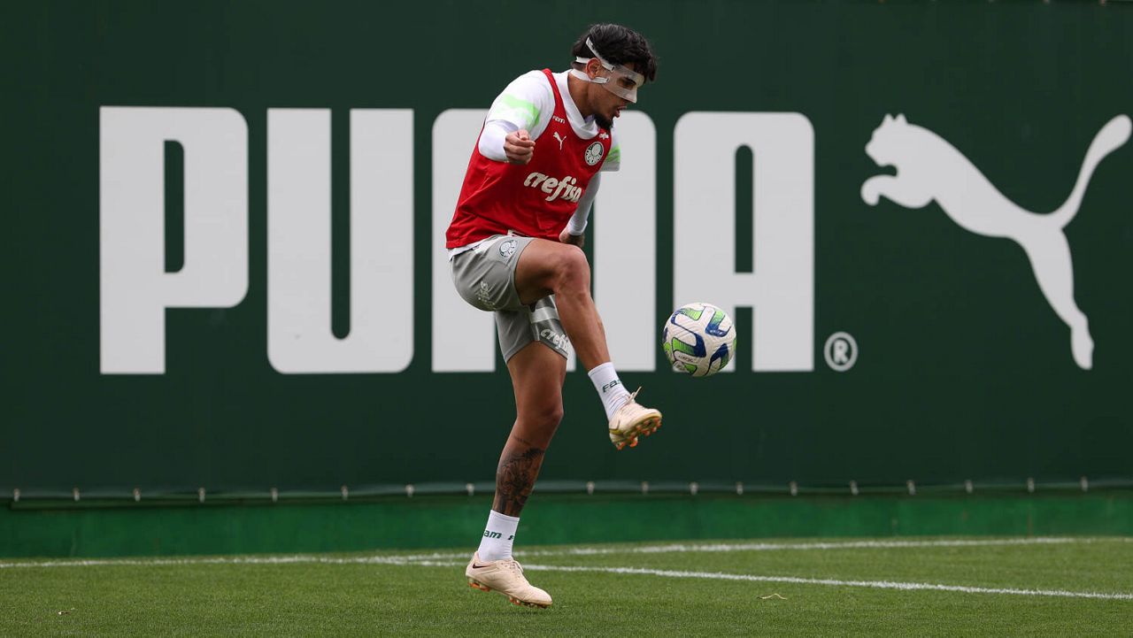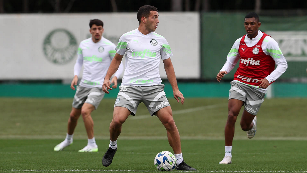 O jogador Richard Ríos, da SE Palmeiras, durante treinamento, na Academia de Futebol. (Foto: Cesar Greco/Palmeiras/by Canon)
