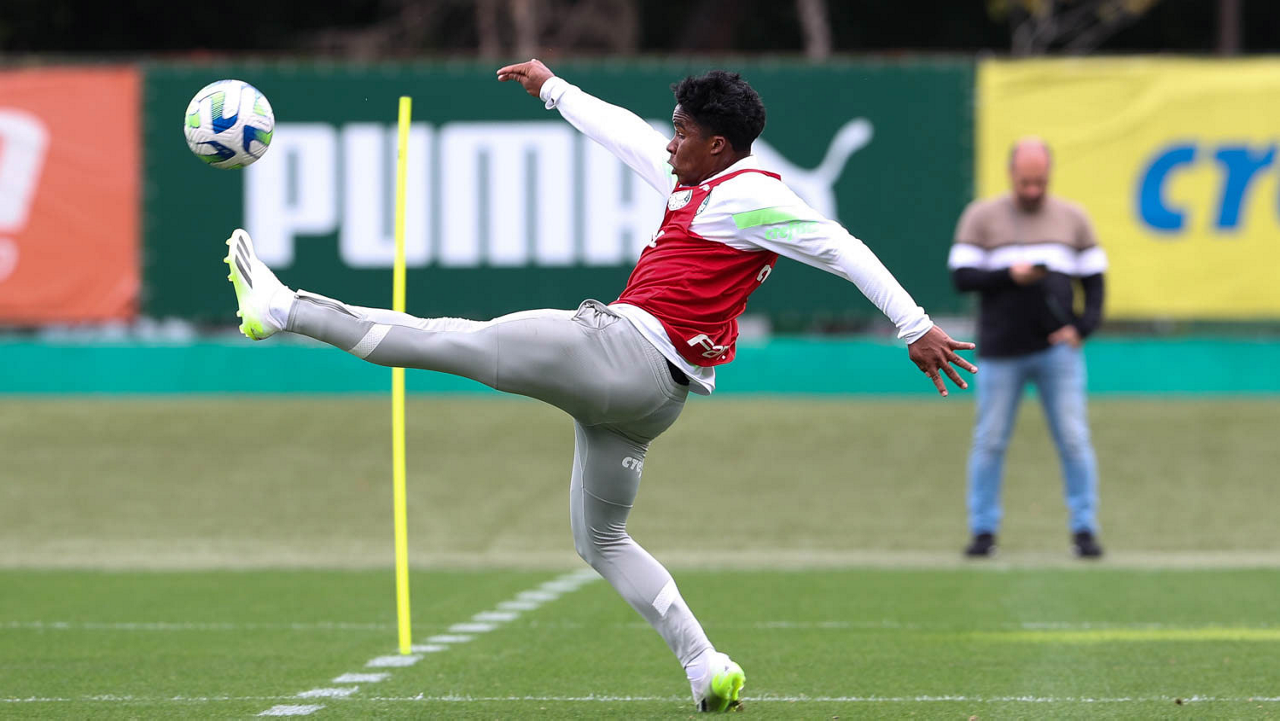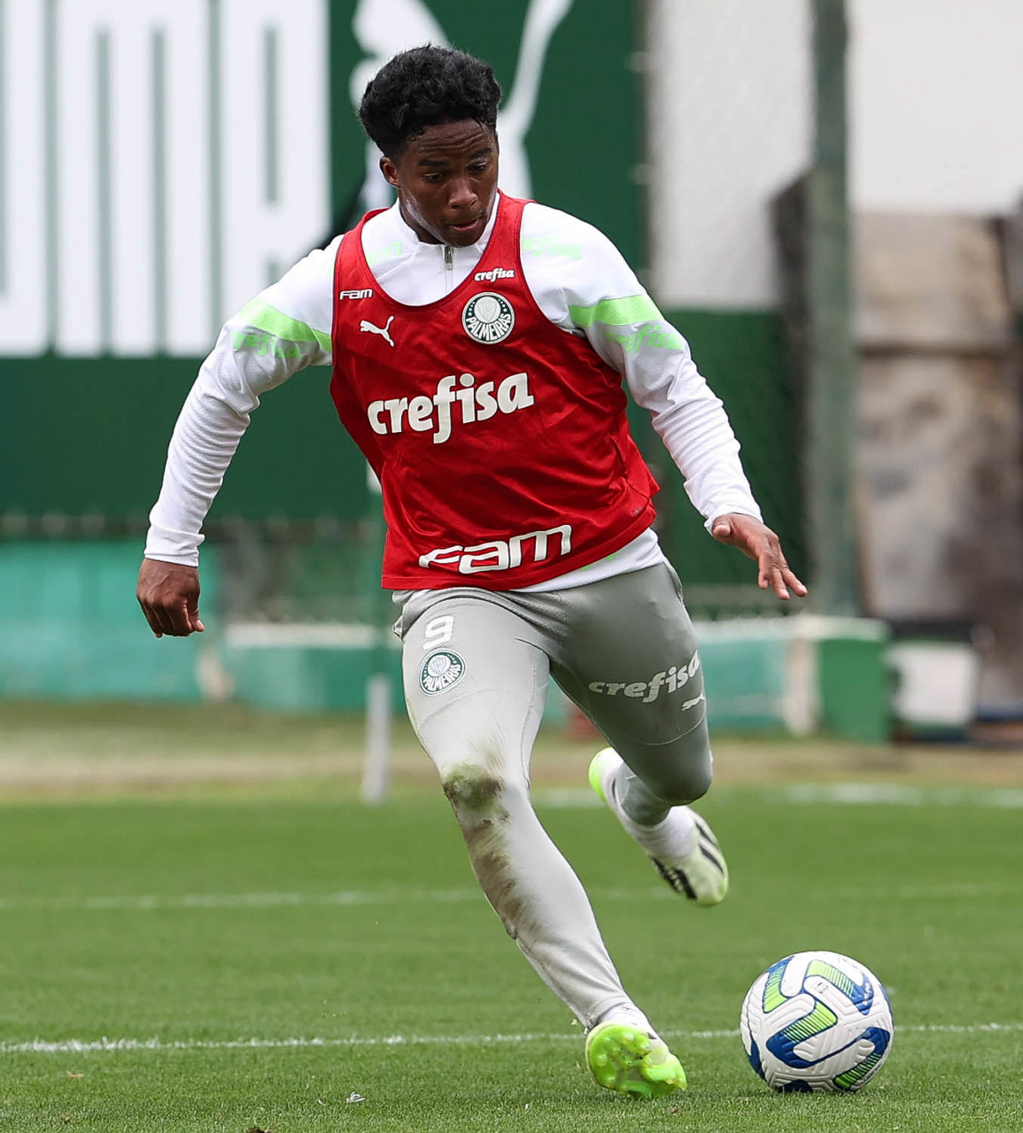 O jogador Endrick, da SE Palmeiras, durante treinamento, na Academia de Futebol. (Foto: Cesar Greco/Palmeiras/by Canon)