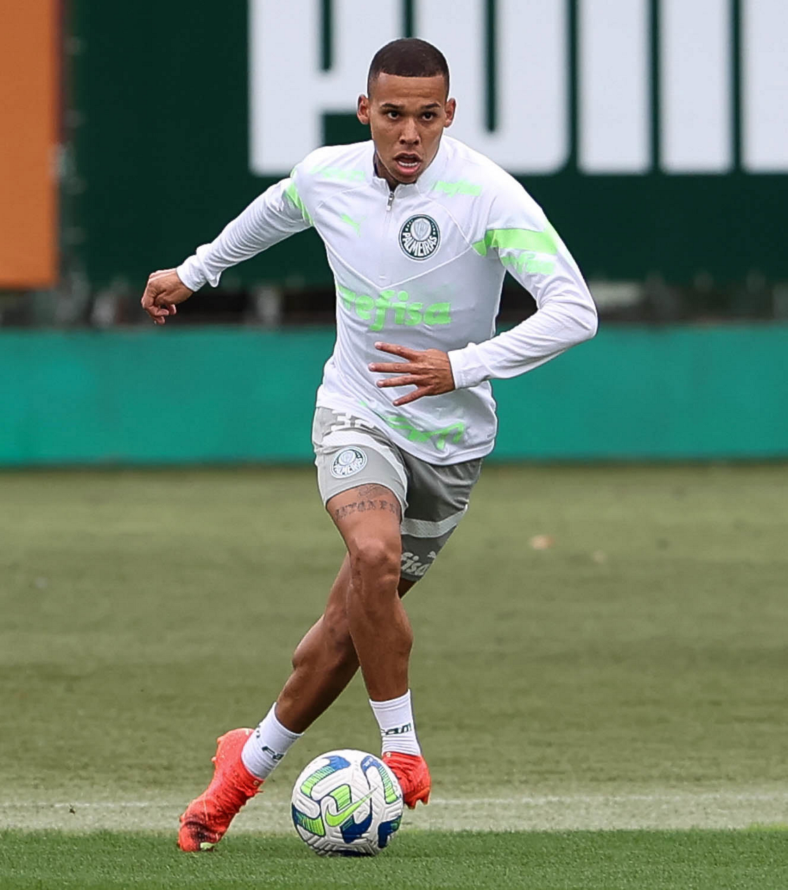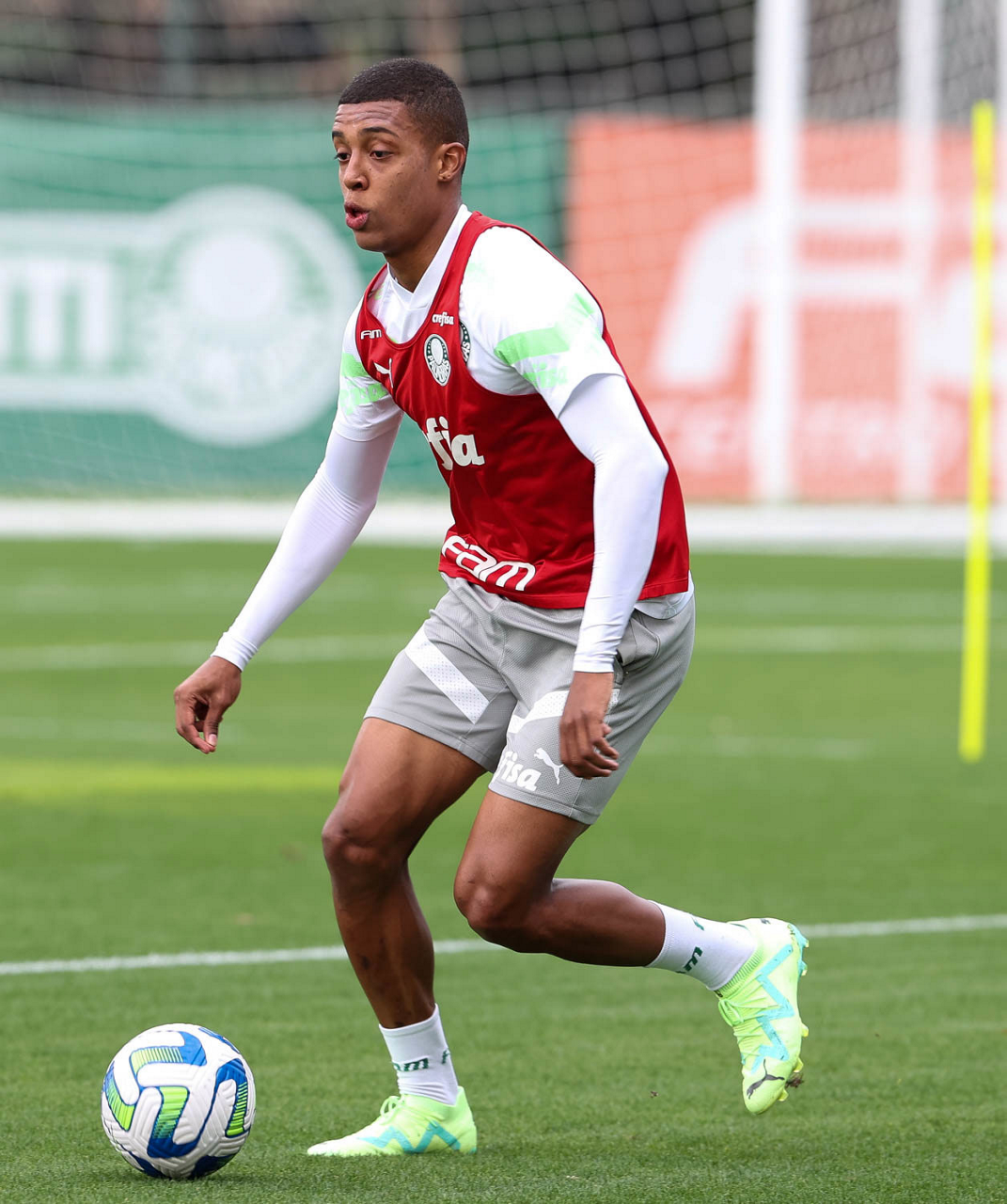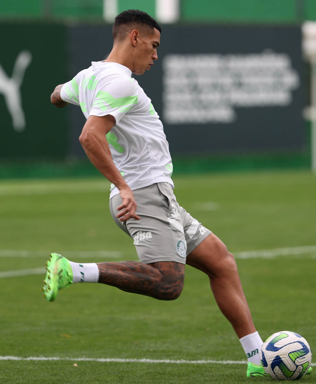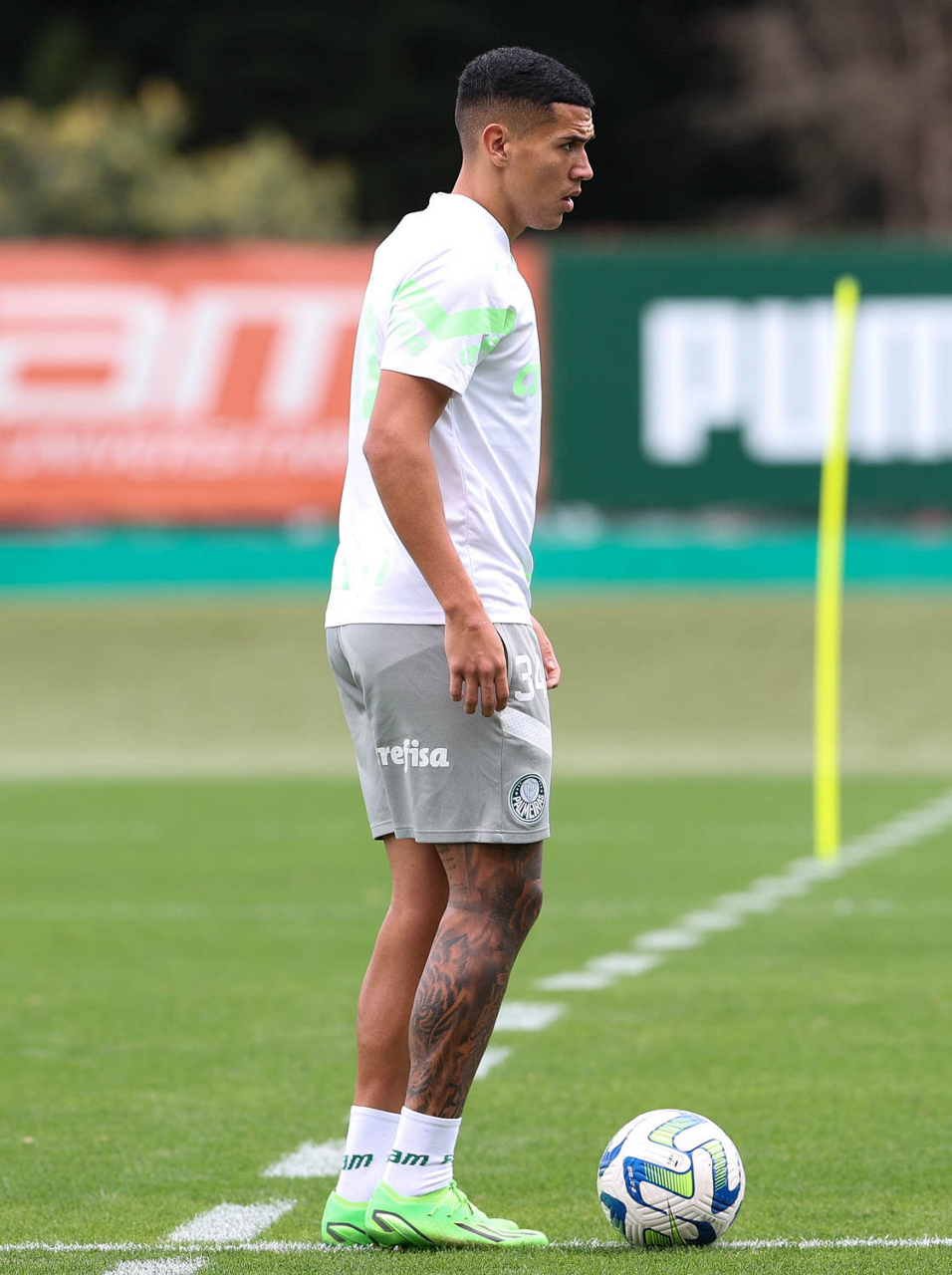 O jogador Gabriel Menino, da SE Palmeiras, durante treinamento, na Academia de Futebol. (Foto: Cesar Greco/Palmeiras/by Canon)