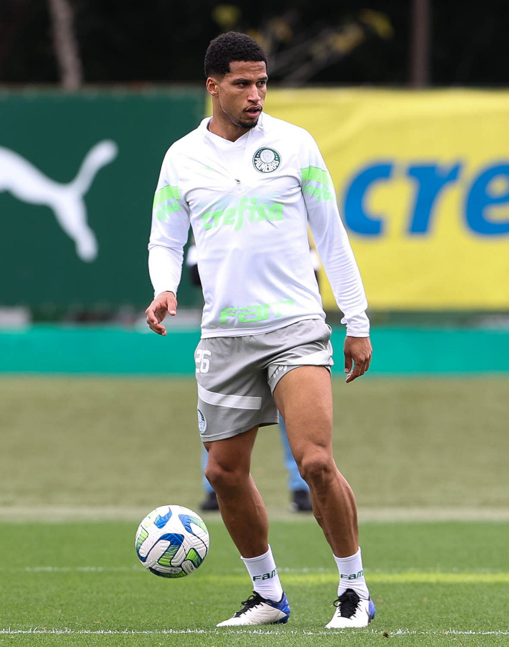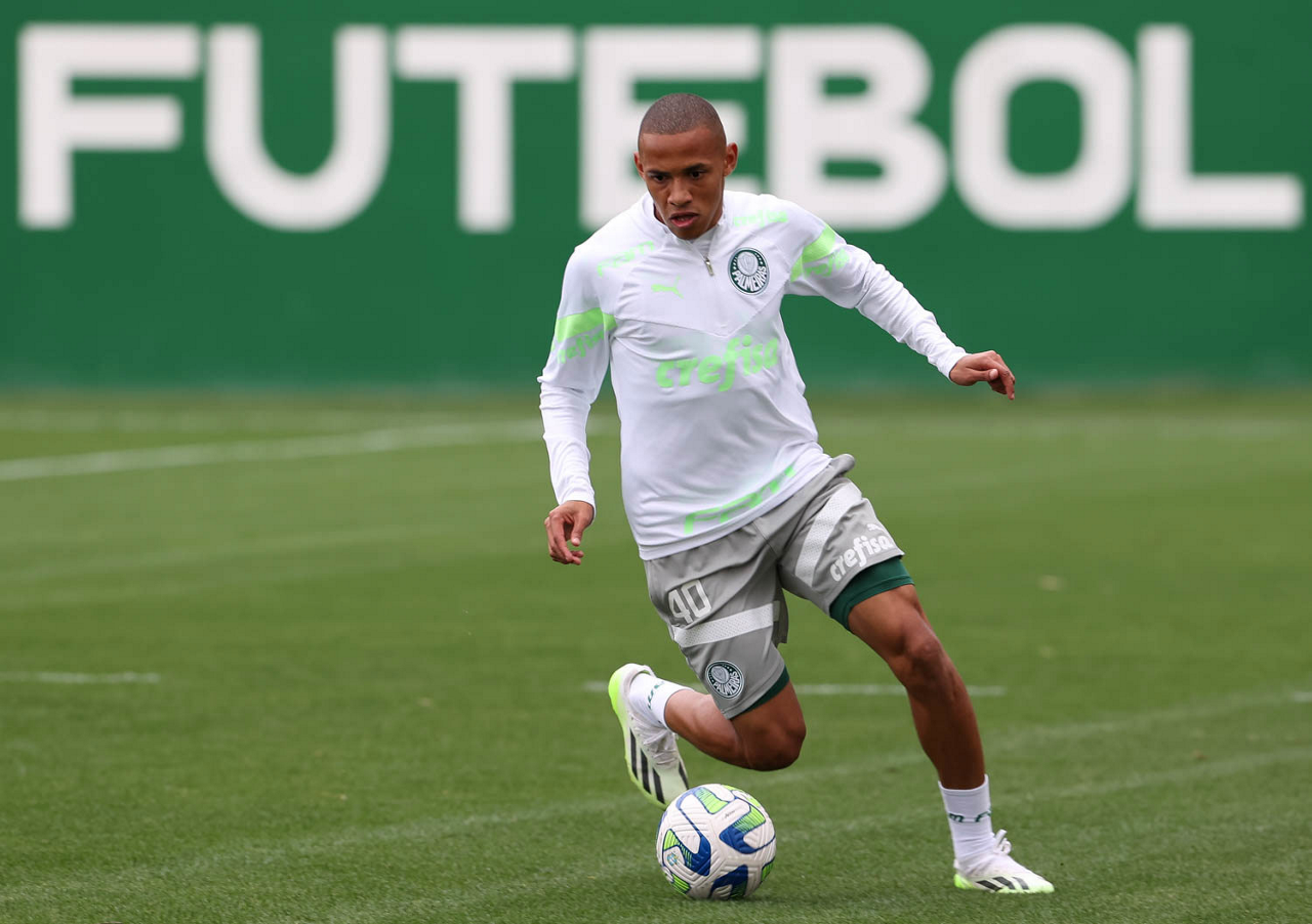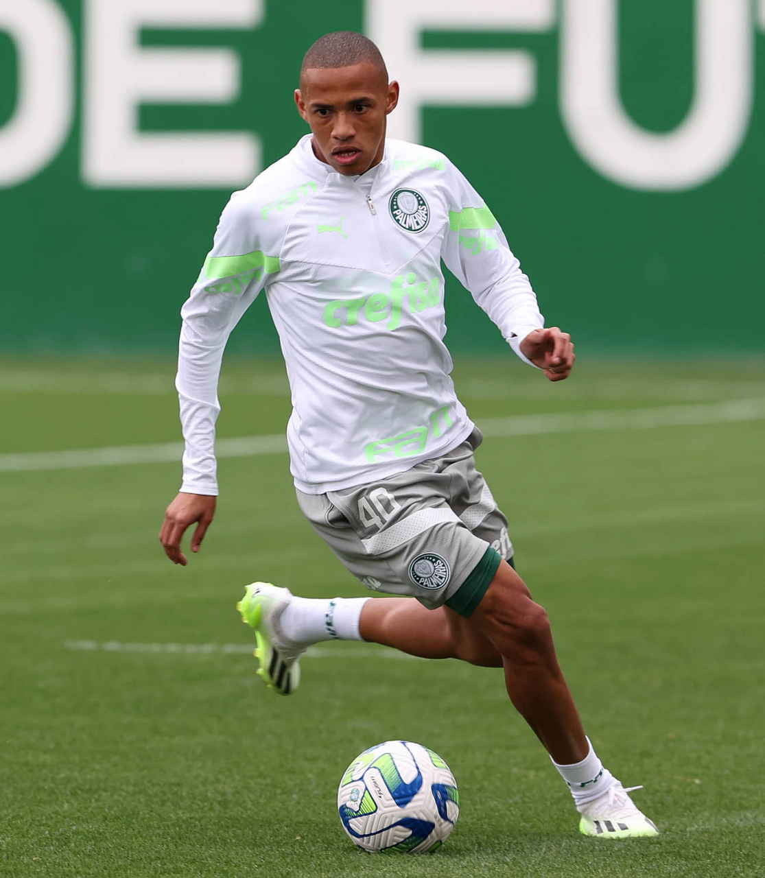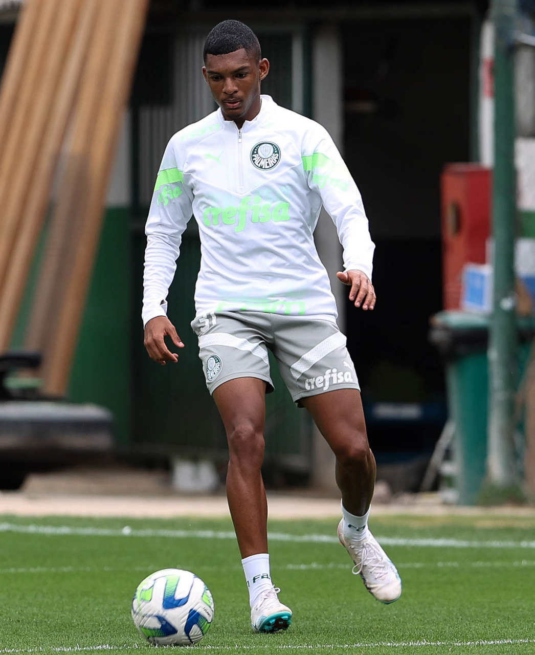 O jogador Gabriel Menino, da SE Palmeiras, durante treinamento, na Academia de Futebol. (Foto: Cesar Greco/Palmeiras/by Canon)