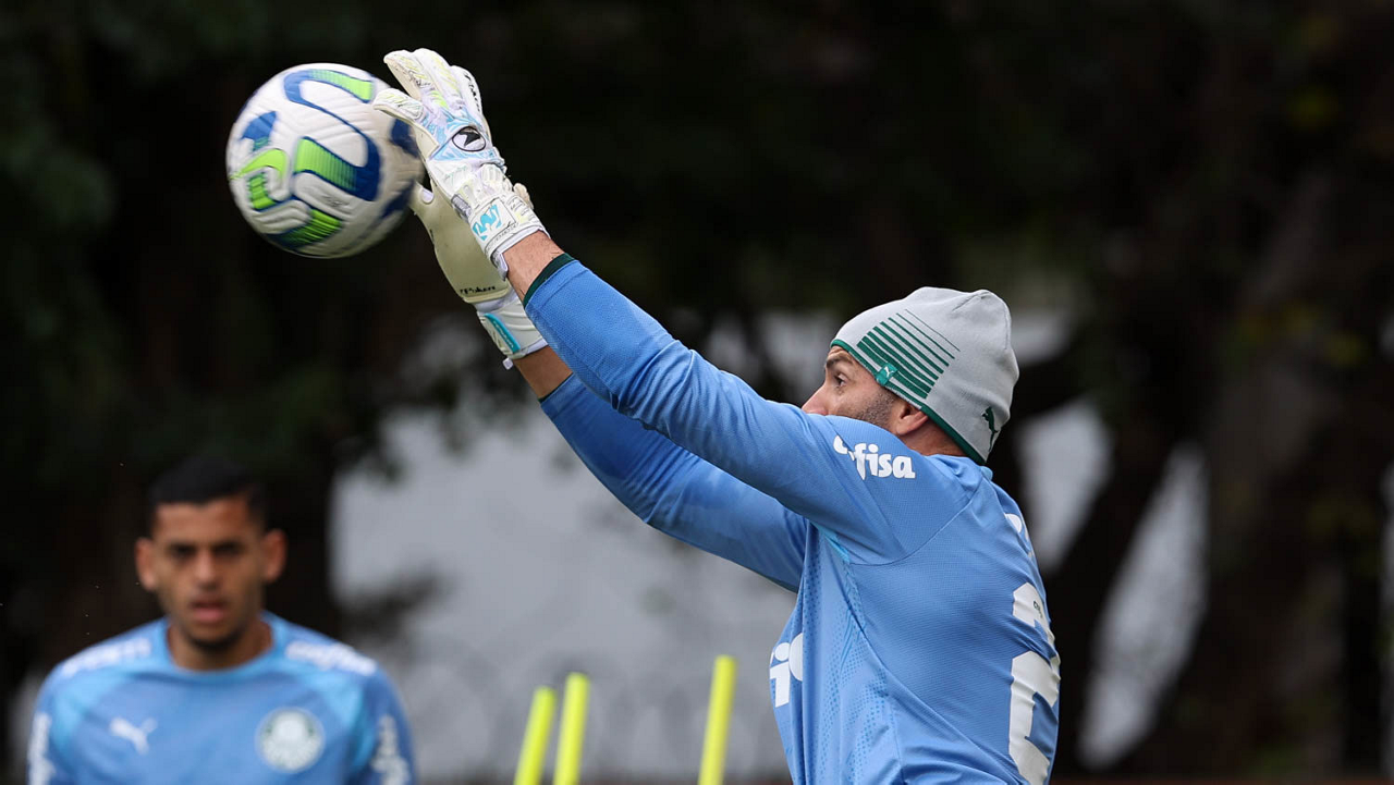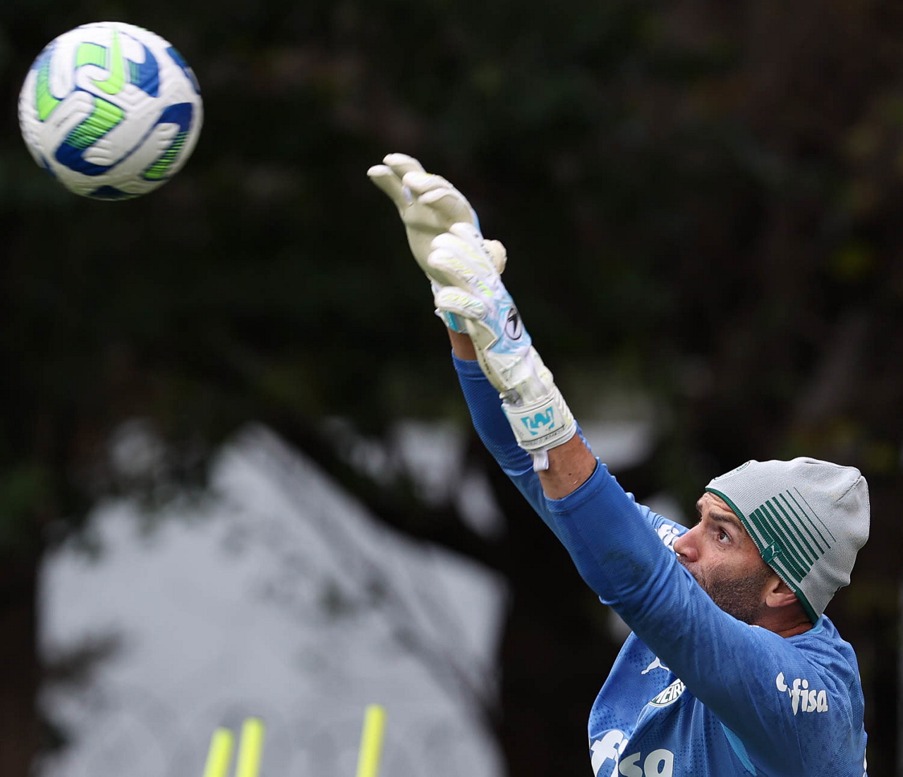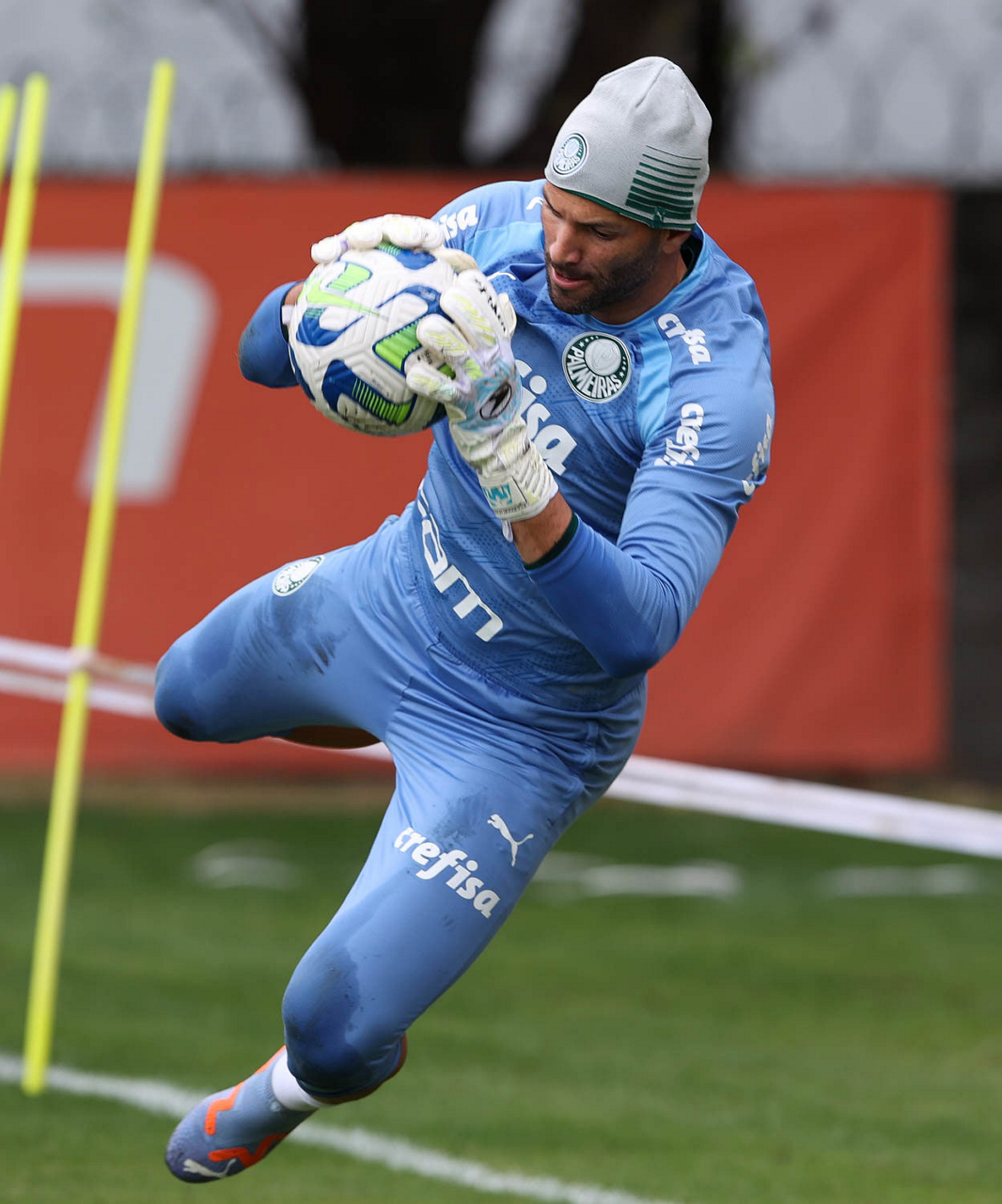 O goleiro Weverton, da SE Palmeiras, durante treinamento, na Academia de Futebol. (Foto: Cesar Greco/Palmeiras/by Canon)