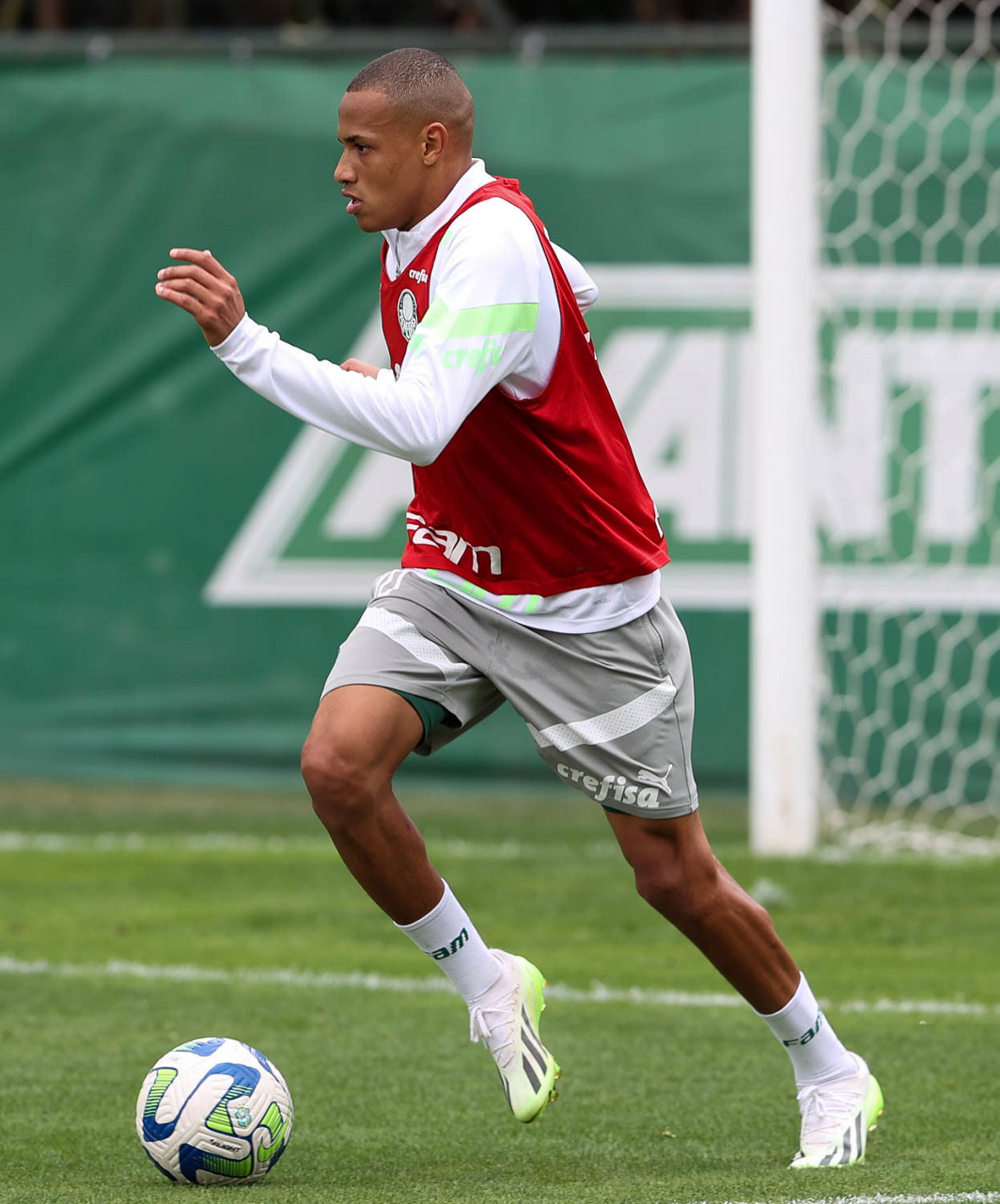 O jogador Fabinho, da SE Palmeiras, durante treinamento, na Academia de Futebol. (Foto: Cesar Greco/Palmeiras/by Canon)