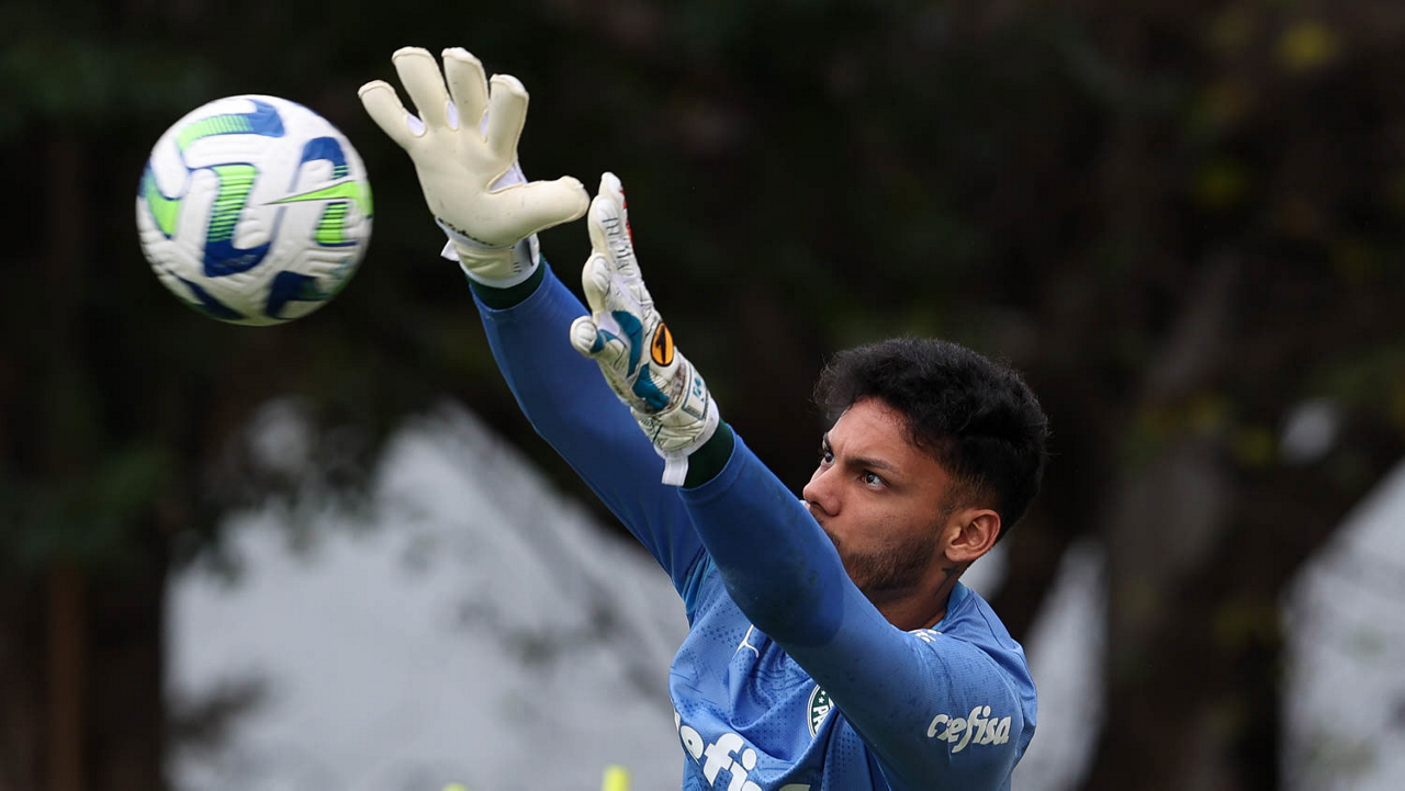 O goleiro Natan, da SE Palmeiras, durante treinamento, na Academia de Futebol. (Foto: Cesar Greco/Palmeiras/by Canon)