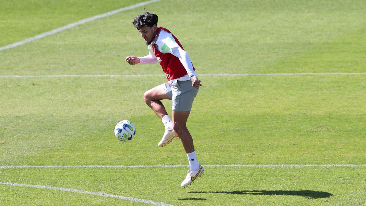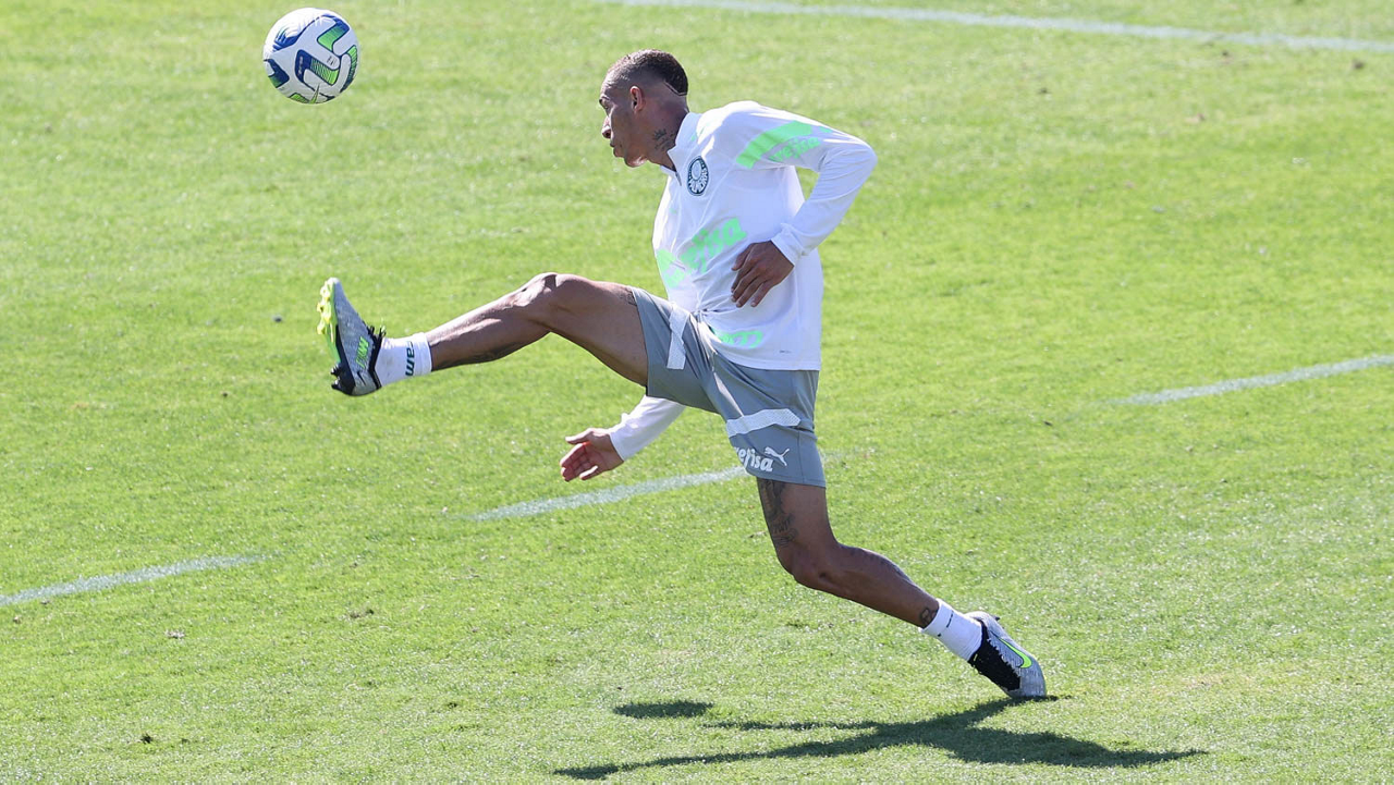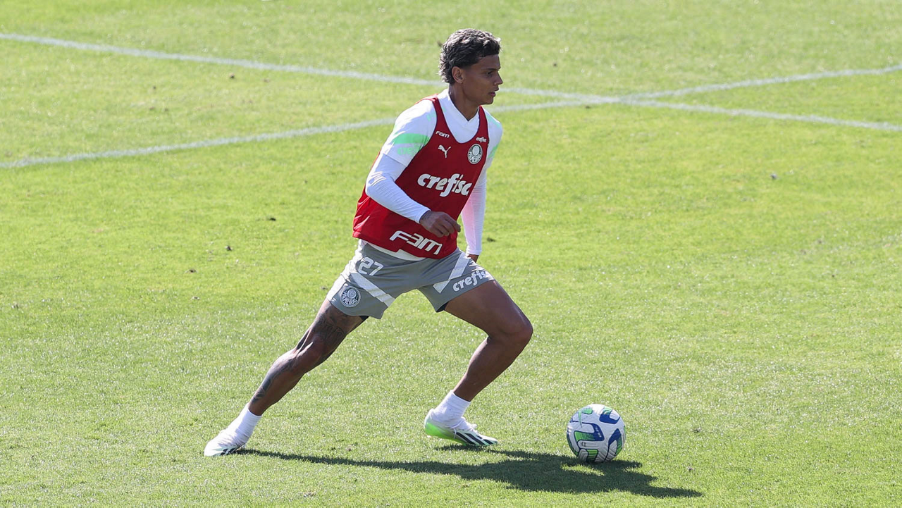 O jogador Richard Ríos, da SE Palmeiras, durante treinamento, na Academia de Futebol. (Foto: Cesar Greco/Palmeiras/by Canon)