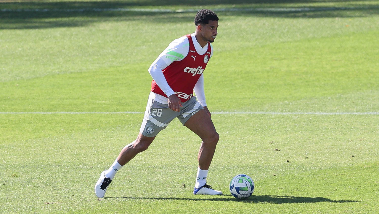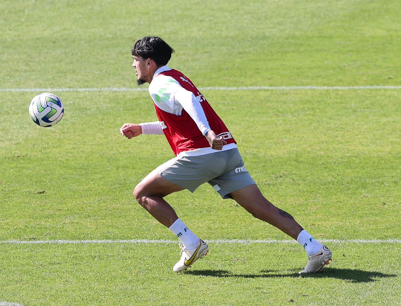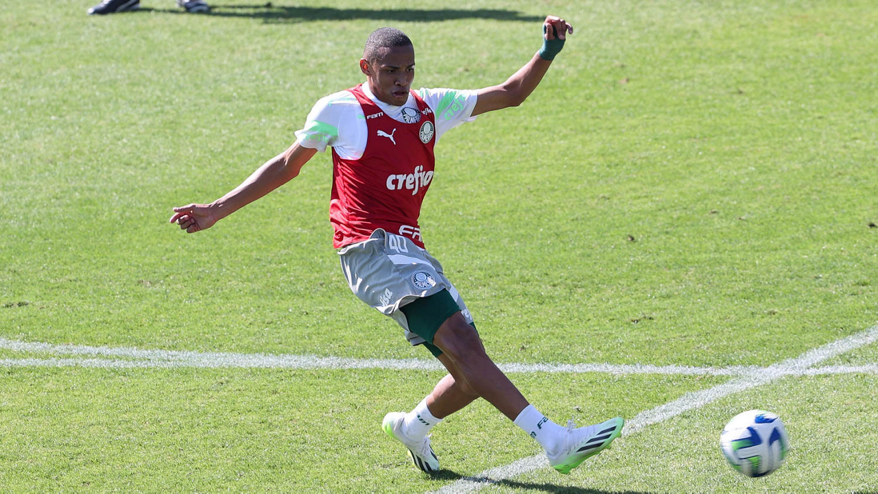 O jogador Gabriel Menino, da SE Palmeiras, durante treinamento, na Academia de Futebol. (Foto: Cesar Greco/Palmeiras/by Canon)