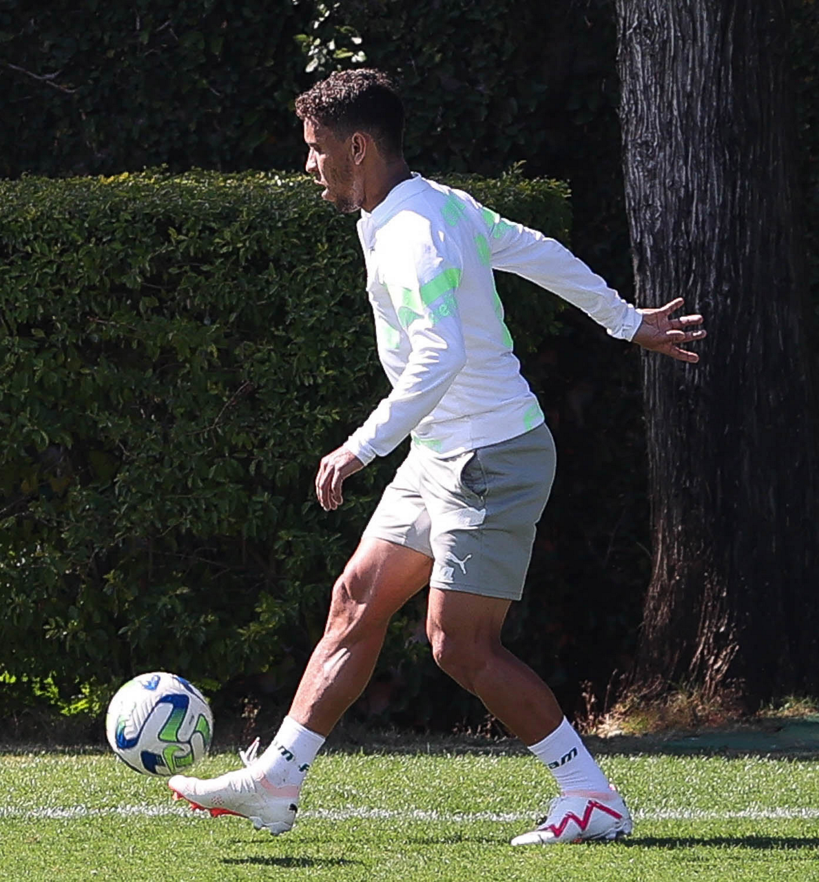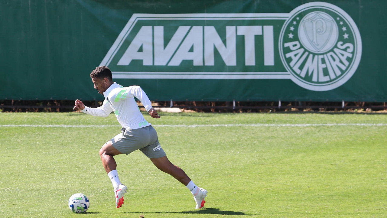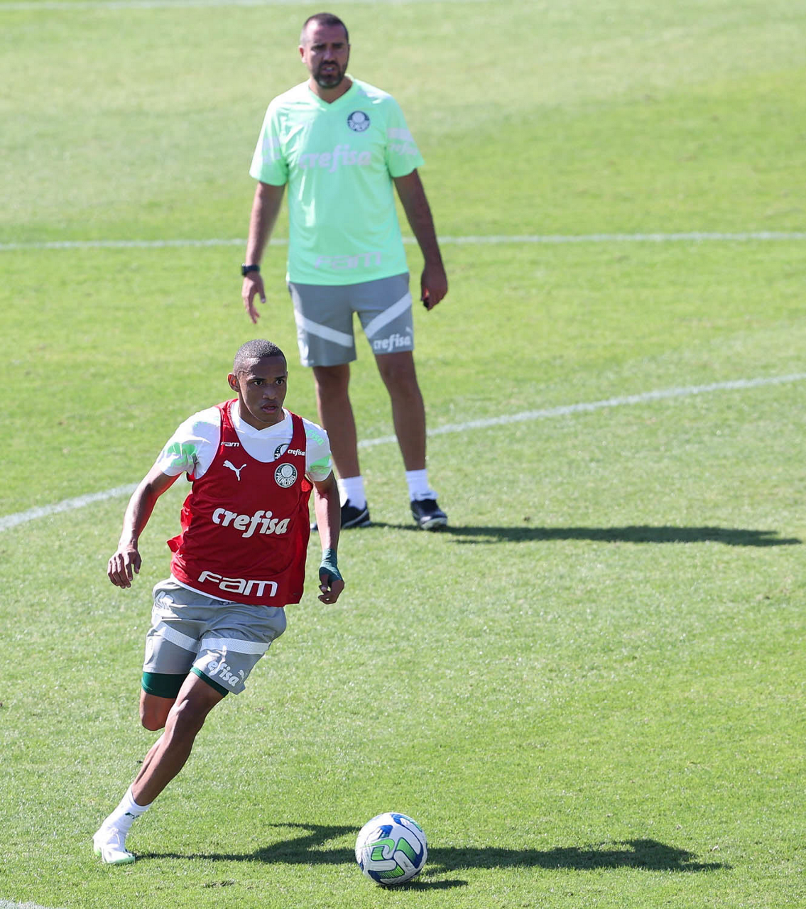 O jogador Gabriel Menino, da SE Palmeiras, durante treinamento, na Academia de Futebol. (Foto: Cesar Greco/Palmeiras/by Canon)