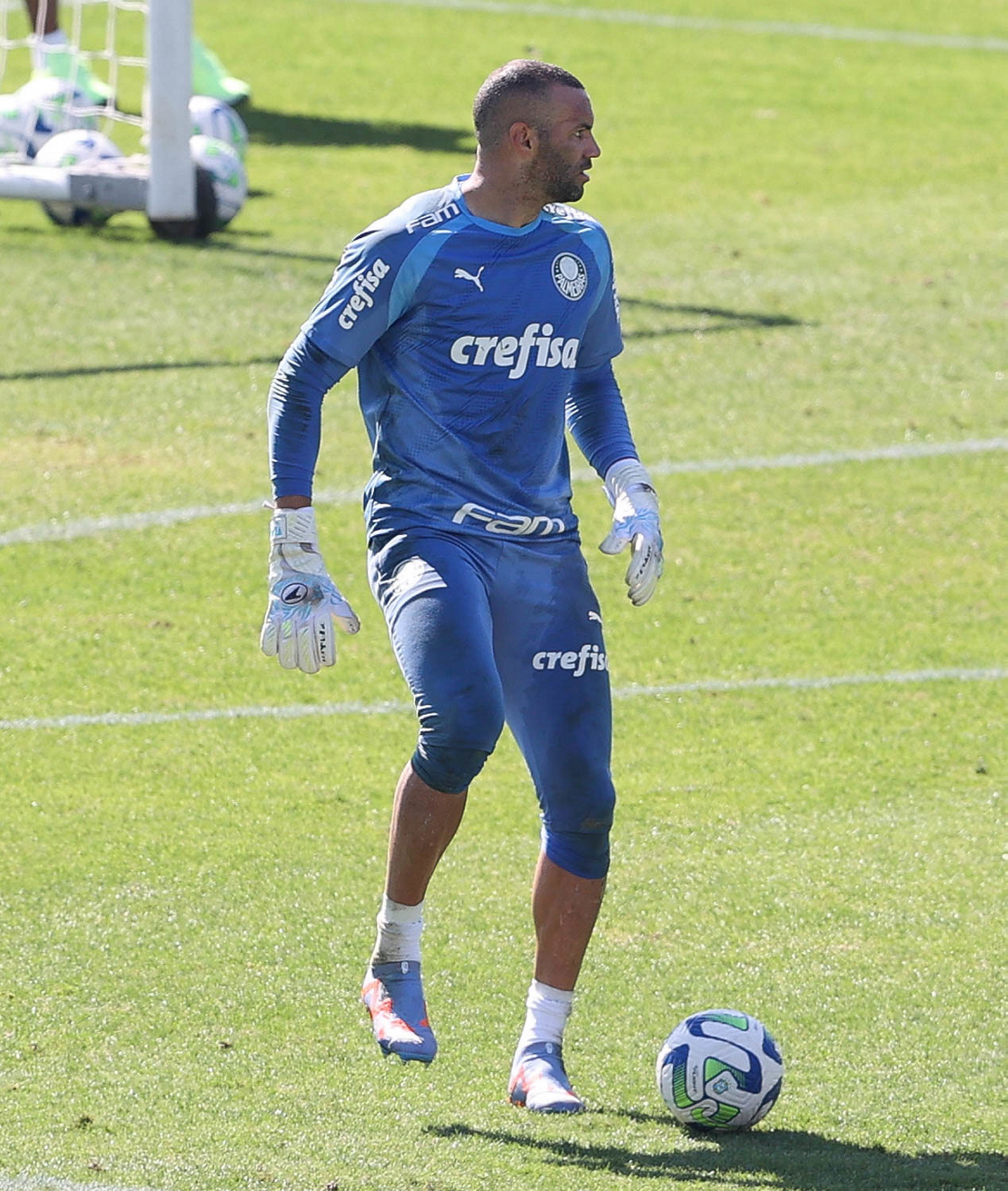 O goleiro Weverton, da SE Palmeiras, durante treinamento, na Academia de Futebol. (Foto: Cesar Greco/Palmeiras/by Canon)