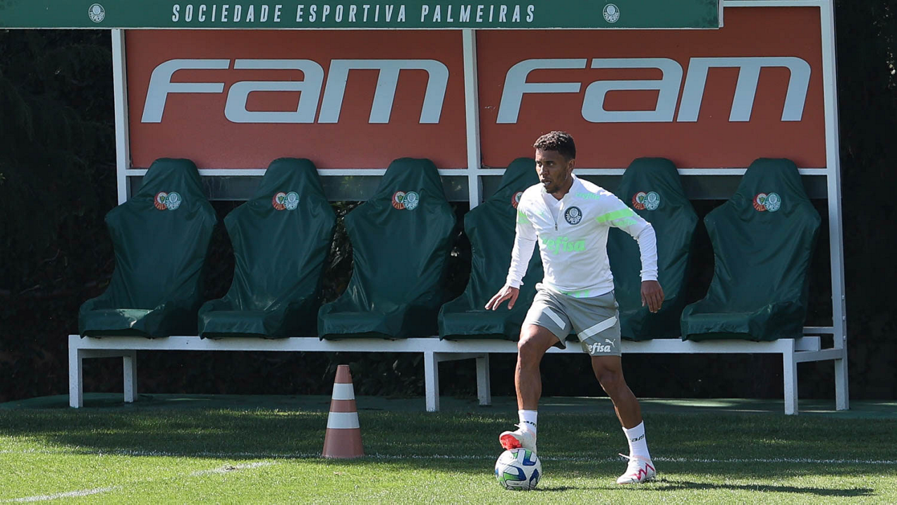 O jogador Fabinho, da SE Palmeiras, durante treinamento, na Academia de Futebol. (Foto: Cesar Greco/Palmeiras/by Canon)