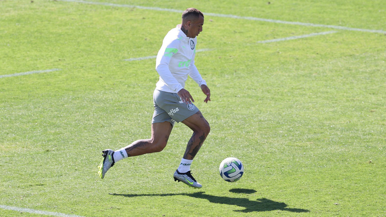 O jogador Mayke, da SE Palmeiras, durante treinamento, na Academia de Futebol. (Foto: Cesar Greco/Palmeiras/by Canon)