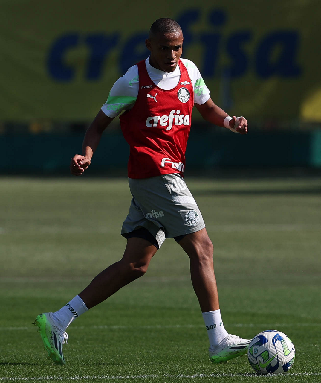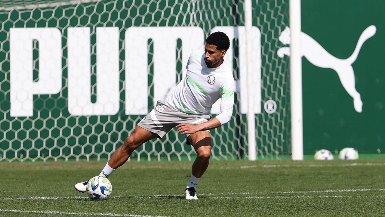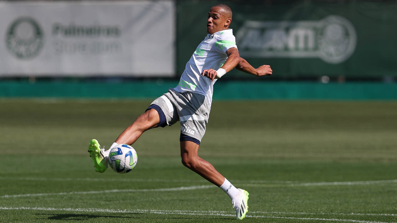 O jogador Gabriel Menino, da SE Palmeiras, durante treinamento, na Academia de Futebol. (Foto: Cesar Greco/Palmeiras/by Canon)