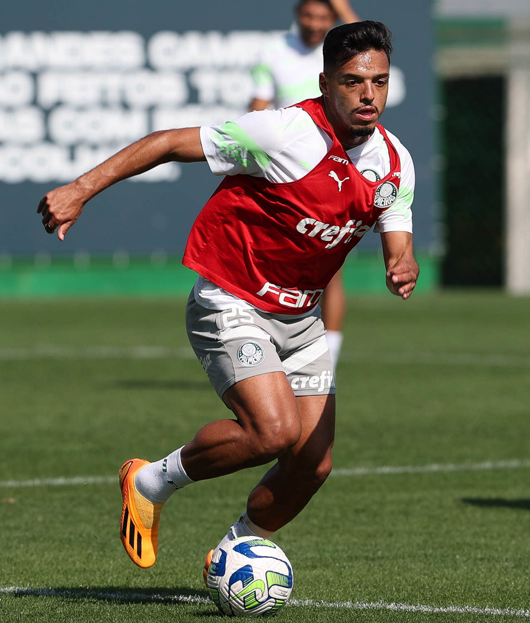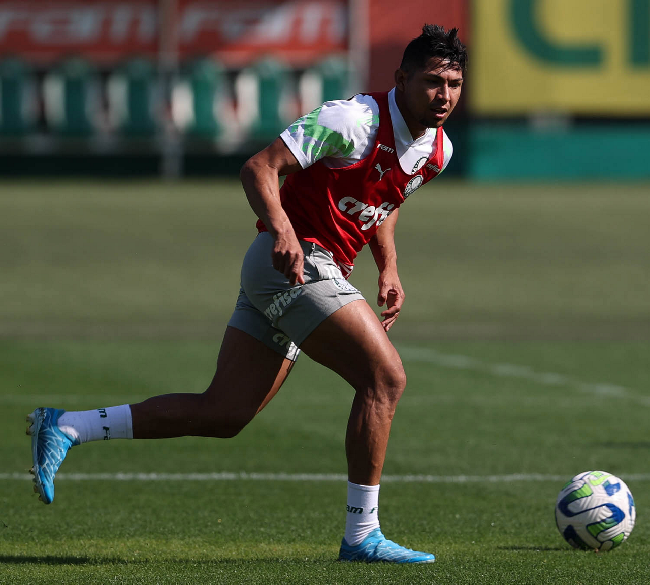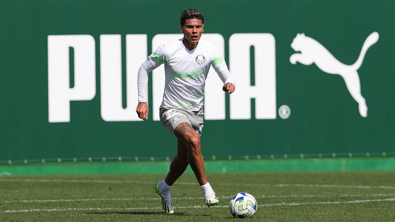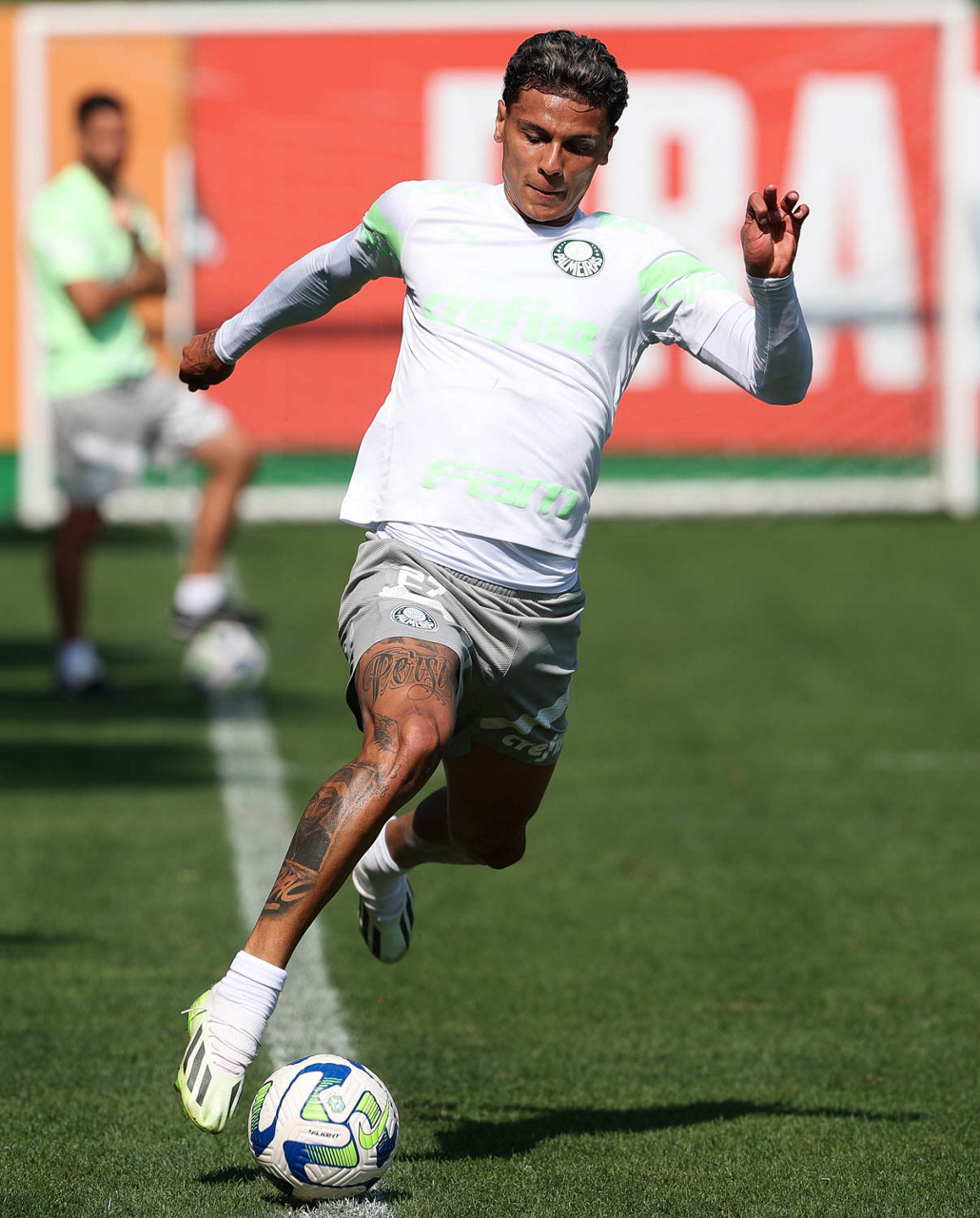 O jogador Richard Ríos, da SE Palmeiras, durante treinamento, na Academia de Futebol. (Foto: Cesar Greco/Palmeiras/by Canon)