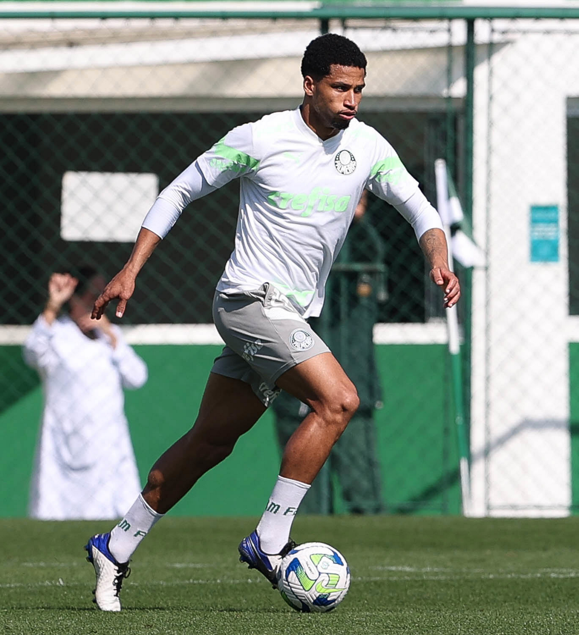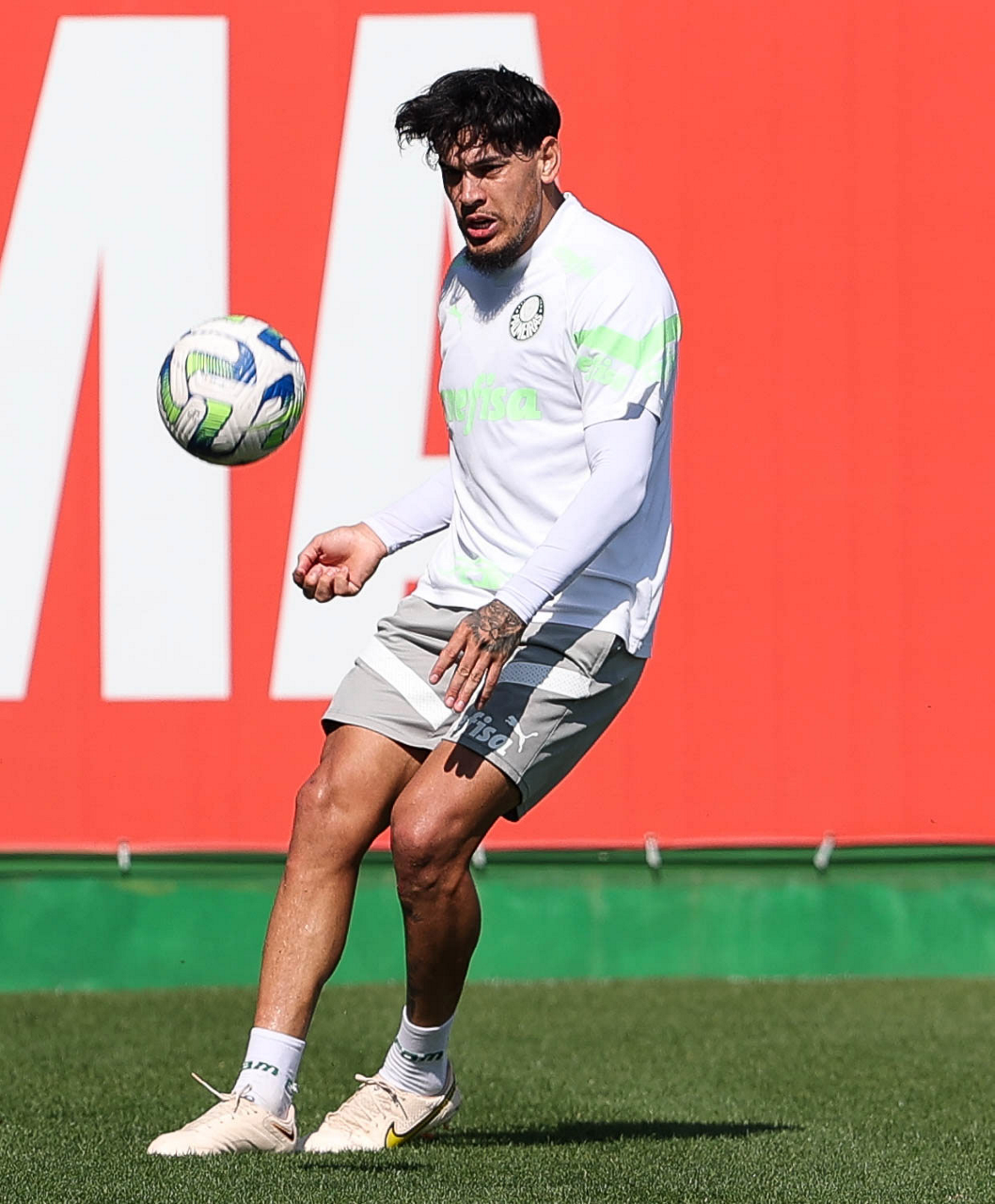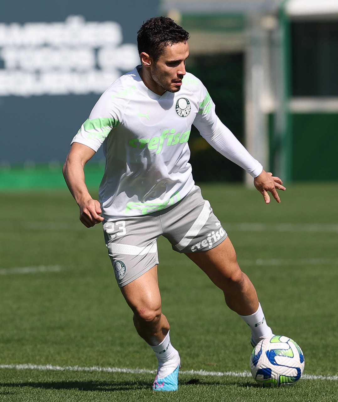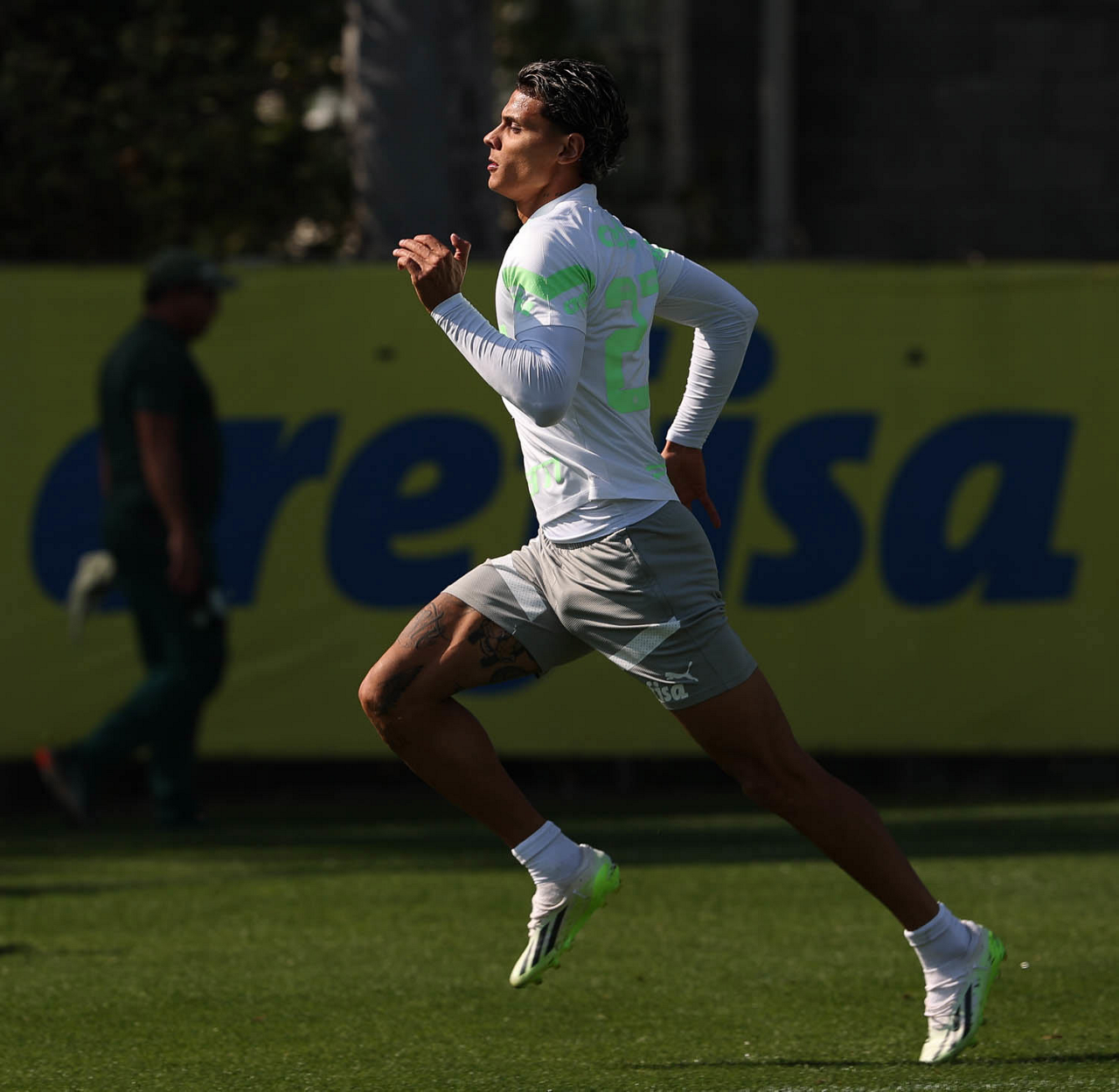 O jogador Richard Ríos, da SE Palmeiras, durante treinamento, na Academia de Futebol. (Foto: Cesar Greco/Palmeiras/by Canon)