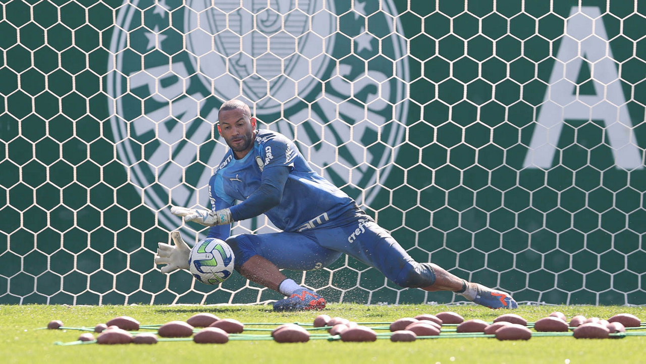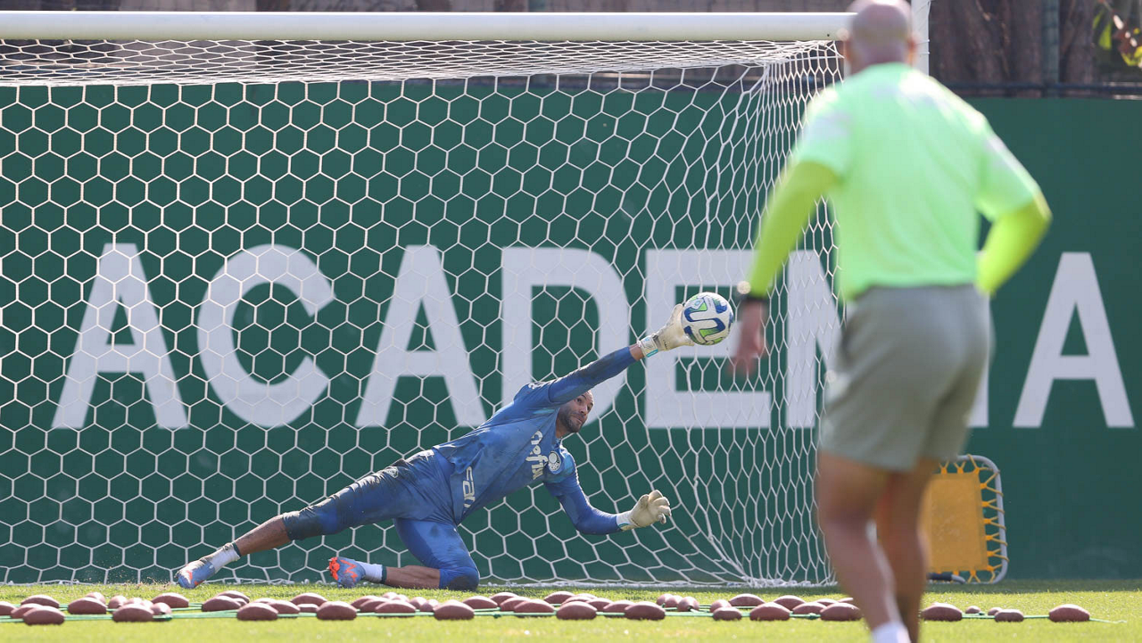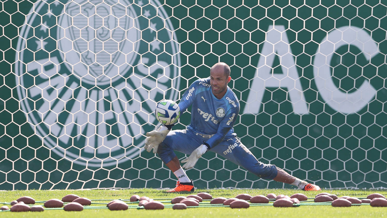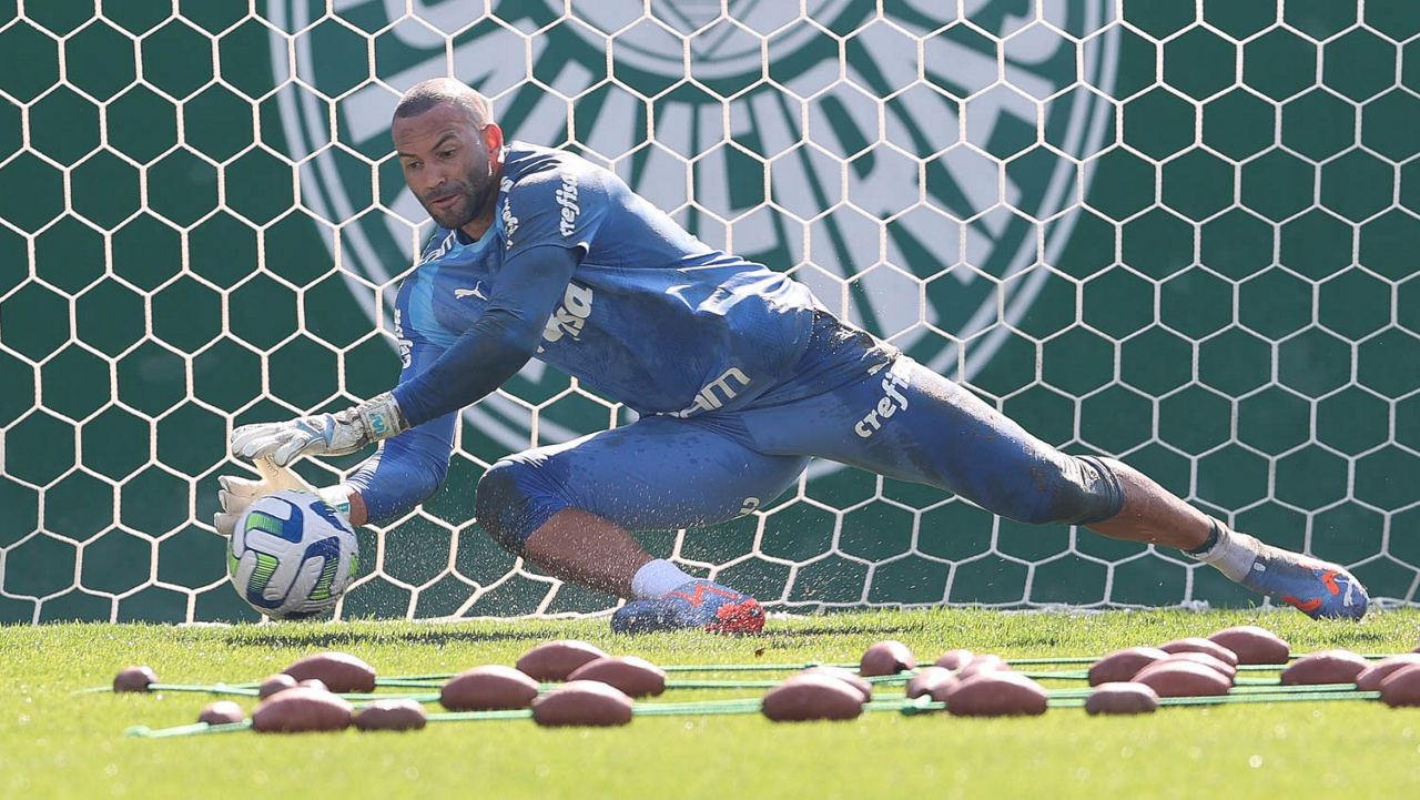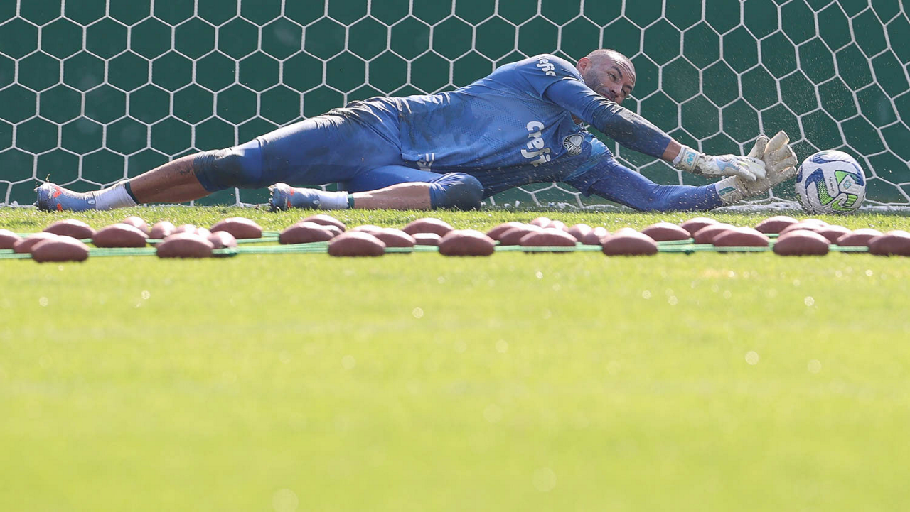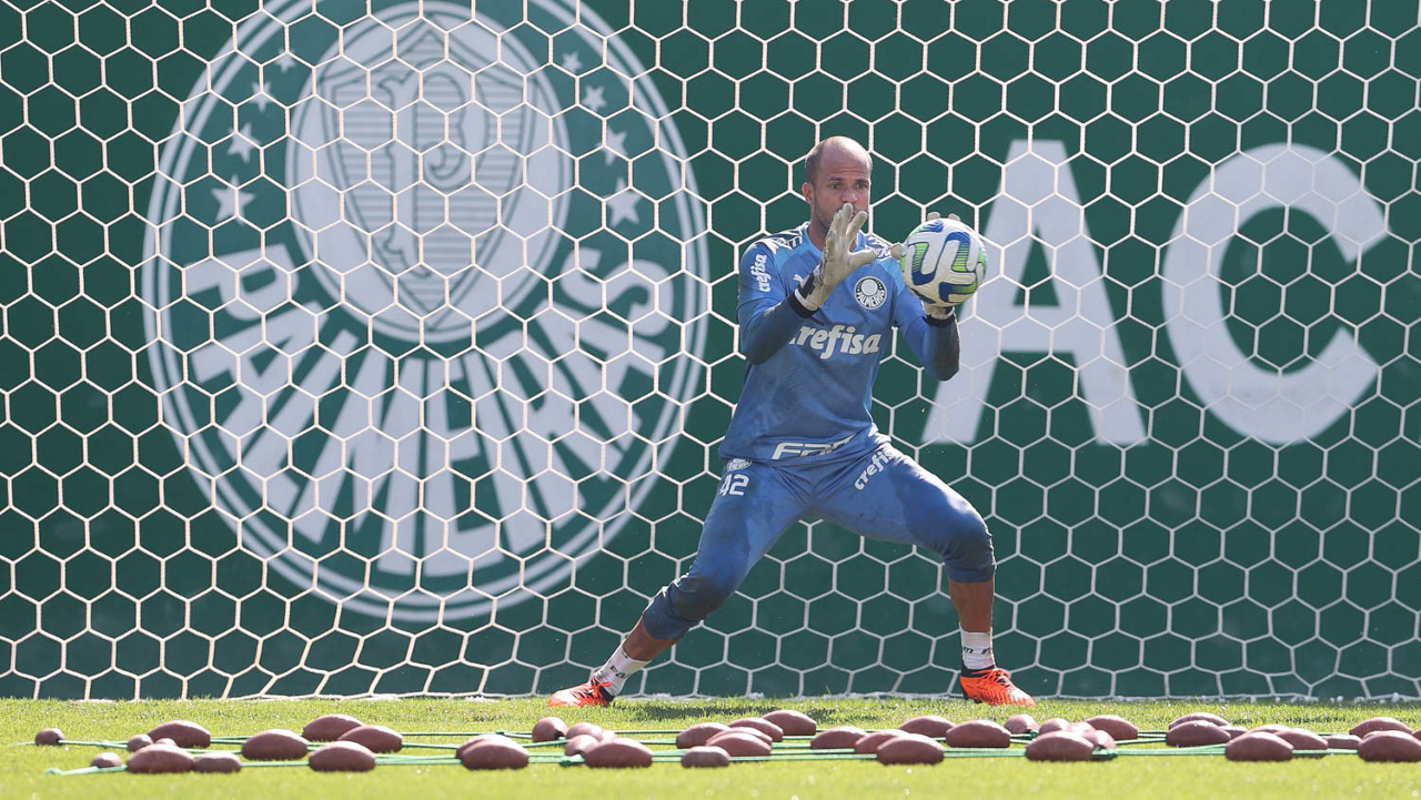 O goleiro Weverton, da SE Palmeiras, durante treinamento, na Academia de Futebol. (Foto: Cesar Greco/Palmeiras/by Canon)
