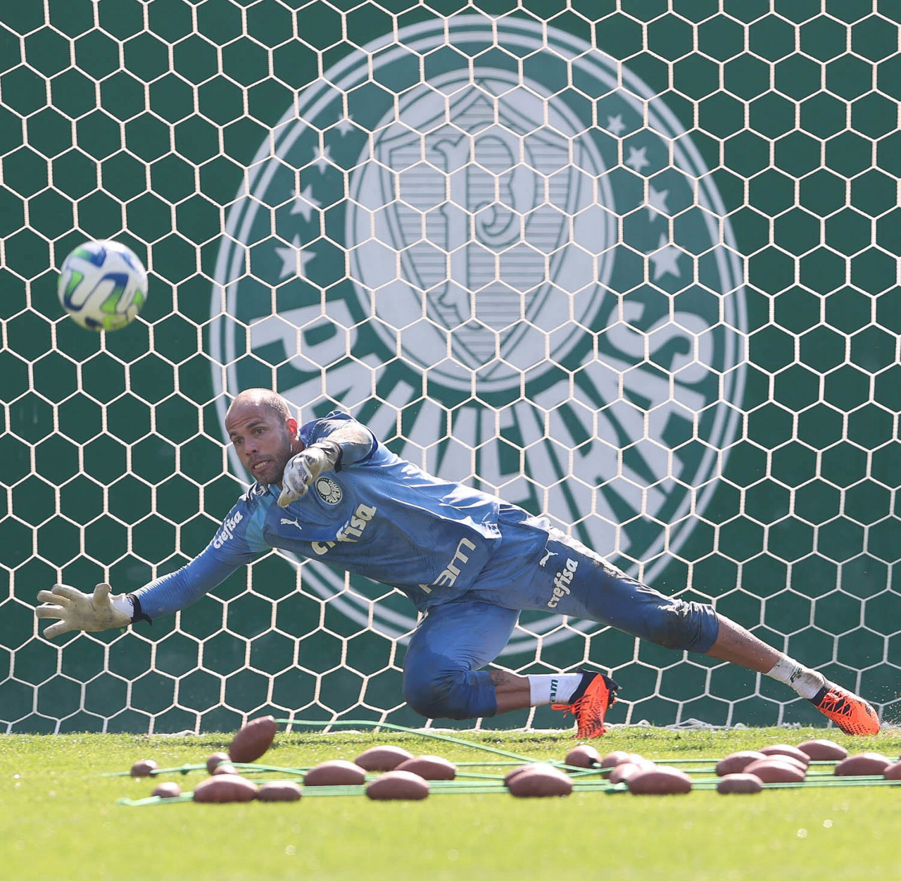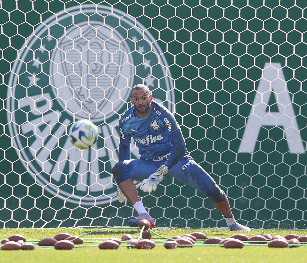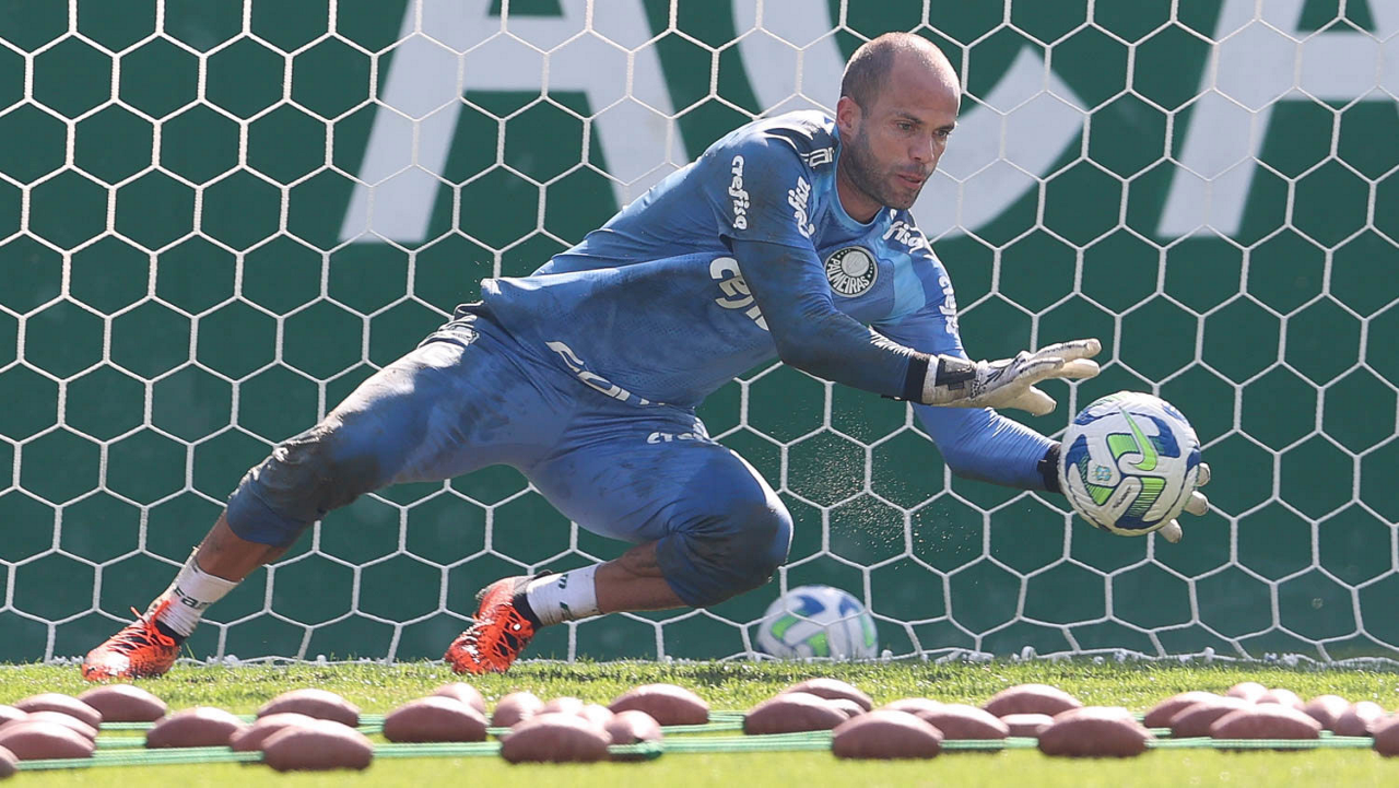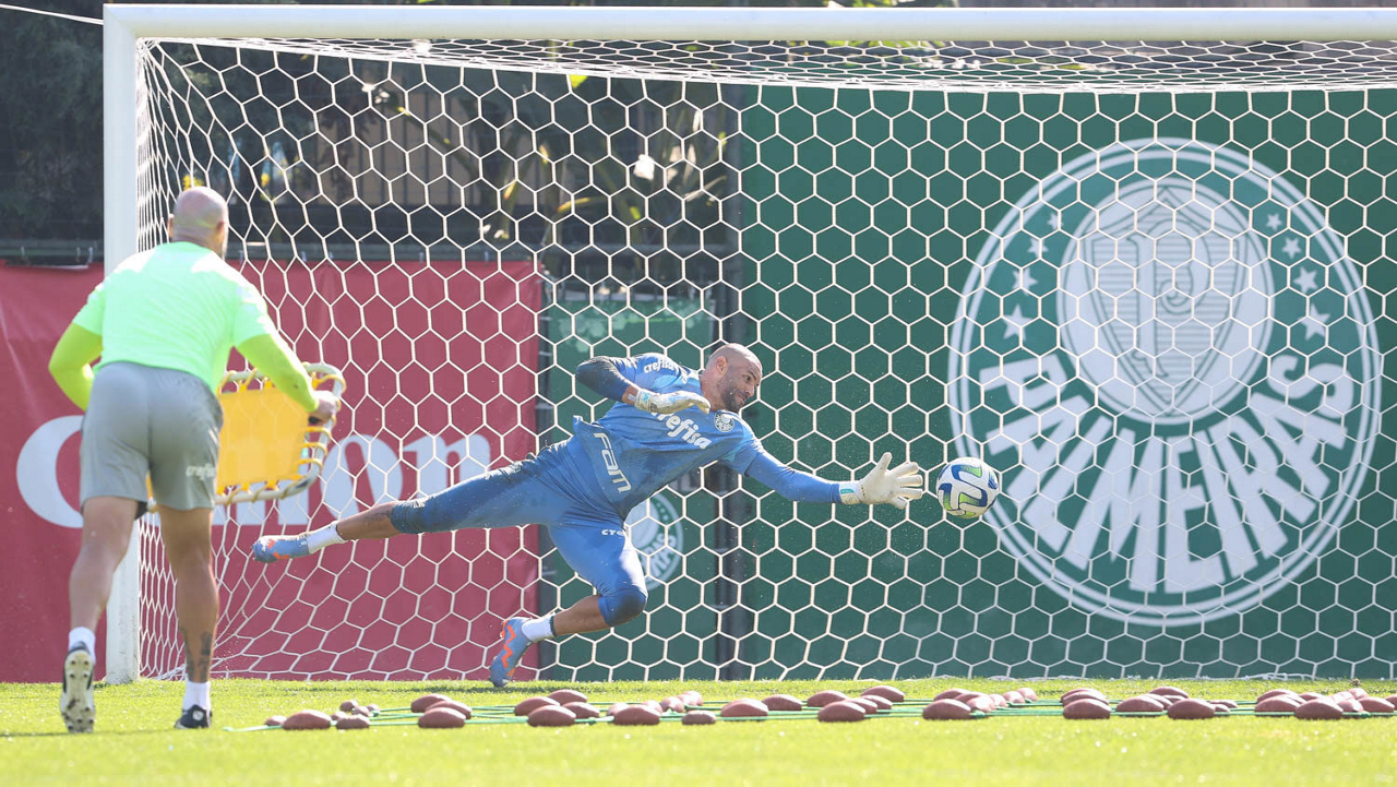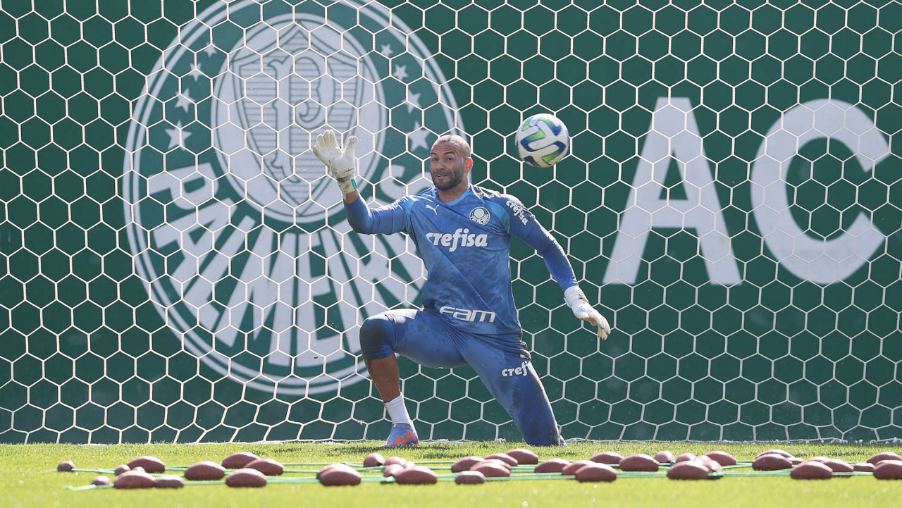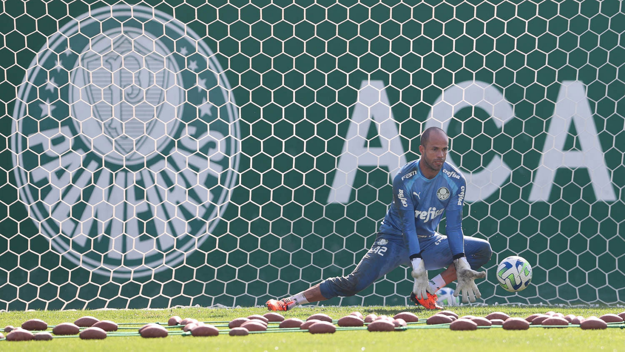 O goleiro Weverton, da SE Palmeiras, durante treinamento, na Academia de Futebol. (Foto: Cesar Greco/Palmeiras/by Canon)