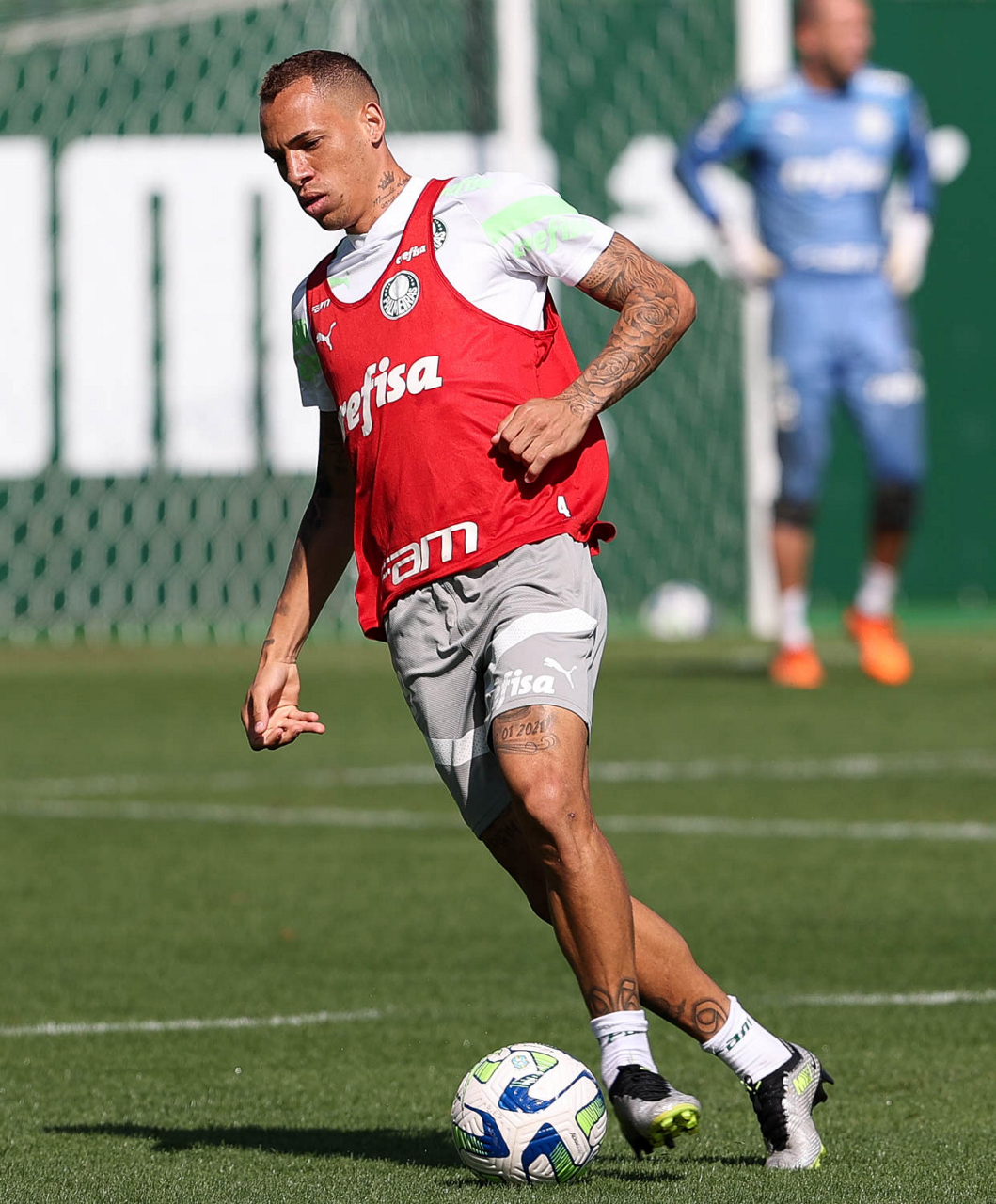 O jogador Breno Lopes, da SE Palmeiras, durante treinamento, na Academia de Futebol. (Foto: Cesar Greco/Palmeiras/by Canon)
