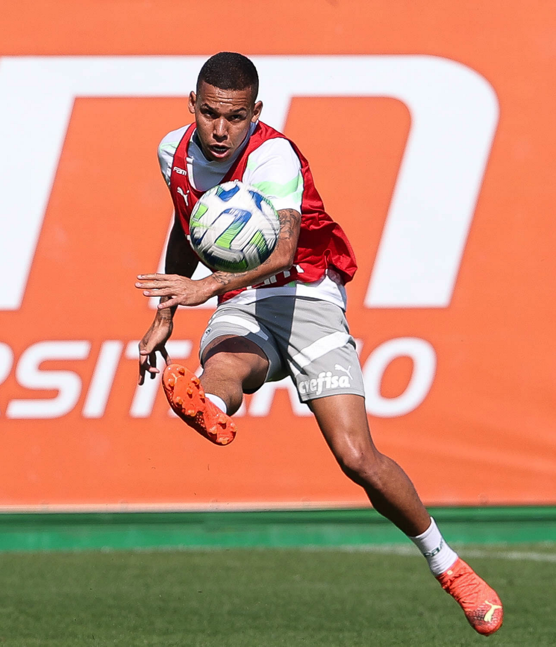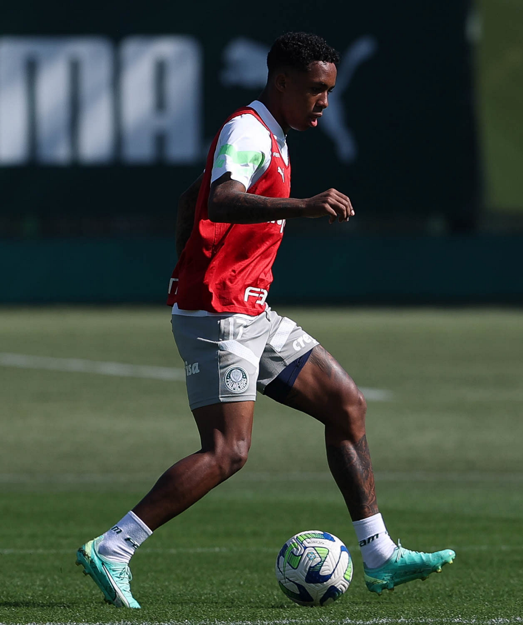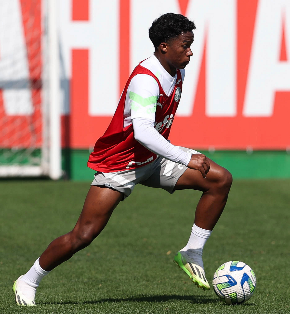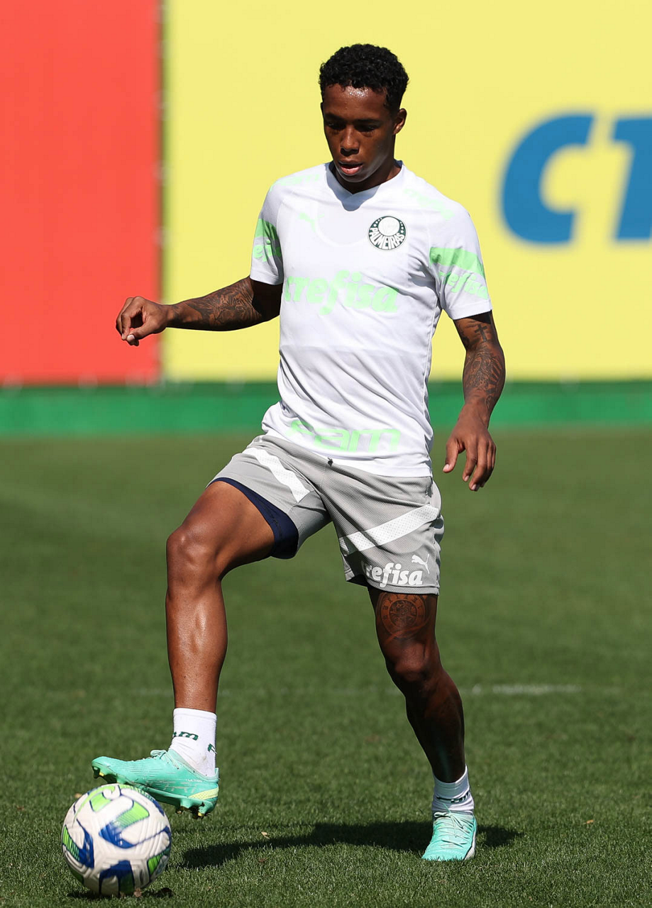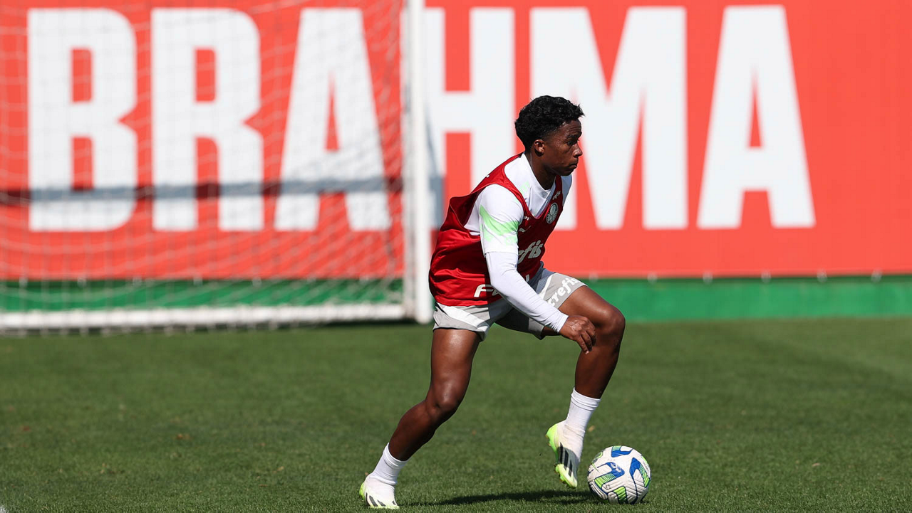 O jogador Endrick, da SE Palmeiras, durante treinamento, na Academia de Futebol. (Foto: Cesar Greco/Palmeiras/by Canon)