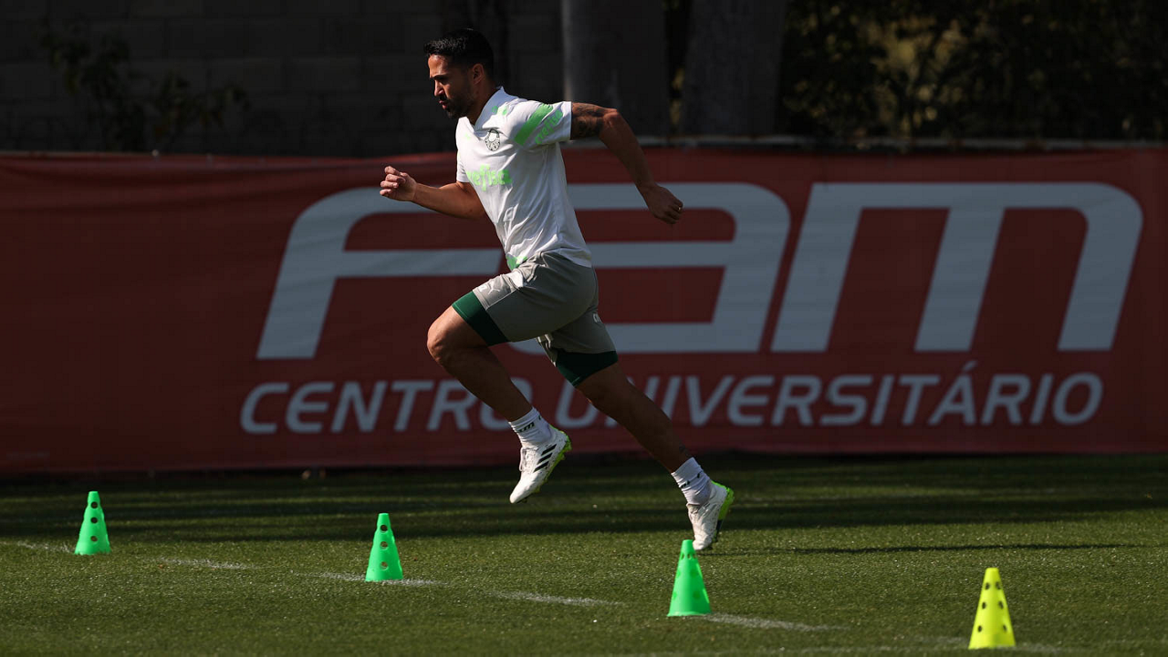O jogador Naves, da SE Palmeiras, durante treinamento, na Academia de Futebol. (Foto: Cesar Greco/Palmeiras/by Canon)