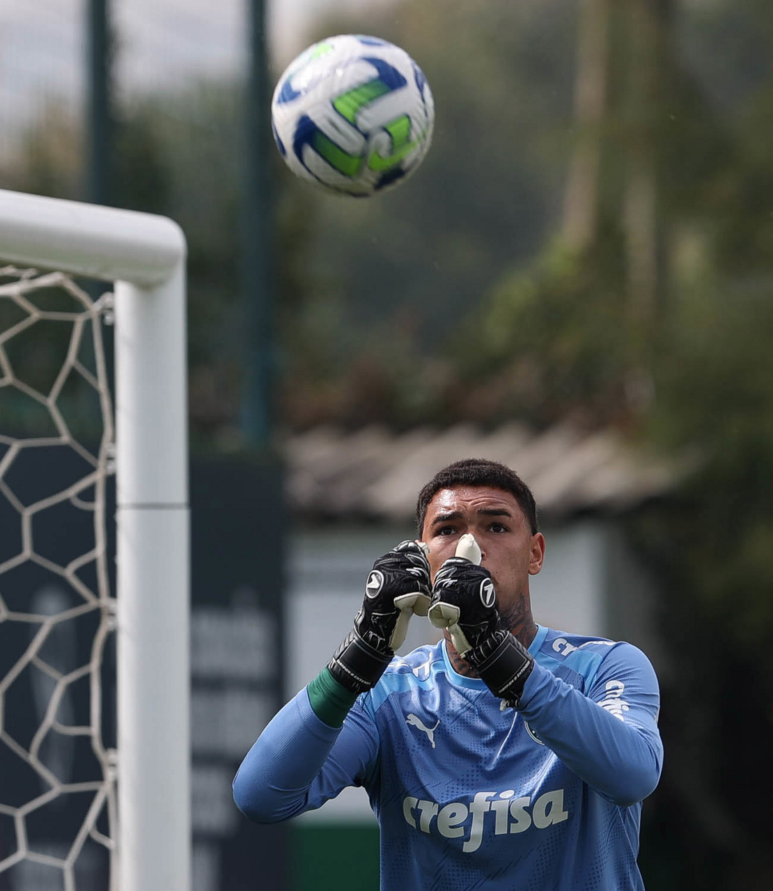 O goleiro Mateus, da SE Palmeiras, durante treinamento, na Academia de Futebol. (Foto: Cesar Greco/Palmeiras/by Canon)
