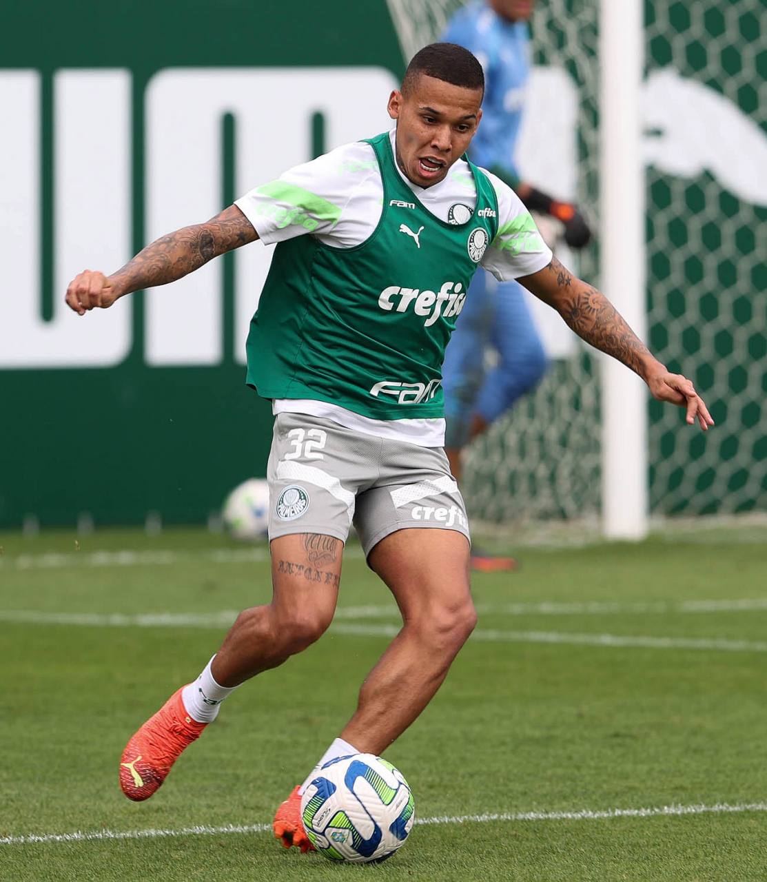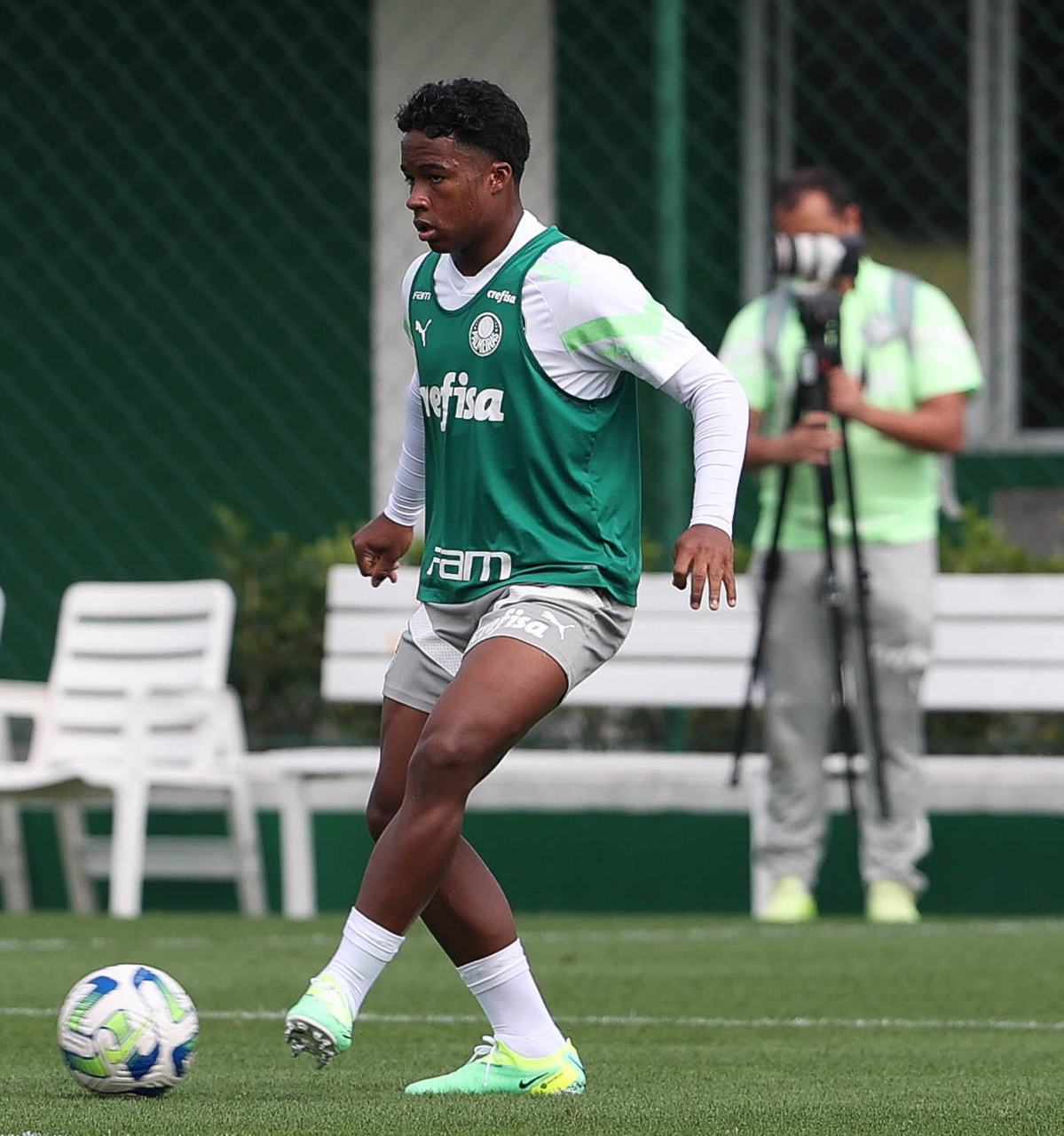 O jogador Endrick, da SE Palmeiras, durante treinamento, na Academia de Futebol. (Foto: Cesar Greco/Palmeiras/by Canon)