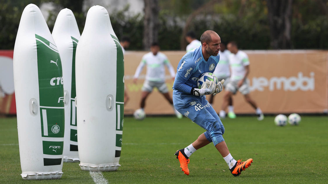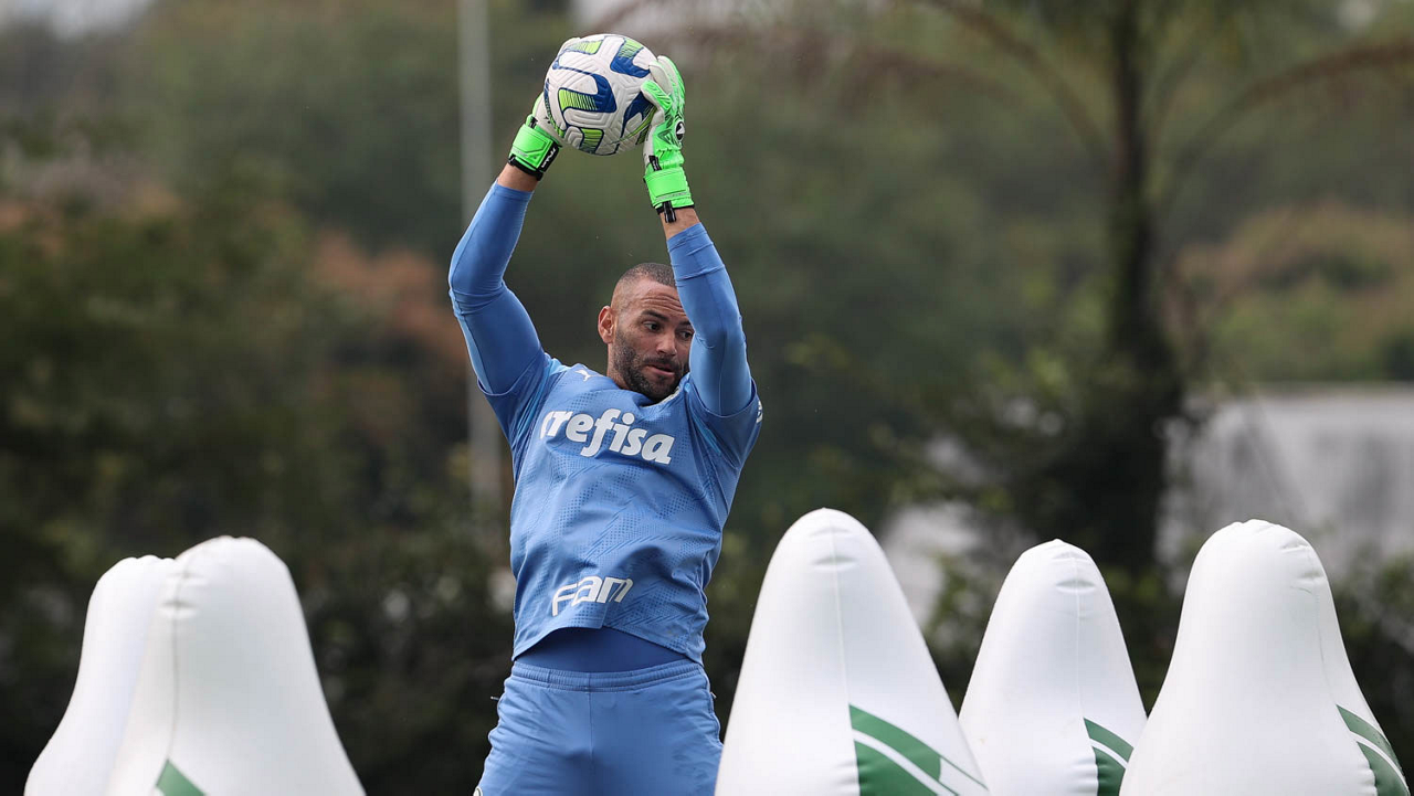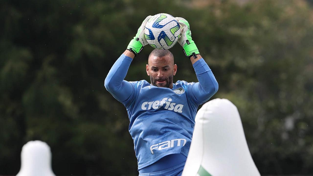 O goleiro Weverton, da SE Palmeiras, durante treinamento, na Academia de Futebol. (Foto: Cesar Greco/Palmeiras/by Canon)