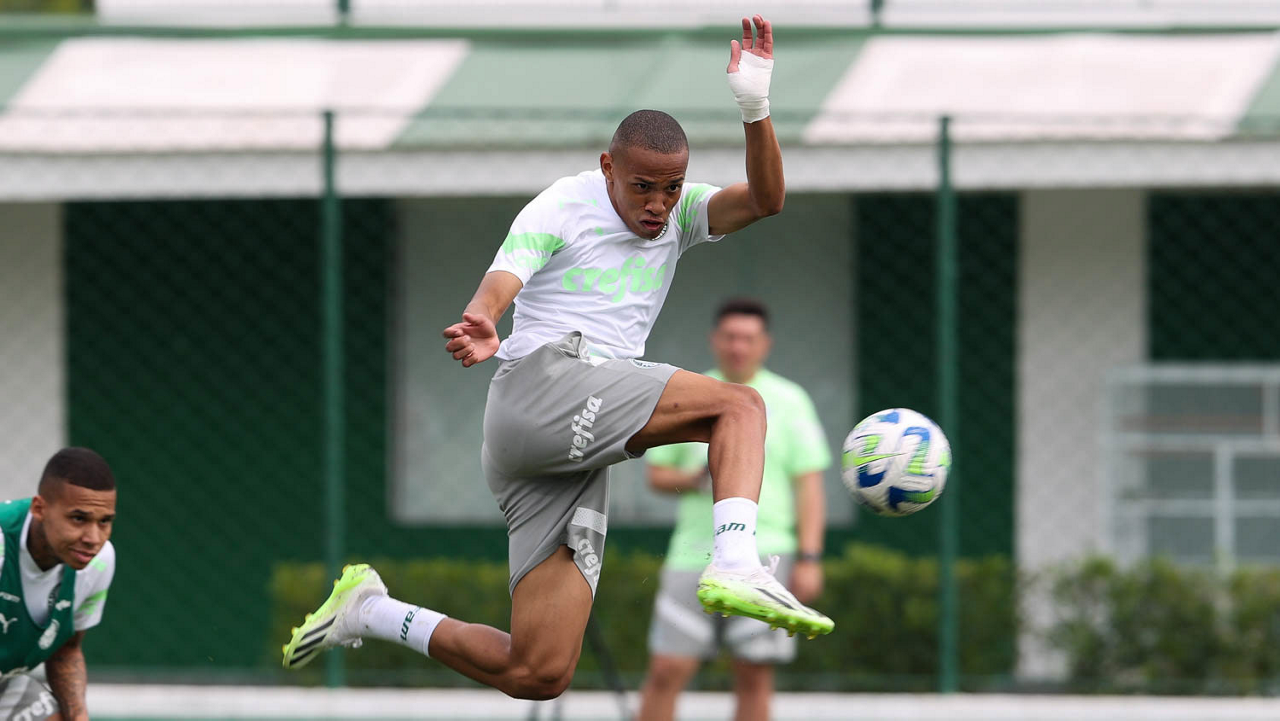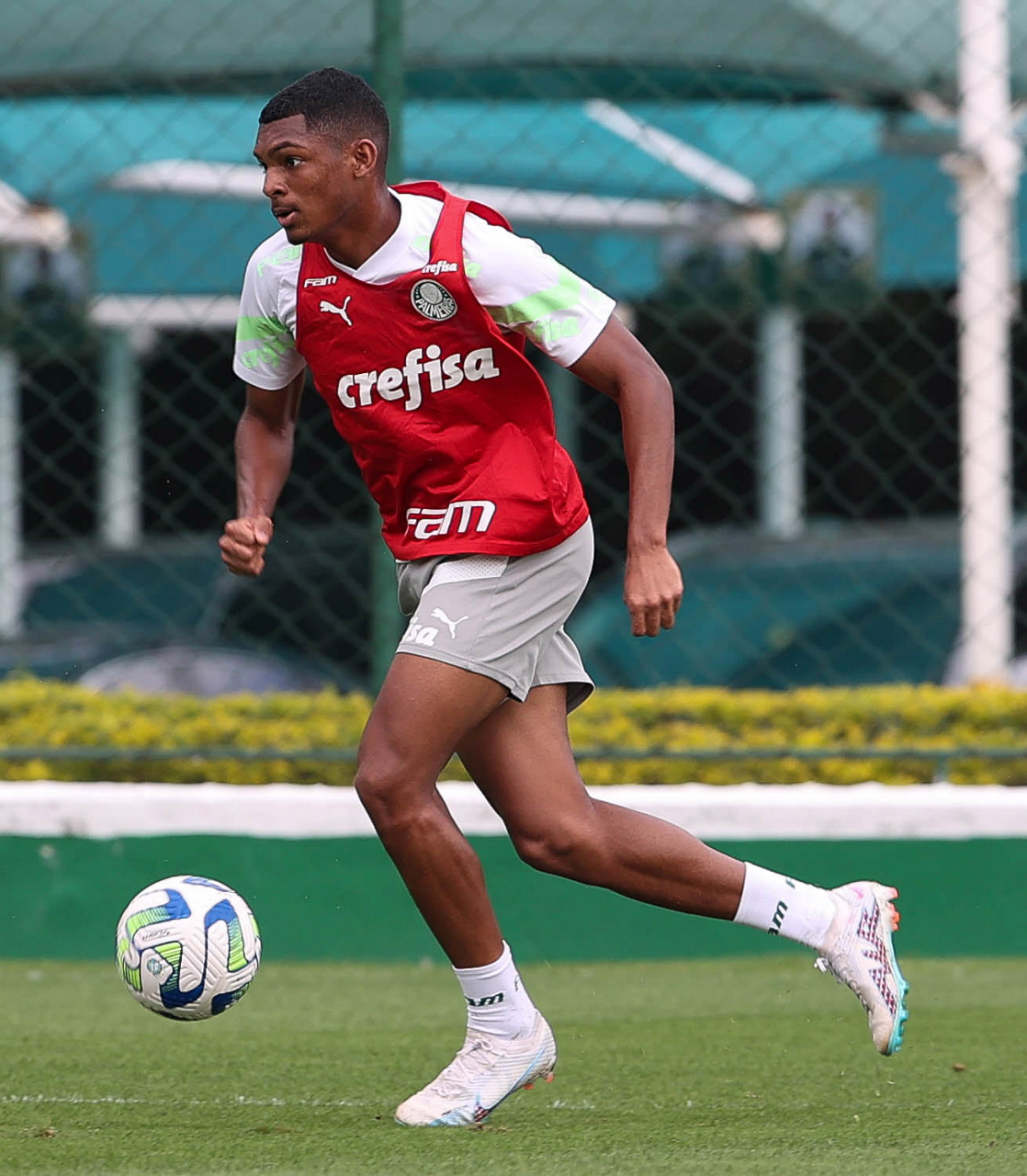O jogador Gabriel Menino, da SE Palmeiras, durante treinamento, na Academia de Futebol. (Foto: Cesar Greco/Palmeiras/by Canon)