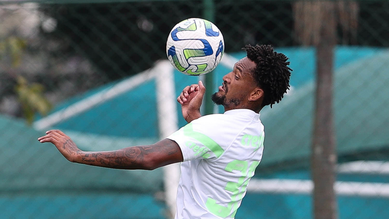 O jogador Fabinho, da SE Palmeiras, durante treinamento, na Academia de Futebol. (Foto: Cesar Greco/Palmeiras/by Canon)
