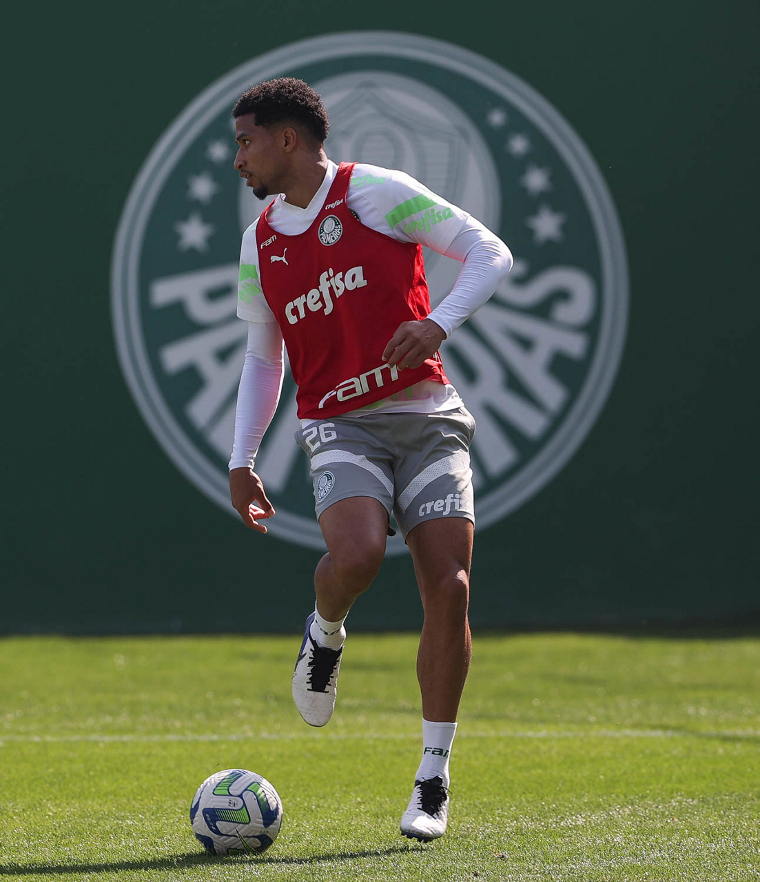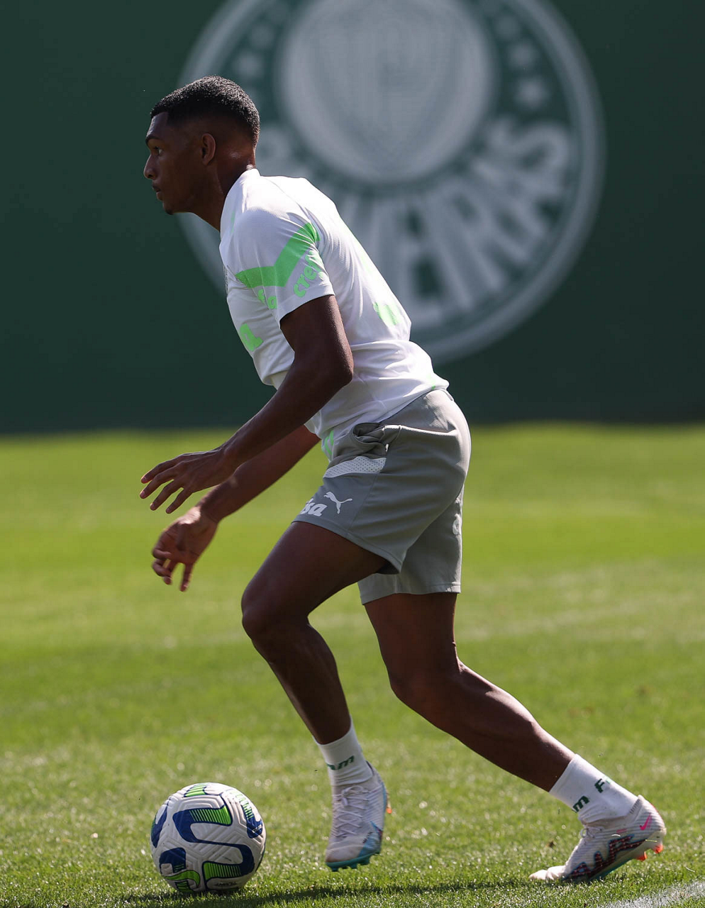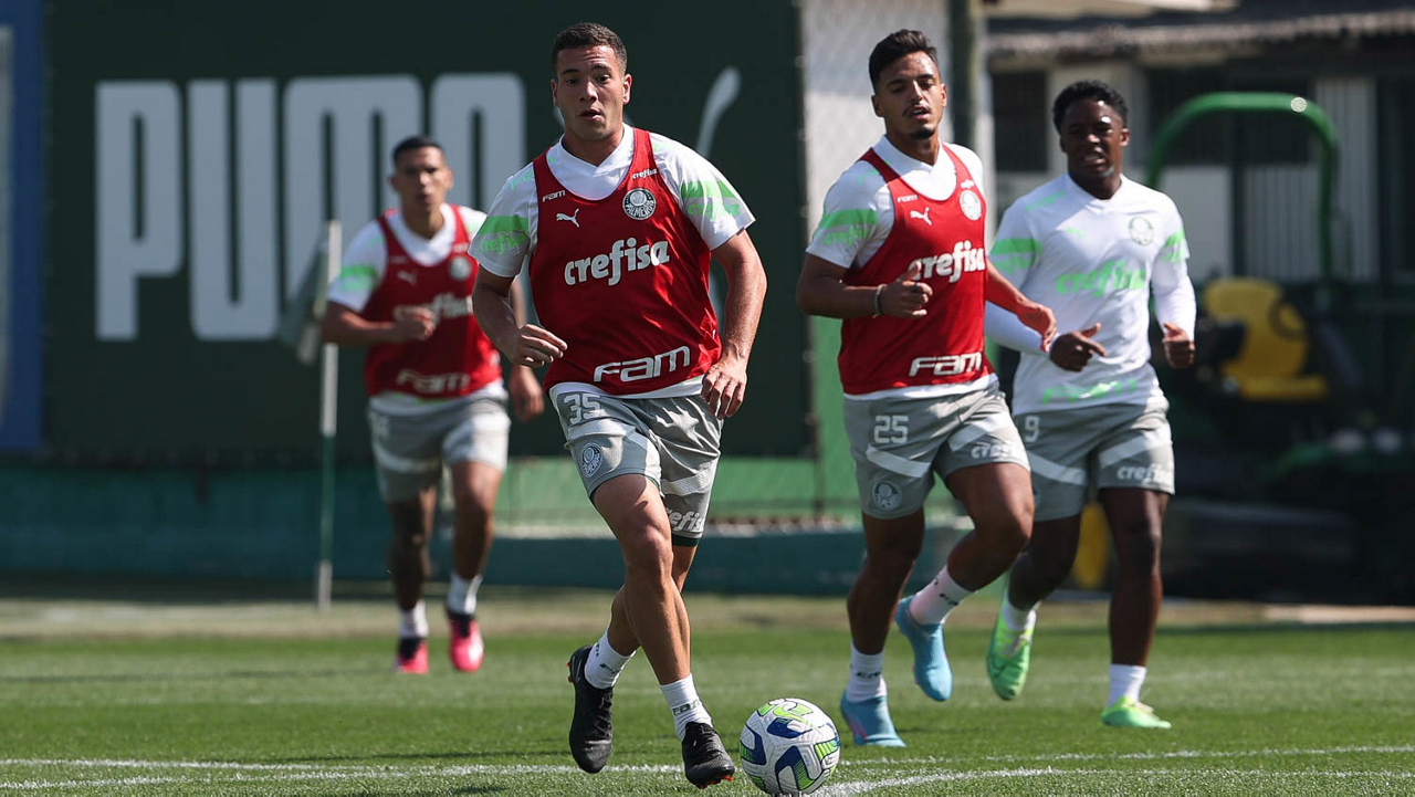 O jogador Gabriel Menino, da SE Palmeiras, durante treinamento, na Academia de Futebol. (Foto: Cesar Greco/Palmeiras/by Canon)