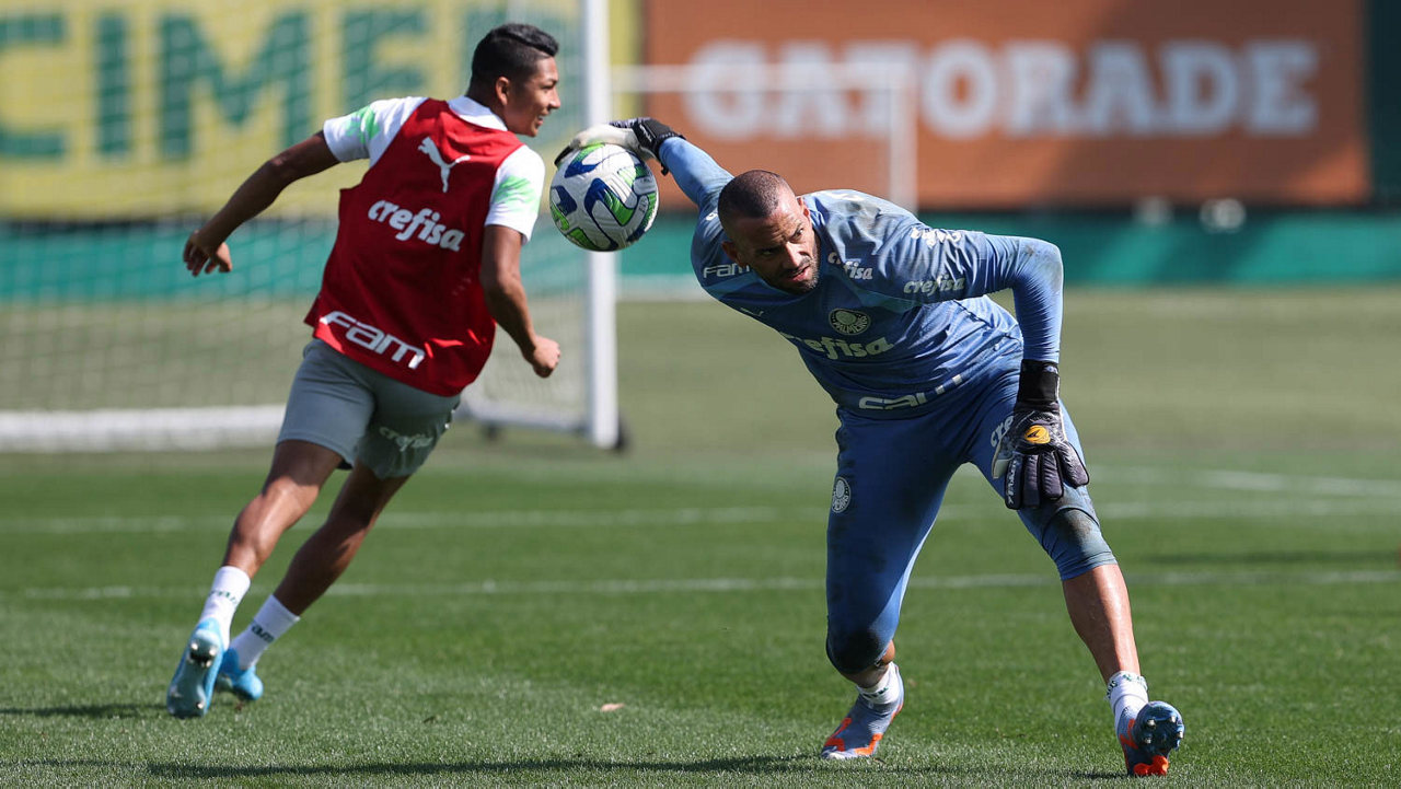 O goleiro Weverton, da SE Palmeiras, durante treinamento, na Academia de Futebol. (Foto: Cesar Greco/Palmeiras/by Canon)