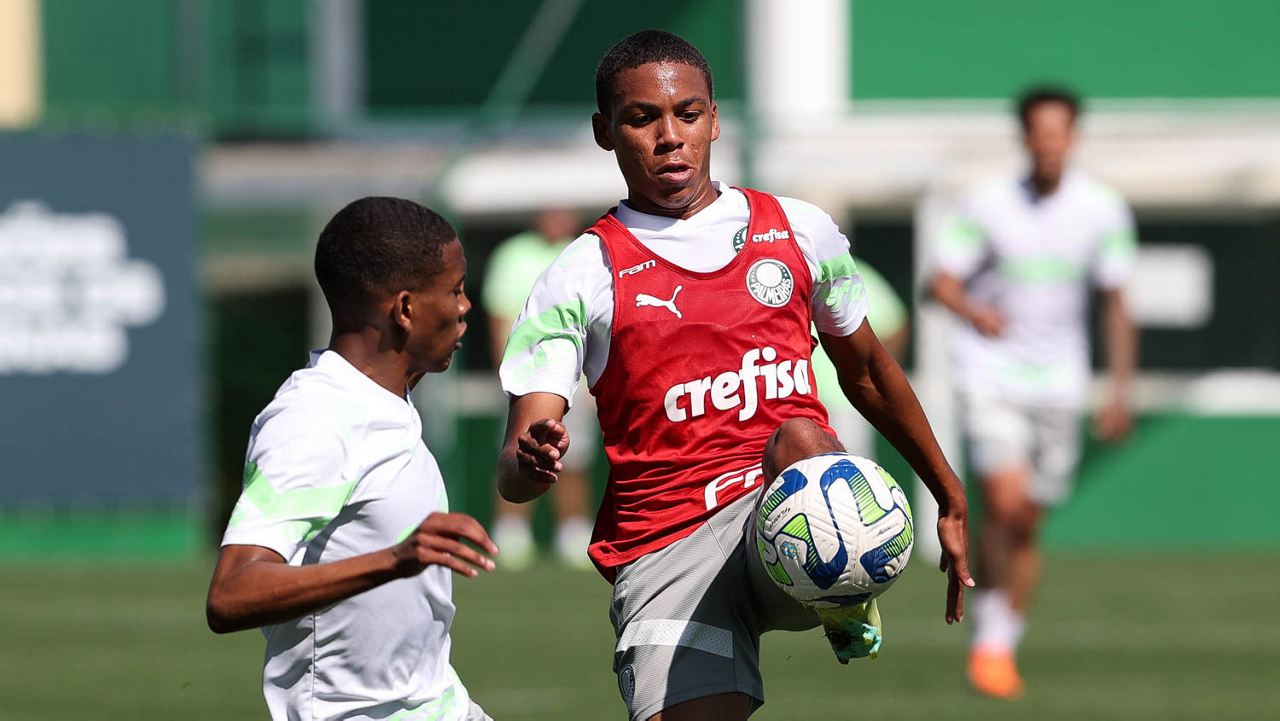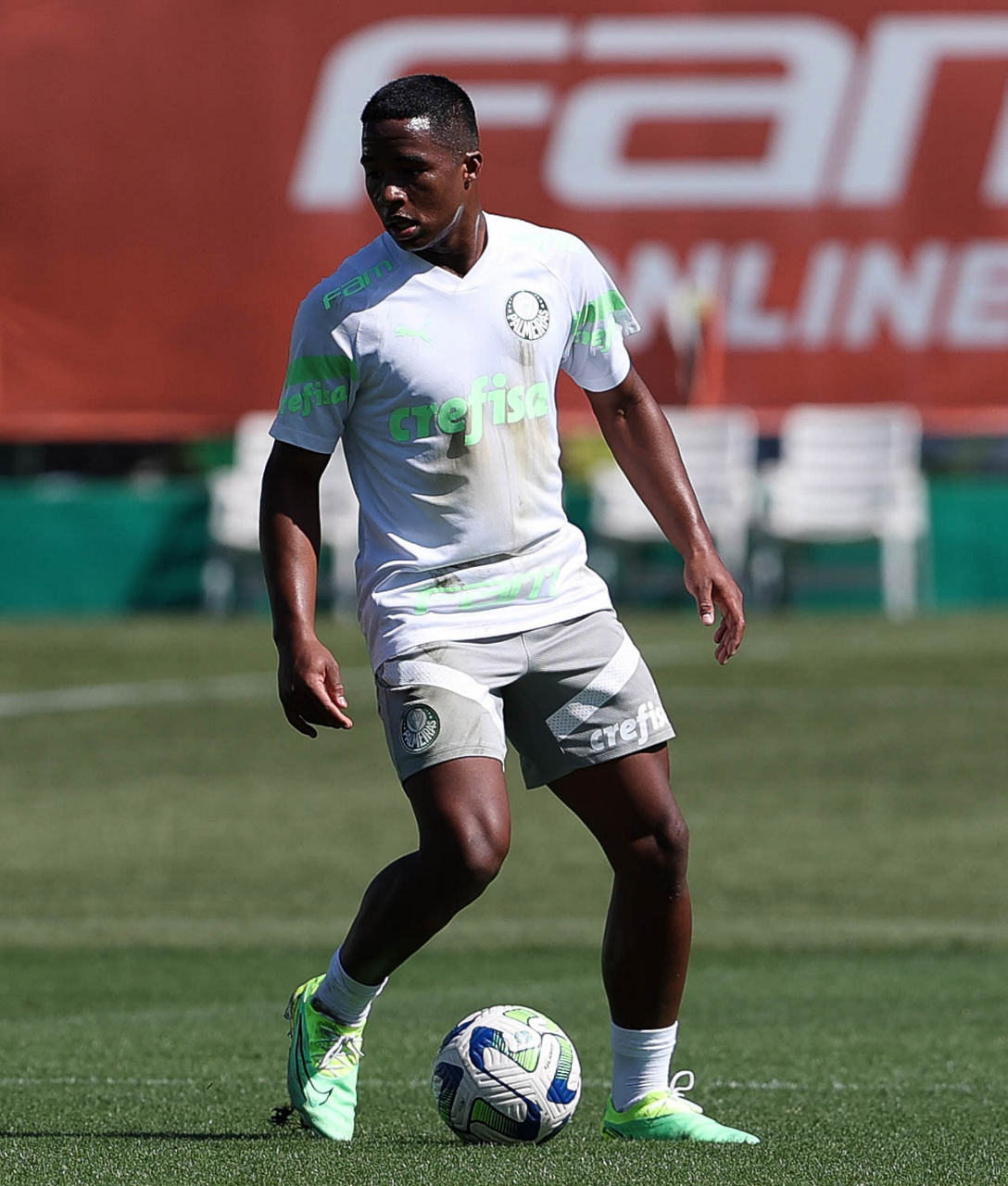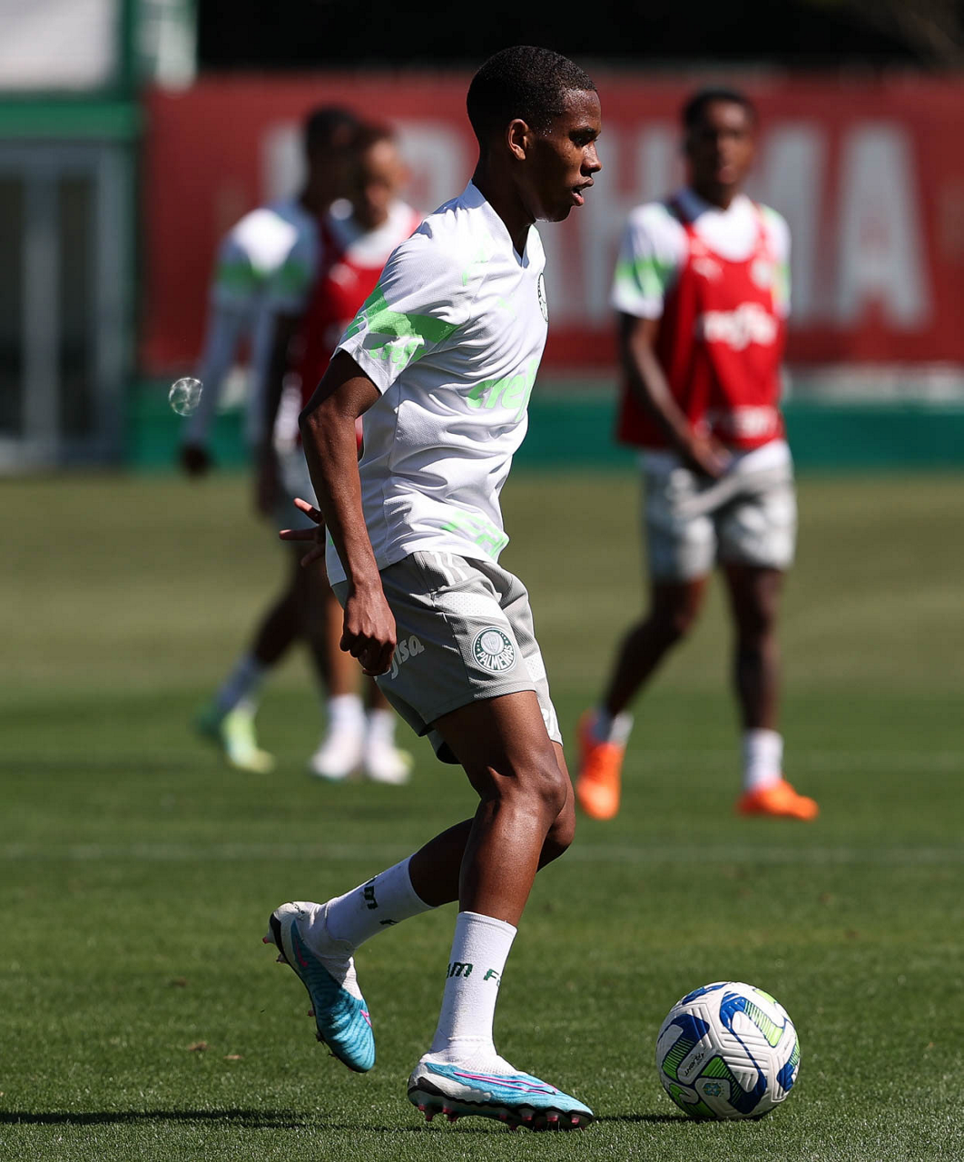 O jogador Endrick, da SE Palmeiras, durante treinamento, na Academia de Futebol. (Foto: Cesar Greco/Palmeiras/by Canon)