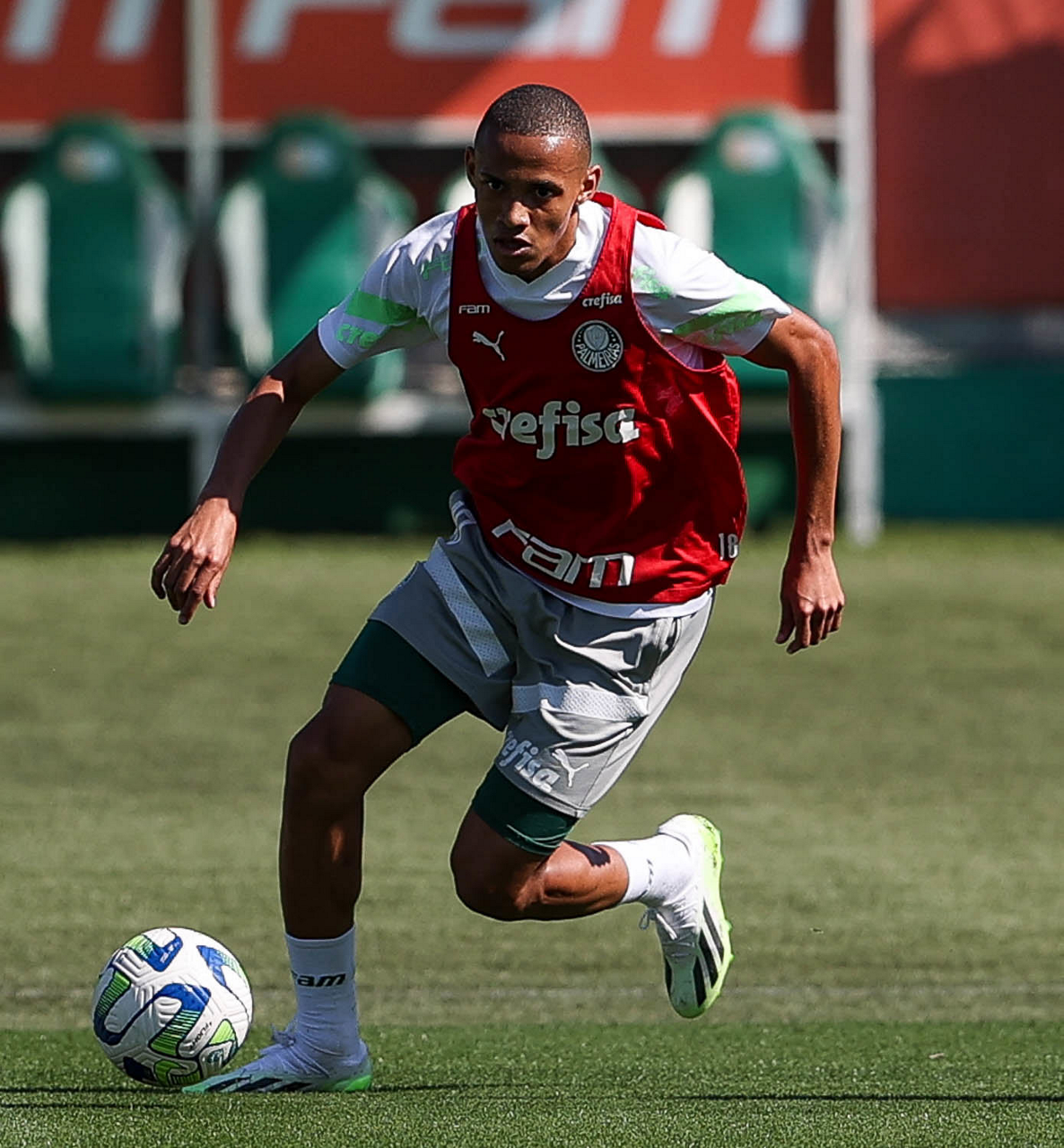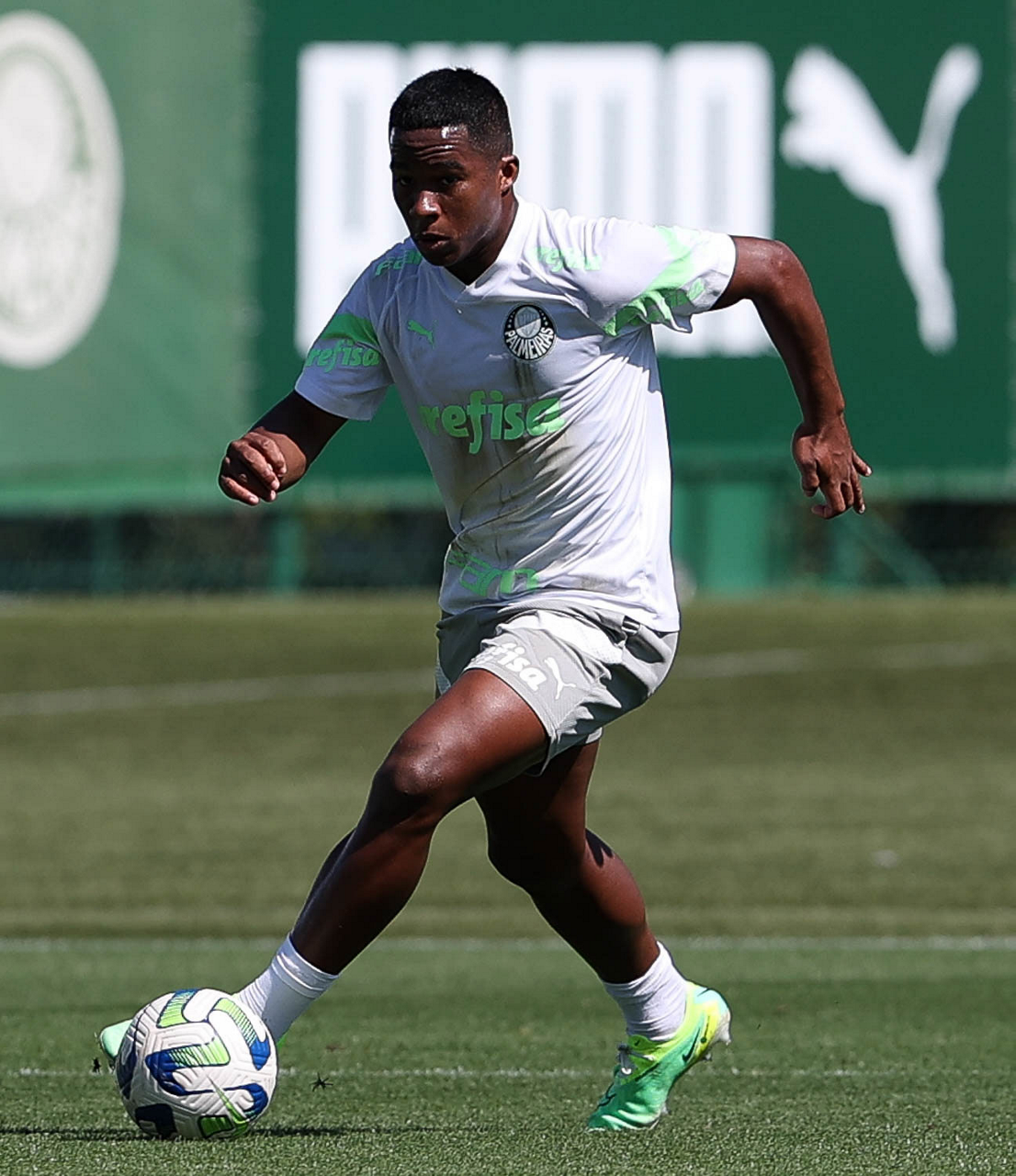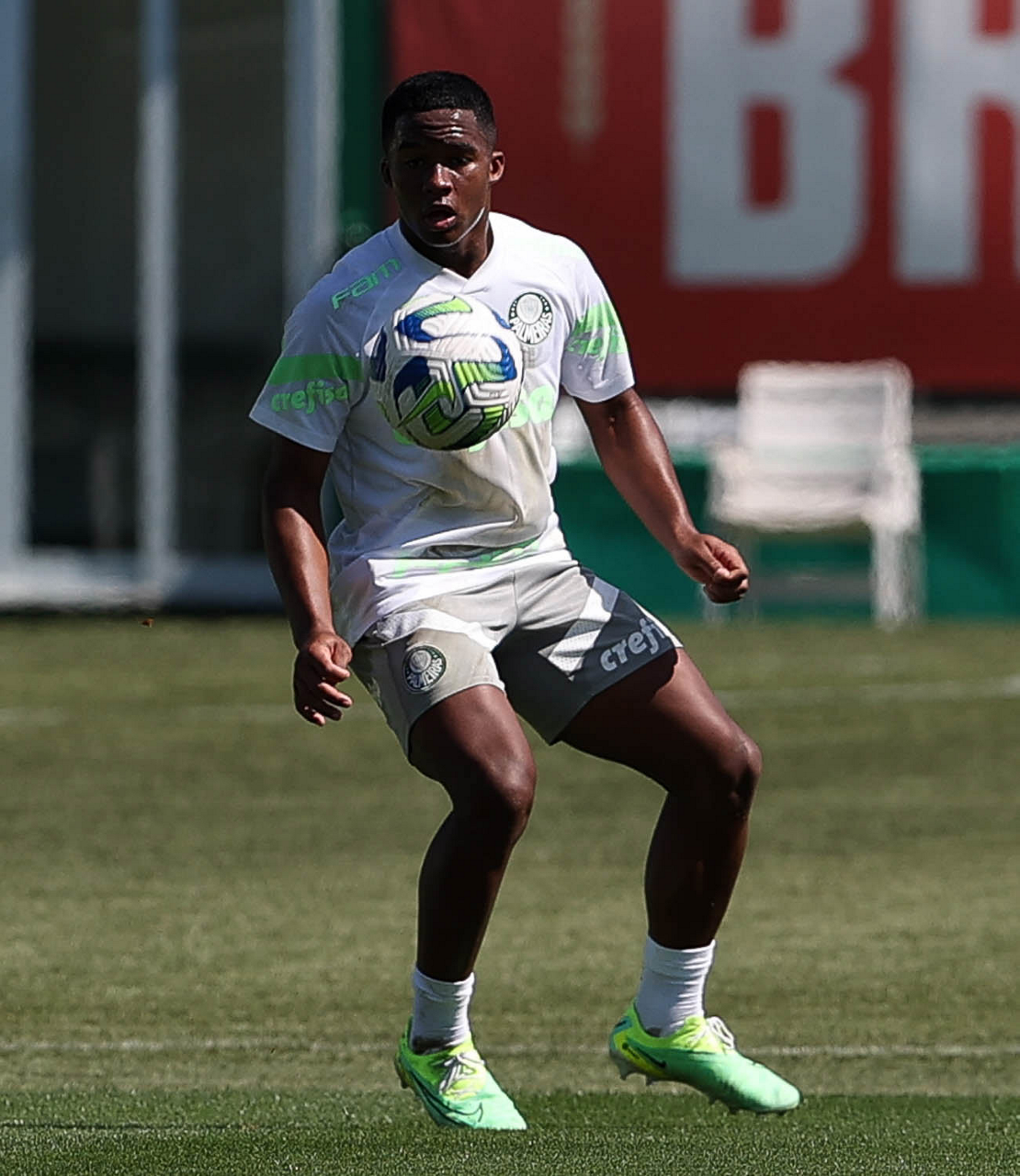 O jogador Endrick, da SE Palmeiras, durante treinamento, na Academia de Futebol. (Foto: Cesar Greco/Palmeiras/by Canon)